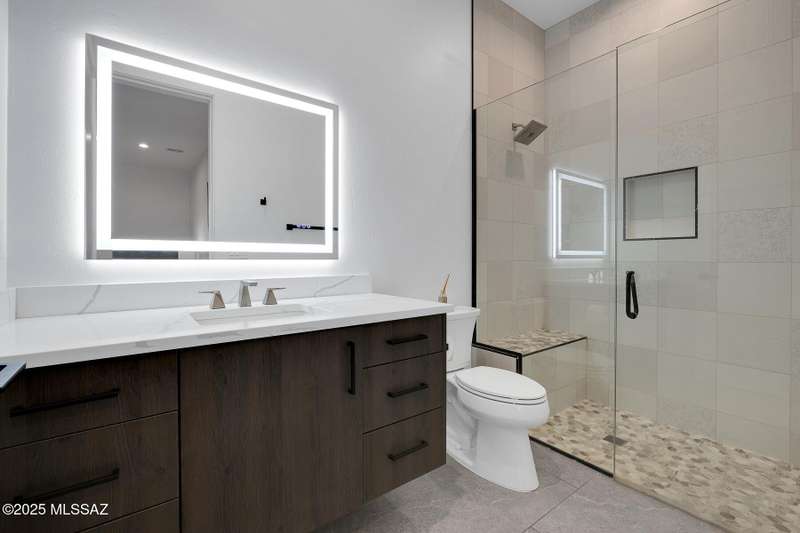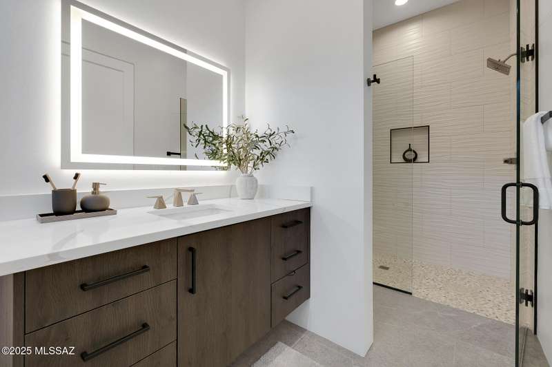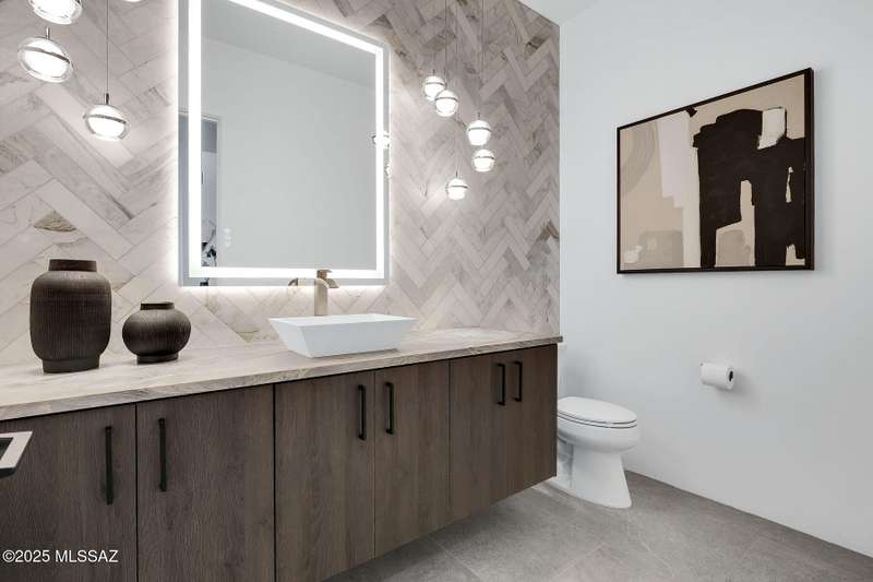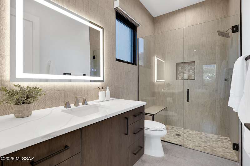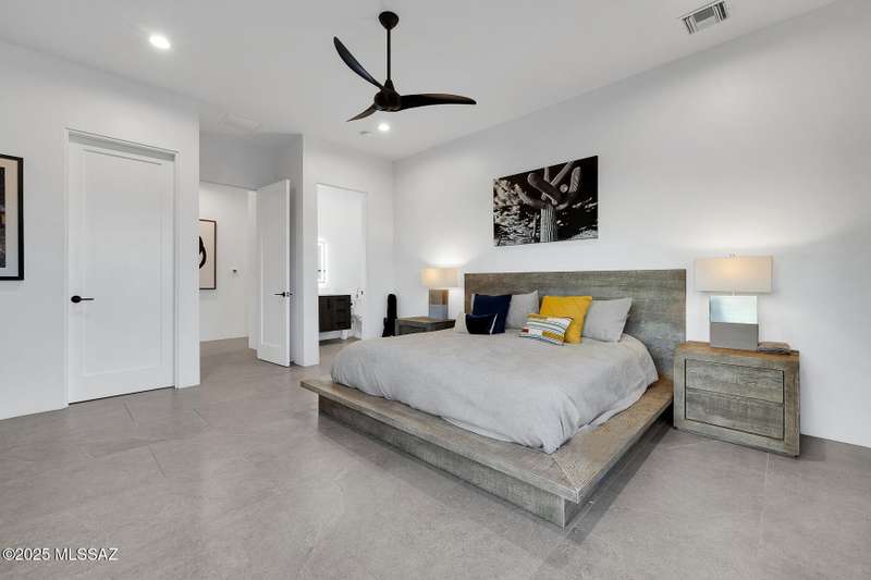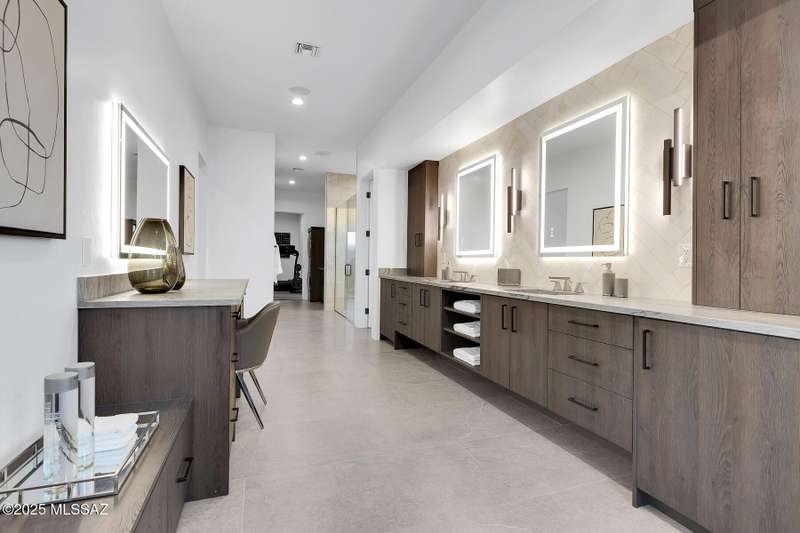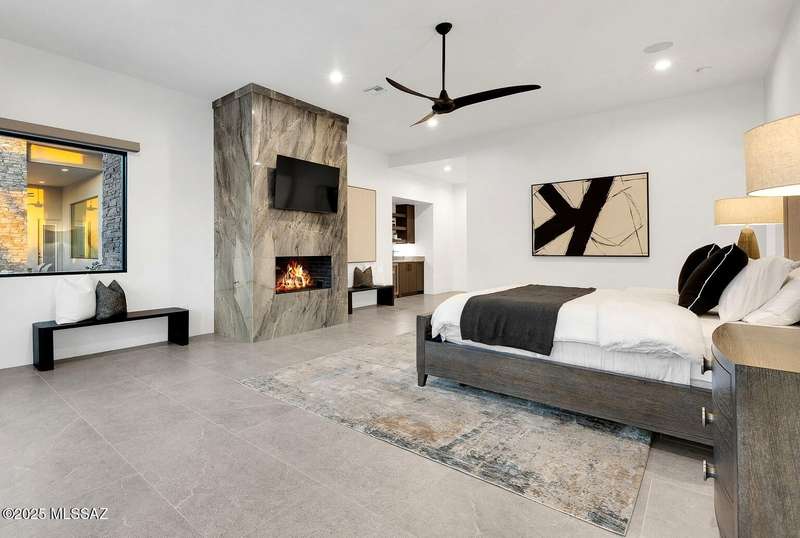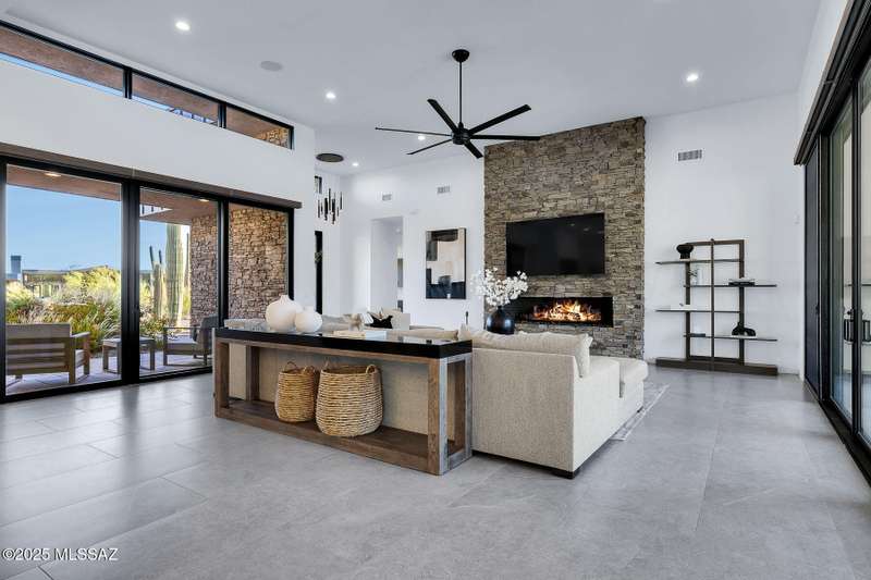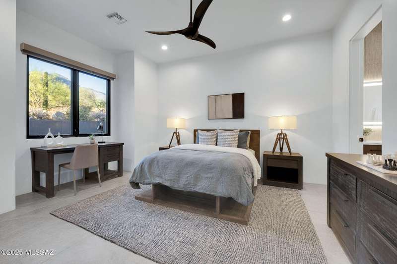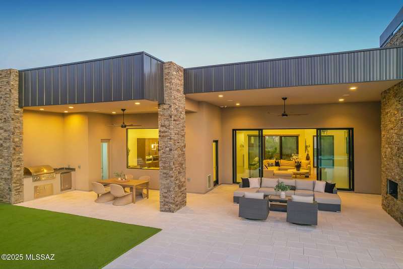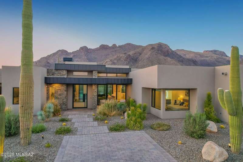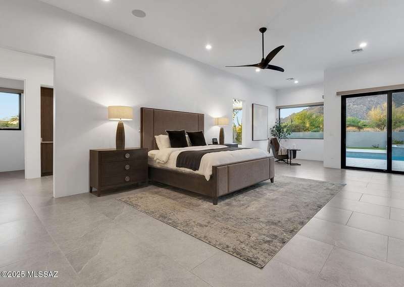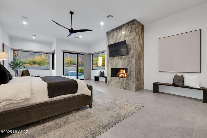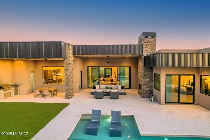 Welcome to the epitome of luxury living in the prestigious, double-gated Sunset Gardens enclave of Pima Canyon Estates. Designed by the renowned Simmons Design Group and completed in 2023, this striking modern residence offers 5189 square feet of masterfully crafted space with breathtaking north-facing views into majestic Pima Canyon. Step inside to find an open-concept layout with high-end finishes, soaring ceilings and brilliant window design providing elegant natural lighting. 4 Spacious, En-Suite Bedrooms plus a built-in office and fully equipped home gym, perfect for today's modern lifestyle. Outdoors, enjoy the generously sized Pebble Sheen pool and spa, massive north-facing rear patio and glorious desert sunsets. Auto enthusiasts will appreciate the over-sized 4-Car Garage.