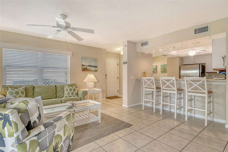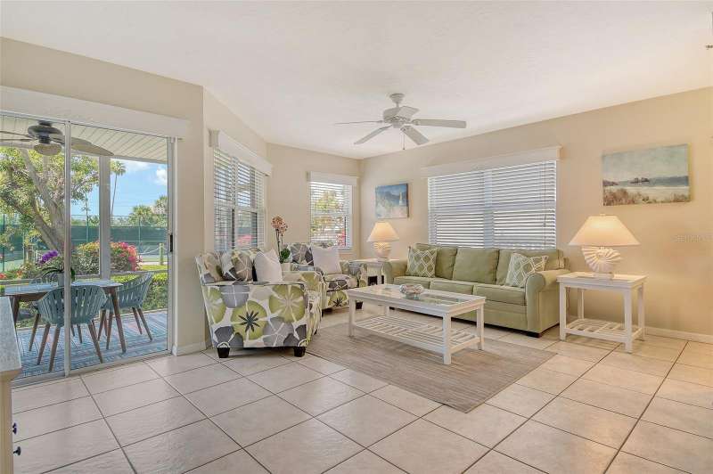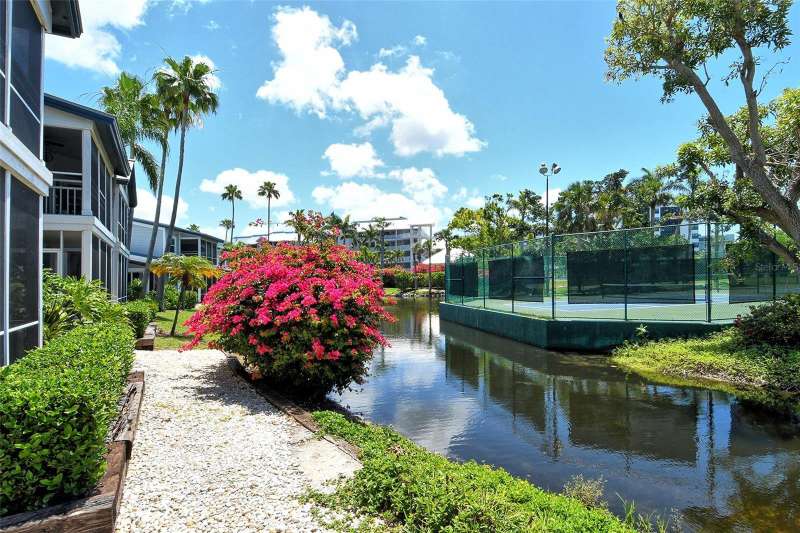 Under contract-accepting backup offers. Paradise awaits at Gulf & Bay Club Bayside on Siesta Key. FIRST-FLOOR, TURNKEY FURNISHED, 2-bedroom, 2-bathroom residence includes a deep one-car GARAGE. Flexibility of weekly rentals, perfect for personal enjoyment or as a lucrative income-producing property. Located in a popular gated community just steps from DEEDED BEACH ACCESS to world-famous Siesta Key and Crescent Beach. This home invites you to live like you’re on vacation. Tile flooring throughout allows for easy cleanup. Well-equipped kitchen with stainless steel appliances, pantry closet, breakfast bar seating and a dedicated dining area. The open-concept living room flows seamlessly to a covered and screened lanai overlooking a tranquil pond and tennis courts. Both bedrooms are generously sized, and the convenience of an in-unit washer and dryer (only 1 year old) adds to the home’s appeal. With no hurricane damage to the unit, peace of mind comes included. The community offers a true resort lifestyle with two heated pools, clubhouse with a full kitchen and fitness room, tennis and pickleball courts, BBQ grills, a newly renovated fishing dock, boat loading zones, and scenic walking paths. A dedicated on-site property manager makes rentals effortless. The location is unbeatable – just steps to the beach and a quick ride on the free Siesta Key trolley to explore the vibrant Village or South Siesta’s dining and shopping. Whether you're seeking a full-time residence, vacation home, or investment property, this is your chance to enjoy the best of island living on Siesta Key.