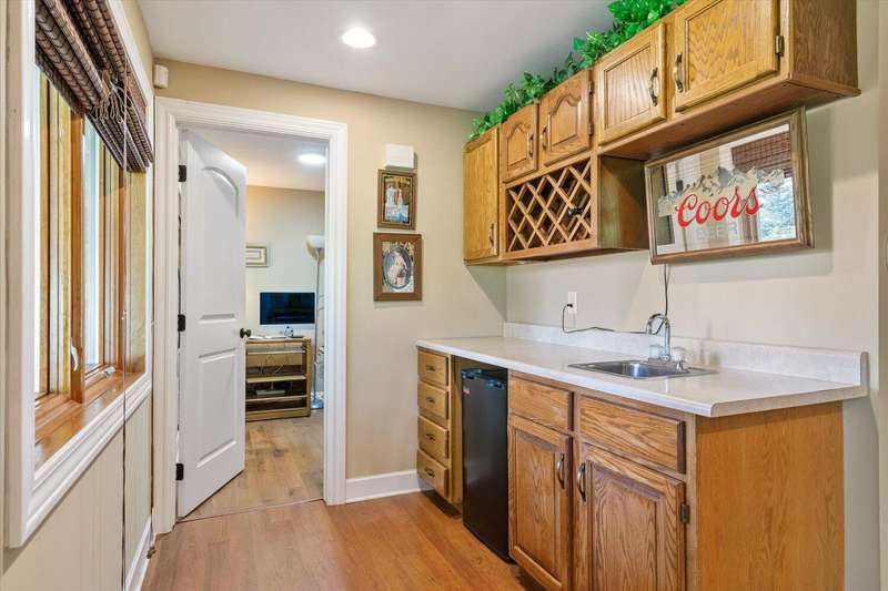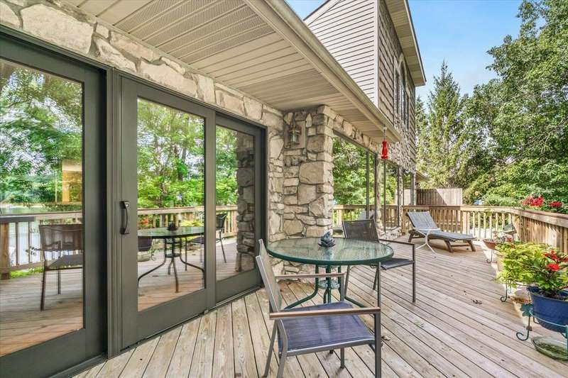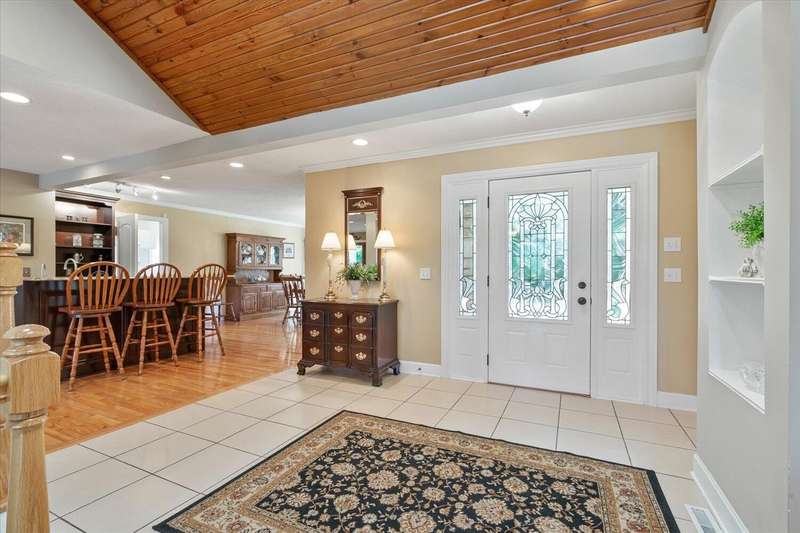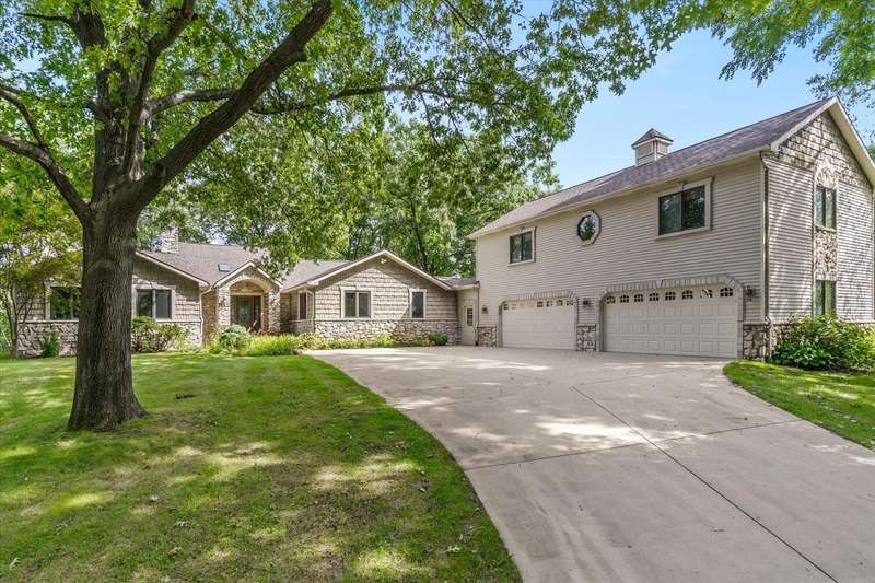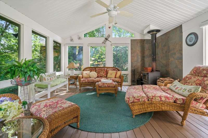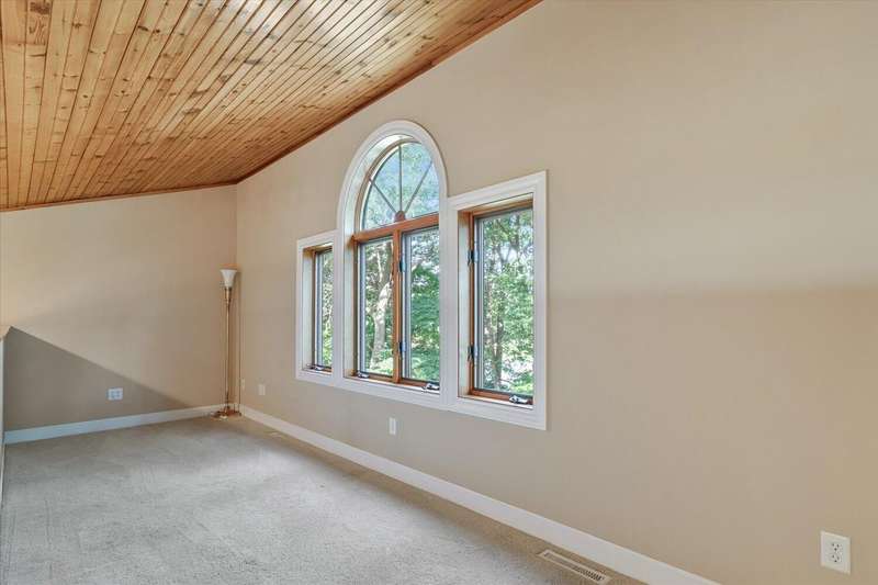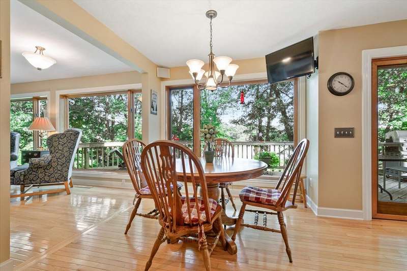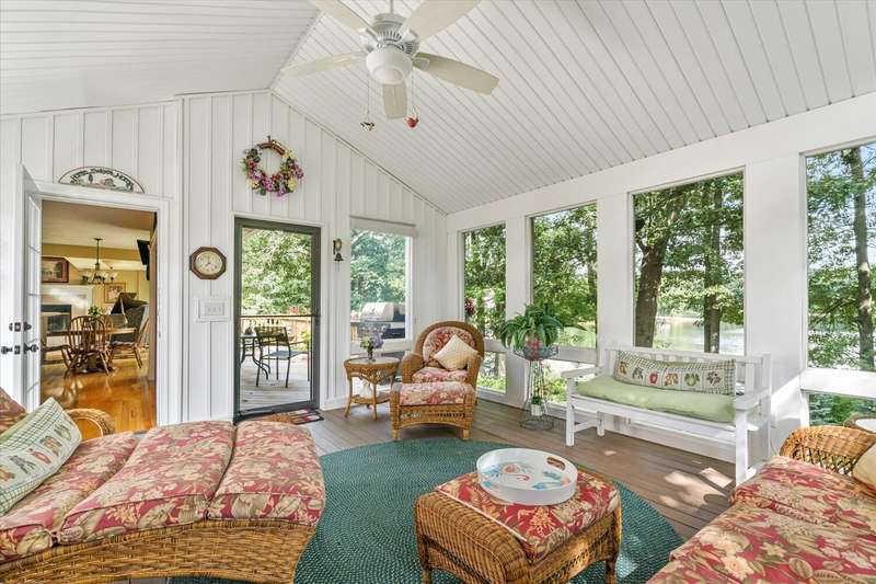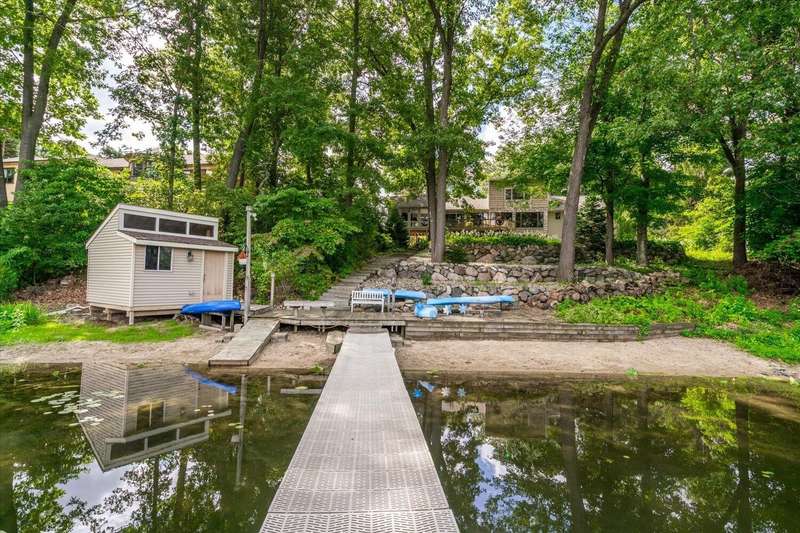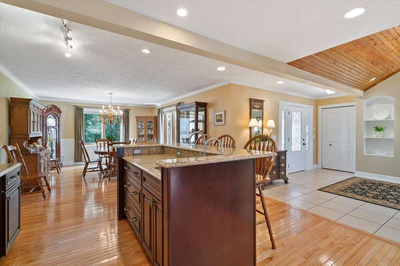 Welcome to your lakeside retreat on beautiful Crooked Lake! This stunning 6-bedroom, 4.5-bath home offers over 5,000 finished square feet of living space, a 4-car attached garage, and sits on just over an acre with 135 feet of private frontage. This residence combines luxury, comfort, and breathtaking water views. Step inside the covered stone entryway to find vaulted ceilings with wood bead board accents and a wall of windows framing panoramic views of the lake. The living room features a cozy fireplace and flows seamlessly into the chef's kitchen-complete with a large island with seating, stainless steel appliances, double oven, range hood, glass-front cabinetry, and abundant storage. A bar area with additional counter seating connects the kitchen to the formal dining room, which opens to a Three- season sunroom with a wood-burning stove and access to the outdoor deck overlooking the lake. The main floor primary suite is a private retreat with its own deck, spa-inspired en suite, and serene lake views. Two additional bedrooms and a full bath, plus a convenient half bath, complete the main level. The walk-out lower level offers incredible entertaining space with a stone fireplace, wet bar, full bath, and two additional bedrooms. Step outside to enjoy the firepit by the lake or store your water toys in the lakeside shed. Finishing the main level, an additional Kitchen. Above the garage includes an exercise room, large living area, bedroom (currently used as an office), and private bath ideal for guests, extended family, or work-from-home needs.--