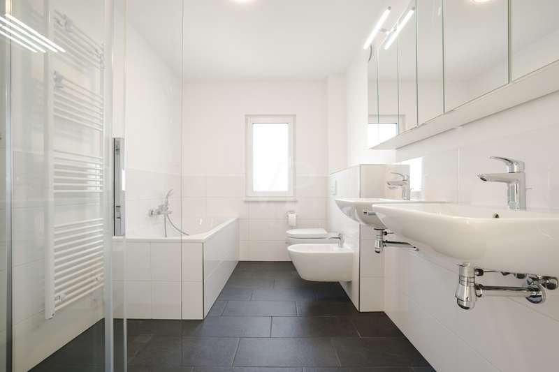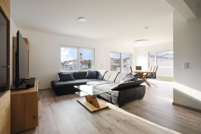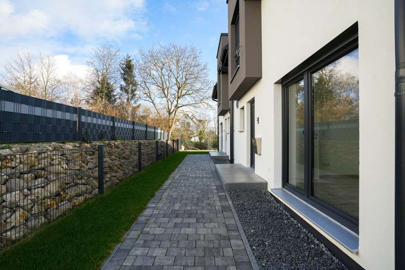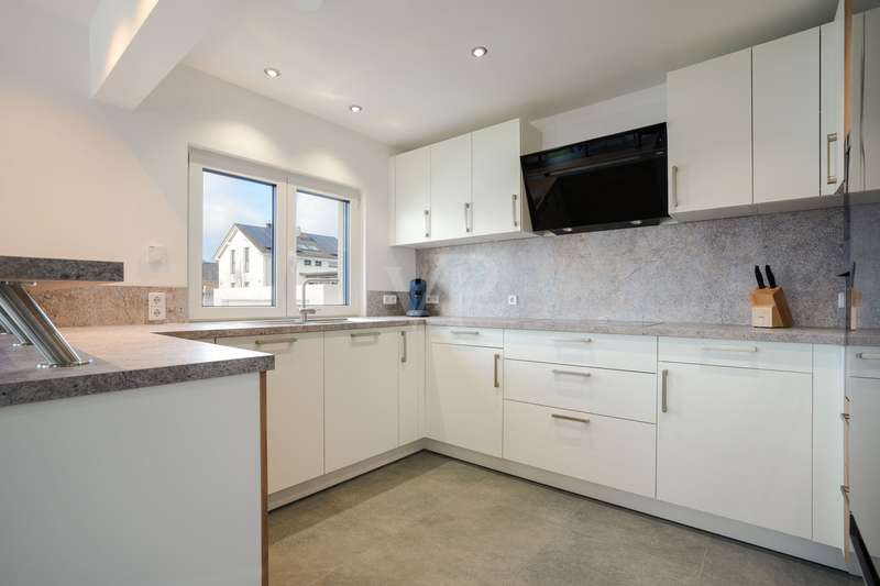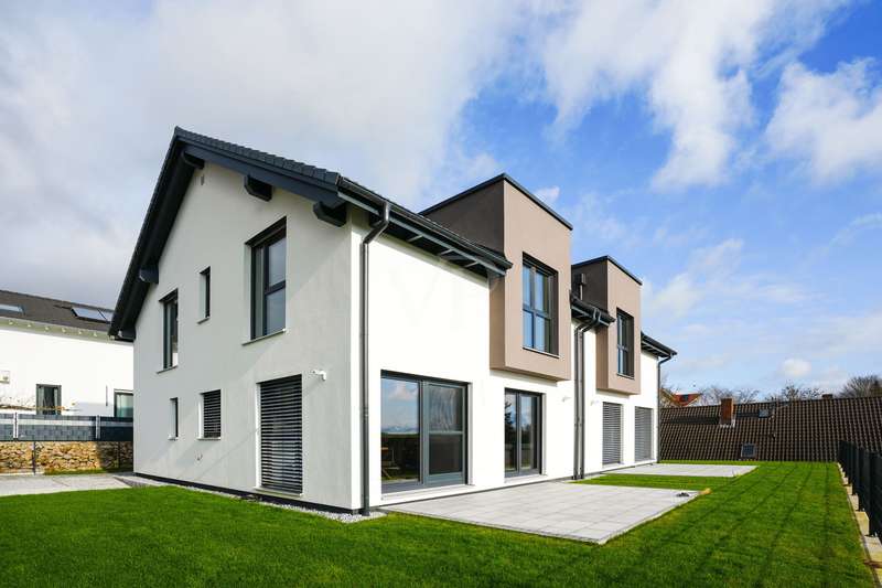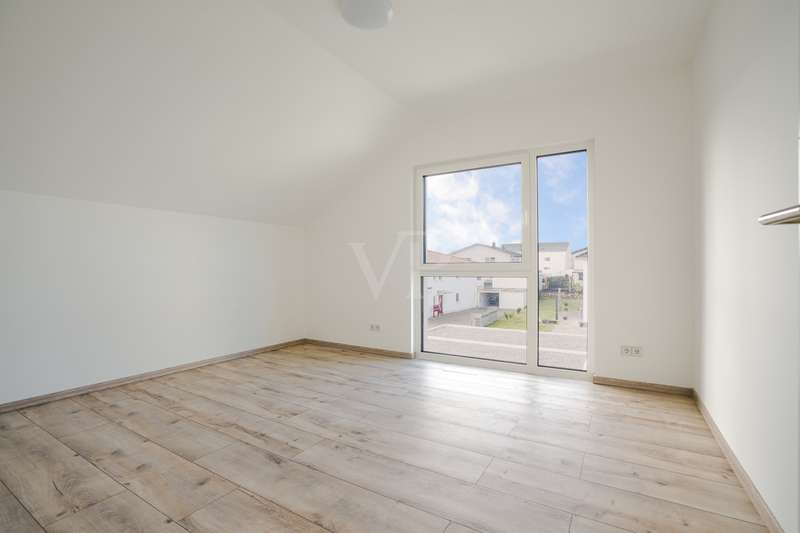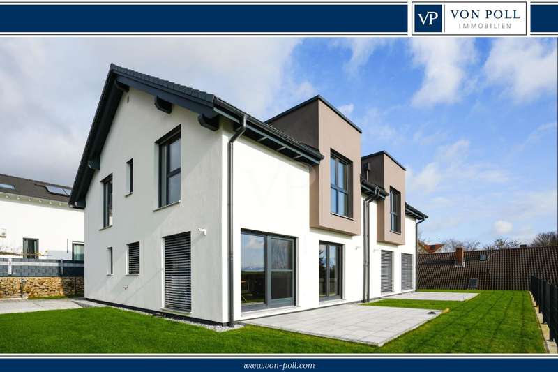 This as-new, modern KfW 40 semi-detached house, built at the end of 2023, offers enough space for the whole family and home office on a generous living area of approx. 151 m². With a total of six rooms, including five well-designed bedrooms and two modern bathrooms, this property is an ideal place to live and feel at home. Situated on a south-facing plot of approx. 321 m², the property is located in a quiet ring road with a pleasant neighborhood that guarantees a high quality of life. The good transport links ensure that all important destinations can be reached quickly and easily, while at the same time maintaining a quiet living atmosphere. The property impresses with its open-plan kitchen, living and dining area, which is flooded with light thanks to floor-to-ceiling sliding patio doors and creates a generous sense of space. The attractive fitted kitchen with counter is equipped with brand-name appliances and invites you to cook and eat together. Electric shutters and external blinds offer additional comfort and privacy. Particularly noteworthy is the spacious south-facing terrace with adjoining garden, where you can watch your children play and enjoy a fantastic view of the surrounding countryside. A double garage with electric door offers enough space for two vehicles and is equipped with a wall box to enable the charging of electric vehicles. This means that energy efficiency and environmentally conscious residents are also well catered for. The outdoor area includes an underground cistern in the garden, which contributes to a sustainable water supply and offers garden lovers additional amenities. The property is not only aesthetically pleasing, but also ecologically well thought out. In summary, this semi-detached house offers an excellent combination of contemporary living style and an appealing location with fantastic views. The practical room layout, modern fittings and comfortable outdoor area make this property an attractive proposition for families and couples who value quality and a pleasant living environment. Arrange a viewing today and see for yourself the many benefits this wonderful home has to offer.