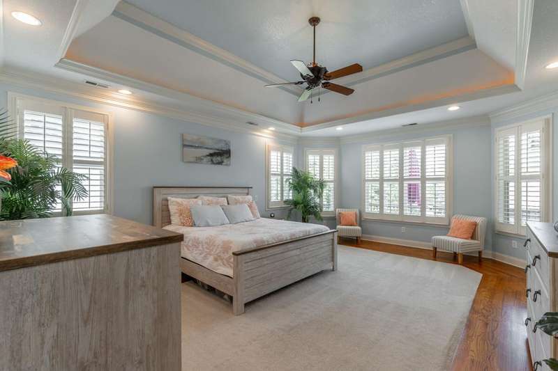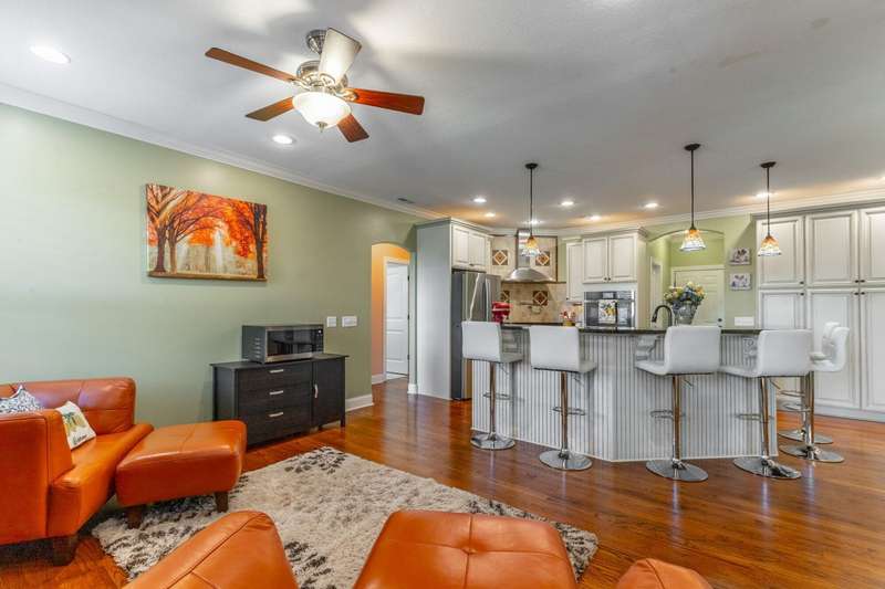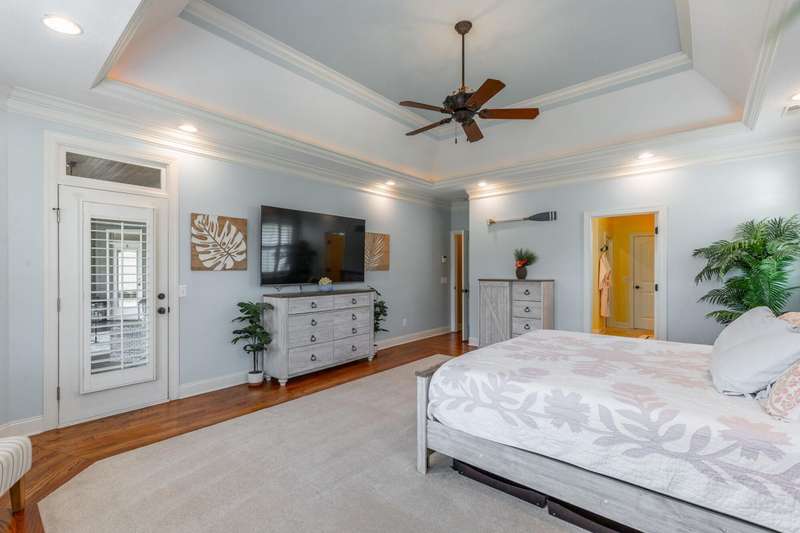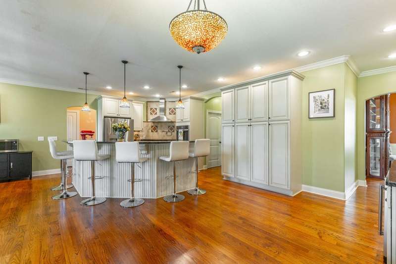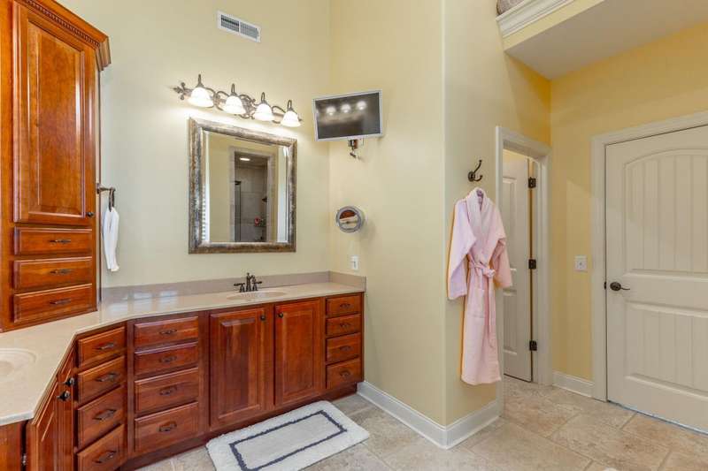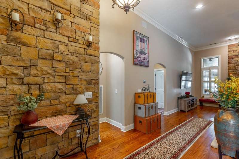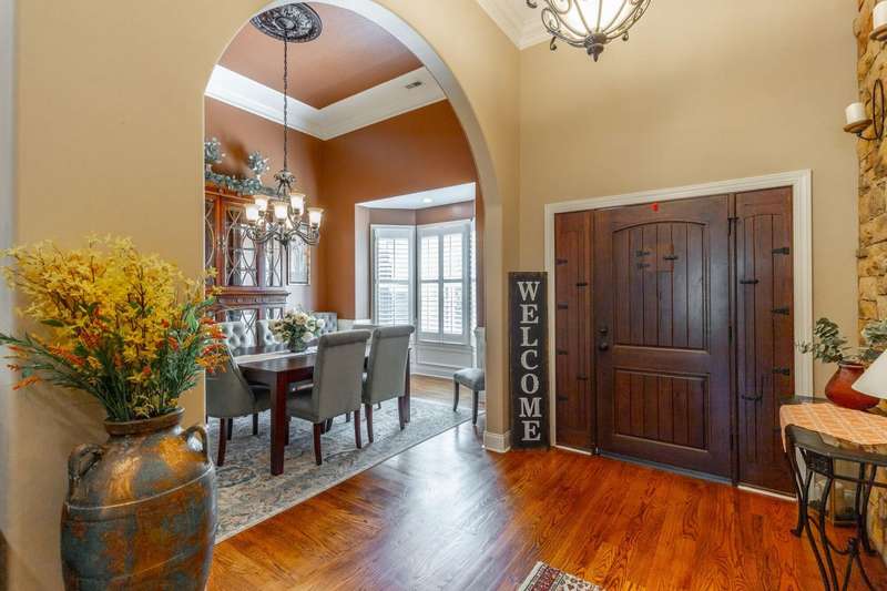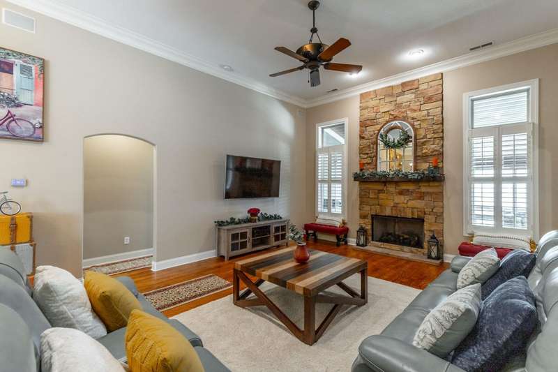 Welcome to this stunning, meticulously maintained home offering over 5,000 square feet of elegant living space in one of the area's sought-after neighborhoods. With beautiful stone work on the exterior this home is a showstopper. The home features 4 spacious bedrooms, 4 full baths, and a half bath, perfectly designed for both everyday living and entertaining. The main level offers a well-appointed primary suite with a large bath, walk-in shower and separate tub, along with two additional bedrooms and a full bath tucked away on the opposite side of the home for privacy.The heart of the home is a large, open kitchen featuring an eat-at bar, breakfast area, and a cozy keeping room with a gas fireplace?perfect for casual gatherings. Kitchen features gas stovetop, granite countertops and other stainless appliances. There's also a grand living room with its own gas fireplace and a formal dining room framed by soaring ceilings and rich hardwood floors.Upstairs, you'll find a private en suite bedroom with a full bath, a sitting area, and a spacious bonus room?ideal for guests, a home office, extra storage or a hobby space.The basement level is designed for fun and function, offering a massive recreational space large enough for a pool table, a dedicated media room with theater-style seating, a workout room (big enough for a sauna, though the sauna does not convey), a wine cellar, and a full bath. Plus, there's an additional one-car garage on this level?perfect for a workshop, lawn equipment, or storage.Practical features include a central vacuum system, a separate laundry room with a utility sink, and a two-car garage on the main level. Roof is less than 2 years old. Outside, the home is just as impressive, sitting beautifully on a corner lot with extensive decking across the back, plus a covered patio underneath?ideal for outdoor entertaining. The professionally landscaped yard offers both beauty and privacy. This coveted community includes a neighborhood pool, clubhouse, and even a hidden lake for residents to enjoy.If you've been searching for a home that truly has it allspace, style, and amenitiesyou've just found it. Welcome home! Buyer is to verify any and all information they deem to be important, including but not limited to sq. ft., school zone, restrictions, lot lines, acreage, flood zone, etc