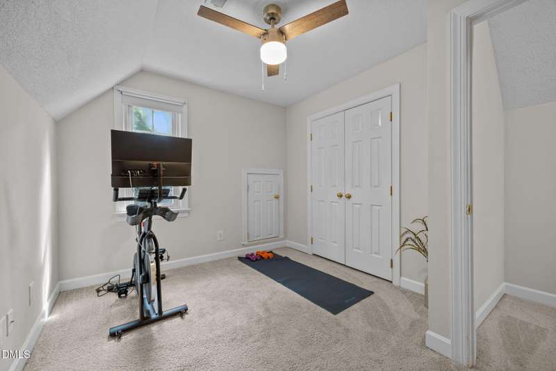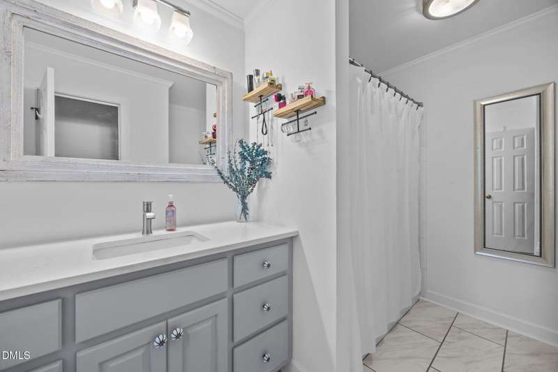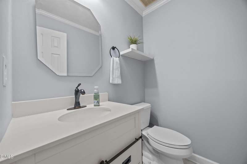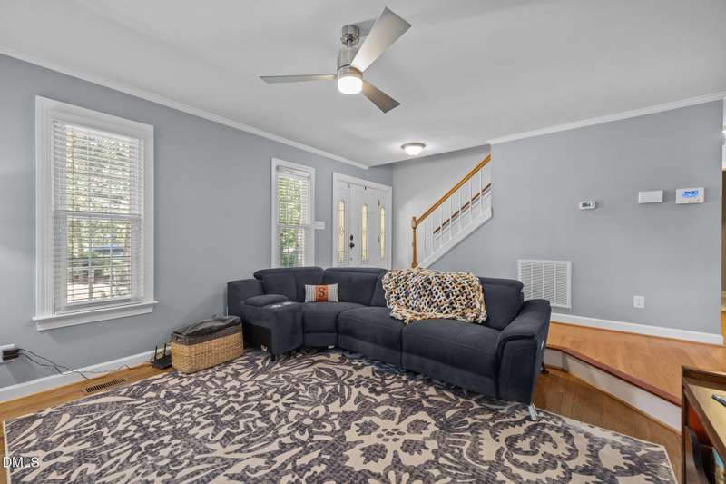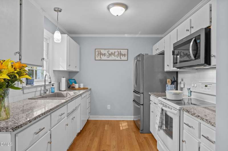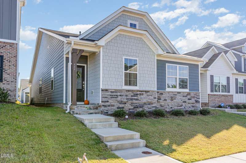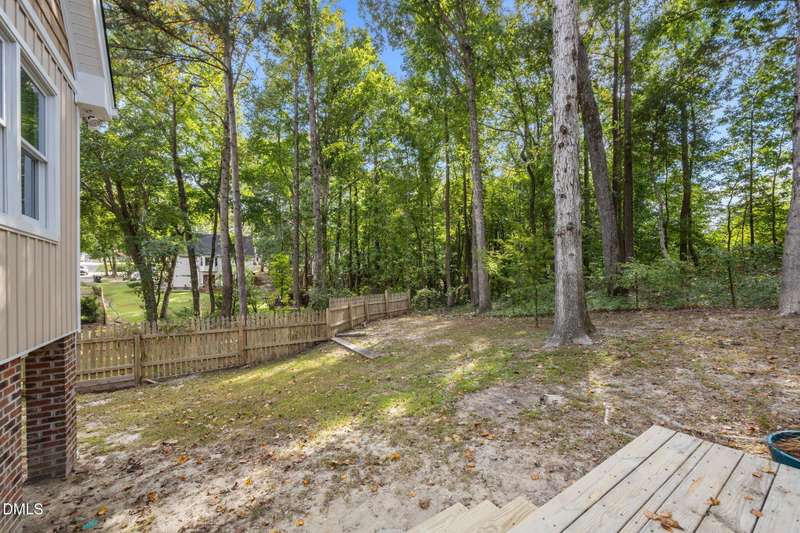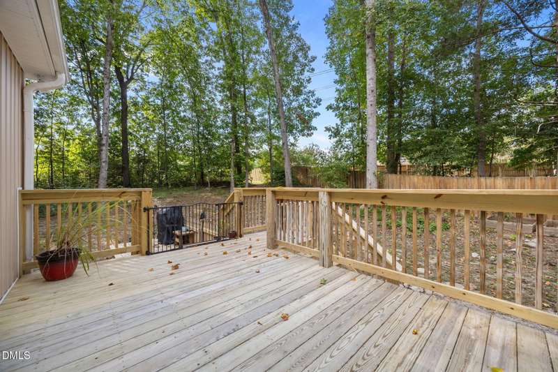 Welcome to Carrington Woods, where this beautifully updated transitional home offers a versatile and inviting floor plan. The main level features a spacious primary suite along with an additional bedroom that can serve as a guest room, office, or flex space. Upstairs, you'll find two more generously sized bedrooms and a thoughtfully designed full bath. The interior showcases upgraded granite countertops, a comfortable sunken family room, and a layout designed for both everyday living and entertaining. Step outside to a large deck overlooking a 1.42-acre wooded lot, providing both privacy and connection to nature. The backyard opens directly to the Mingo Creek Trail greenway, ideal for recreation and outdoor enjoyment. Located just a short stroll from Knightdale Station Park and the growing downtown area, this home offers convenient access to shopping, dining, and community amenities.