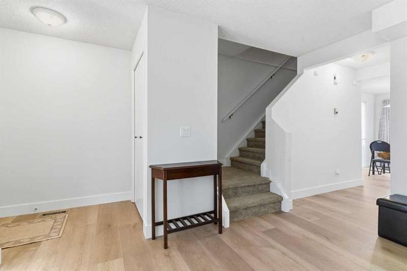 Don’t miss this rare opportunity to own an upgraded 1100 square foot END UNIT, 2 storey town home with 3 bedrooms, 1.5 bathrooms, and full basement, directly siding a pathway and green area, for under $400,000. Homes like this don't get listed often at this price point, which offers greater affordability. Deer Ridge and Deer Run are stellar south locations, close to Fish Creek Park, minutes to shopping and amenities in the Deer Valley Market Place, Avenida Mall, and Southcentre Mall, with easy access to MacLeod Trail and Deerfoot Trail, as well as lots of additional shopping in Shawnessy, Quarry Park, and McKenzie Towne. All the Deerfield Terrace properties have stucco and wood exteriors. This one allows you to enjoy a private fenced yard with paving stone surface, to sit out in Calgary's year-round sunny weather. It also comes with an assigned parking stall, and plenty additional visitor parking on the drive. Inside is a spacious starter home, with brand new beautiful vinyl plank flooring and fresh paint throughout the main and upper floors. Bright natural light transfers from the newly installed in the spring bay-window, which has a bench seat (with storage). Following through the open hall, there is a 2-piece bathroom and broom closet leading into the wrapped contemporary white kitchen, dinette area with exterior window and large patio doors. Going upstairs, you will experience the safety and warmth of the newly carpeted stairs and new luxury vinyl plank flooring throughout the upper floor. The primary bedroom is spacious enough for king-sized furnishings and has a large walk-in closet. There are also two additional comfortable bedrooms, one large enough for a double or queen size bed and an additional dresser or desk and with double closets. There is also a third bedroom with an exterior window and closest. There is also a full 4-piece bathroom and linen closet centrally located for all three rooms, with a hall stub wall to better accommodate moving furniture in or out. Downstairs, the basement allows for an additional 400 square feet of living space and the layout allows for a big rec/games area, central hobby or playroom, tucked away utility and storage, plus a laundry area that can all be finished to personal taste. There is zero wasted space. See iGuide 3D tour Link with detailed Floor Plans and inside-outside 360 panorama cameras. The Deerfield Terrace complex has an efficient and cost-effective management, regular exterior maintenance, low condo fees and a solid Reserve Fund Plan. The condo documents are available by request and will give you confidence. (Request a showing through your favourite trusted real estate agent. Don't wait, come see this incredible home. A wonderful Opportunity.
