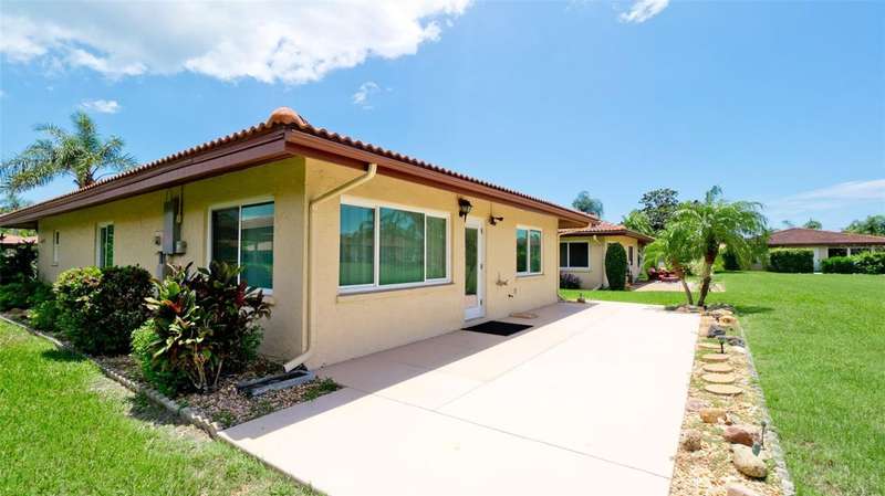 Seller offering $5,000 toward closing costs!Freestanding Gem in Cambridge Village - Meticulously Updated & Move-In Ready!Welcome to this impeccably maintained and beautifully updated freestanding unit in the highly desirable 55+ community of Cambridge Village! This home has been thoughtfully renovated with high-end finishes, offering true Florida living at its finest.Step inside to discover solid strand bamboo flooring that flows seamlessly throughout the entire home, creating a warm, elegant feel. The kitchen is a showstopper, featuring real wood cabinets, sparkling quartz countertops, and brand-new stainless-steel appliances-perfect for any home chef.The primary suite is a private retreat with an updated en-suite bathroom that boasts modern finishes, clean lines, and a spa-like atmosphere. Hurricane-impact windows and brand-new exterior doors provide peace of mind year-round, a brand-new electrical panel, and a water heater located in the carport help keep maintenance worries at bay-no risk of interior leaks here!Step outside and fall in love with the extended rear patio that spans the length of the home. Overlooking a tranquil greenbelt and offering a peek at city skyline views, this outdoor space is perfect for relaxing with your morning coffee or entertaining under the stars. The beautiful heated pool is just steps from your front door, perfect for relaxing on nice summer days.?? Prime location-just minutes to Sarasota-Bradenton International Airport, University Town Center, award-winning restaurants, and the sugar sand beaches of Florida's Gulf Coast.