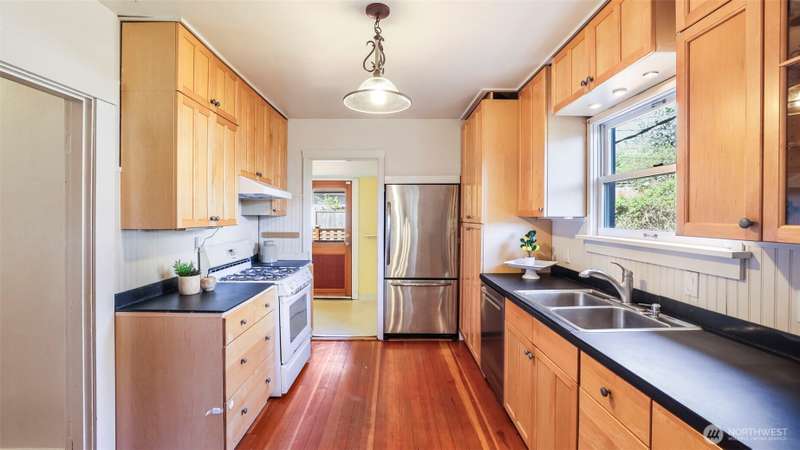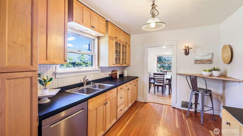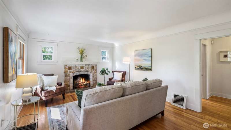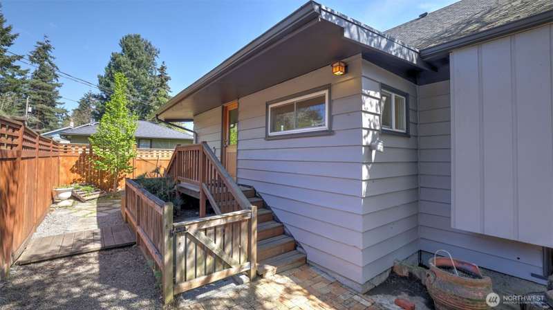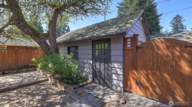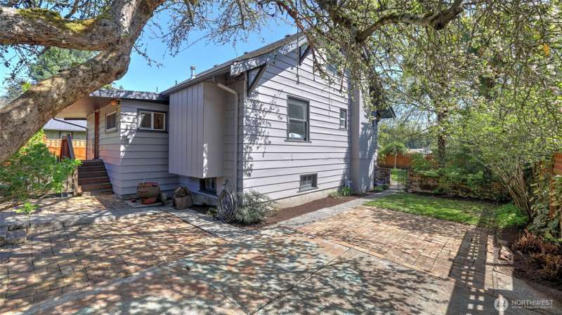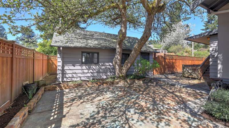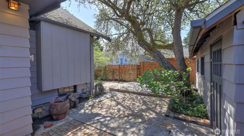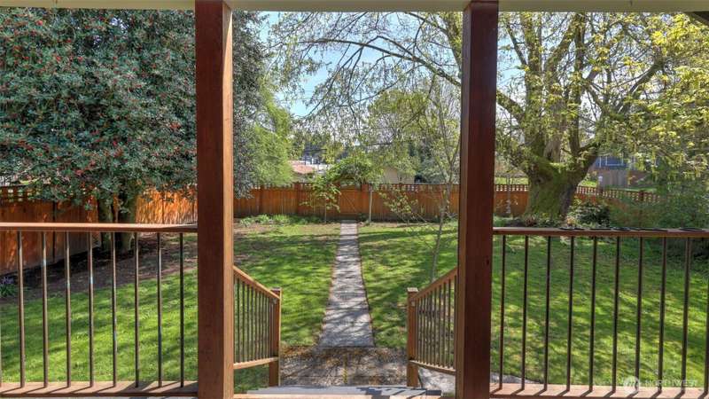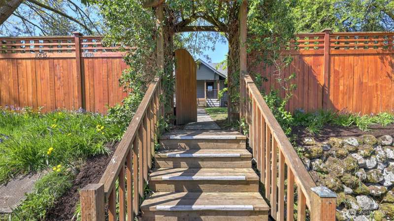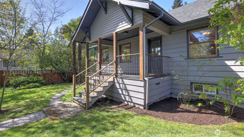 Prepare to be swooned! You can't help but smile as you enter through a covered trellis gate to a dreamy yard ensconced by a grand maple tree & mature palms. Stately craftsman welcomes you with its expansive covered front porch & wood wrapped windows, leading to the living room with coved ceilings & period tile. The charm continues in the accommodating kitchen with reclaimed chalkboard counters & breakfast bar. Primary bedroom on the main floor, 2 bedrooms upstairs & a bonus room or 4th bedroom with gas stove & built-ins in the full height basement with additional unfinished space & interior/exterior access. Reclaimed brick patio leads to oversized garage with alley access. Located moments from shops, restaurants & multiple commuting options