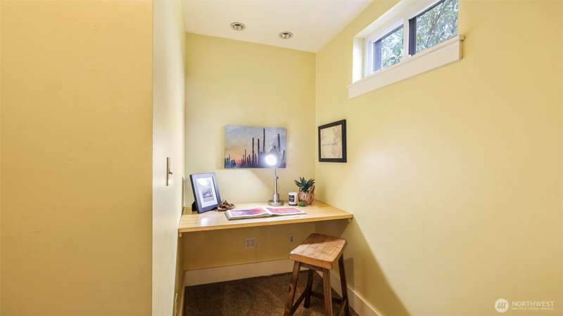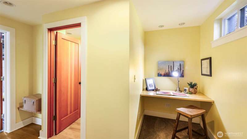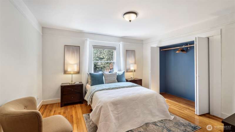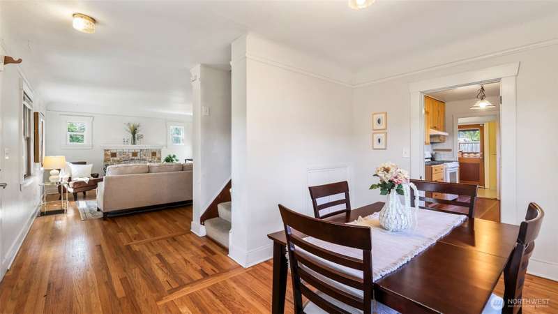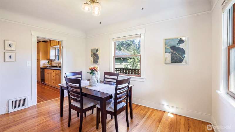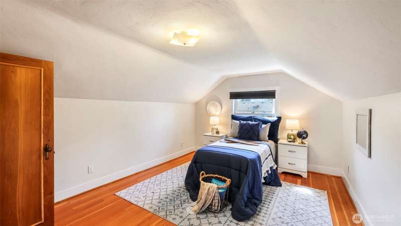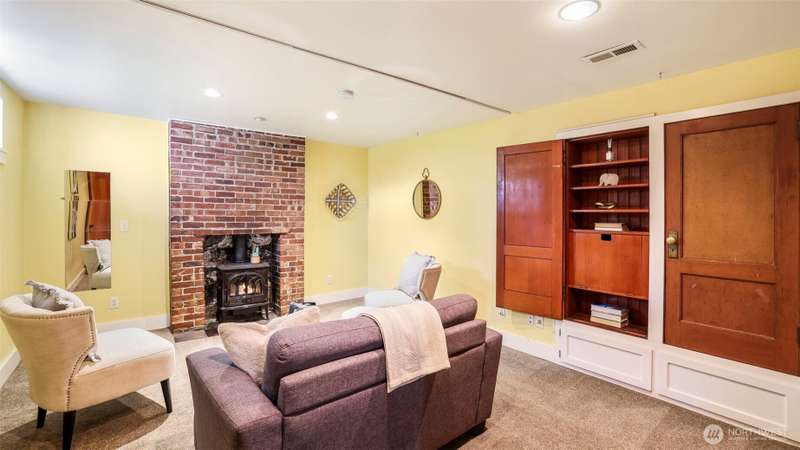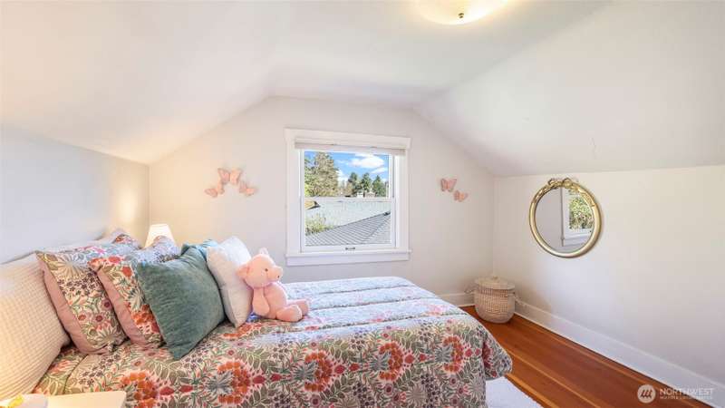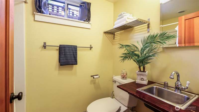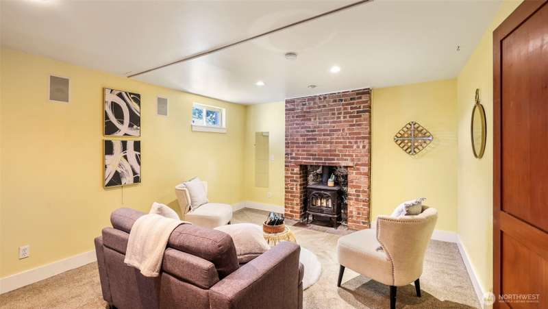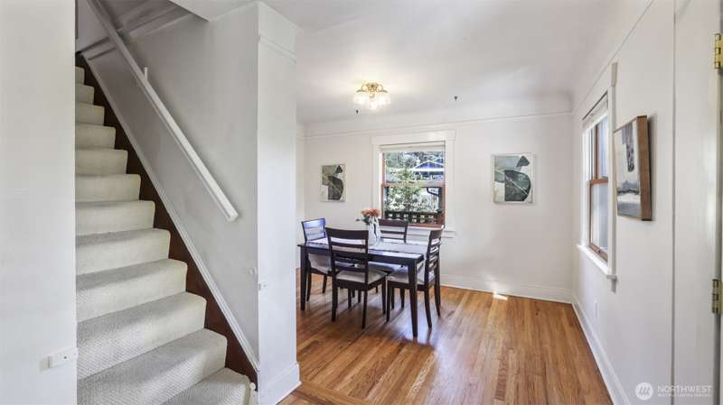 Prepare to be swooned! You can't help but smile as you enter through a covered trellis gate to a dreamy yard ensconced by a grand maple tree & mature palms. Stately craftsman welcomes you with its expansive covered front porch & wood wrapped windows, leading to the living room with coved ceilings & period tile. The charm continues in the accommodating kitchen with reclaimed chalkboard counters & breakfast bar. Primary bedroom on the main floor, 2 bedrooms upstairs & a bonus room or 4th bedroom with gas stove & built-ins in the full height basement with additional unfinished space & interior/exterior access. Reclaimed brick patio leads to oversized garage with alley access. Located moments from shops, restaurants & multiple commuting options