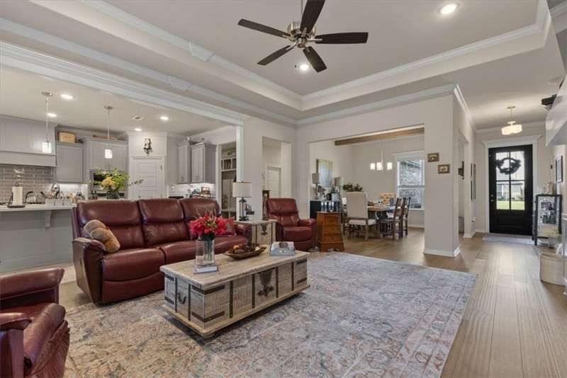 Dreams Do Come True!!! Bright and Beautiful... This home will make your dreams come true! Better than Brand New with existing yard and landscaping! Less per square foot than the new builds in this area. The space you need 4 bedrooms, 3 Full baths, Formal and informal dining, huge living area open to kitchen. Fantastic fireplace surrounded by book cases! Room for office, big rooms, great closets. Don't miss seeing this one immediately! Privacy fetched fenced backyard. Adjacent to a tranquil pond with a gorgeous fountain. The swimming pool for the area is right there also! Sodded yard also landscaping! NOT IN FLOODPLAIN!!!