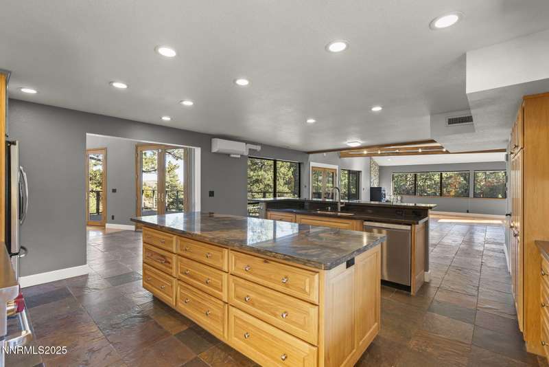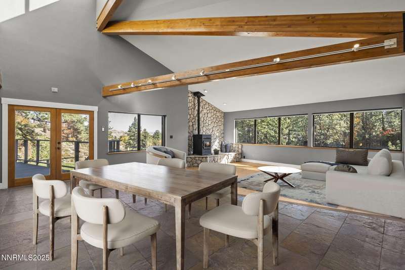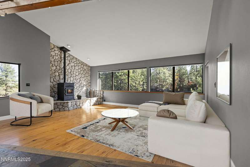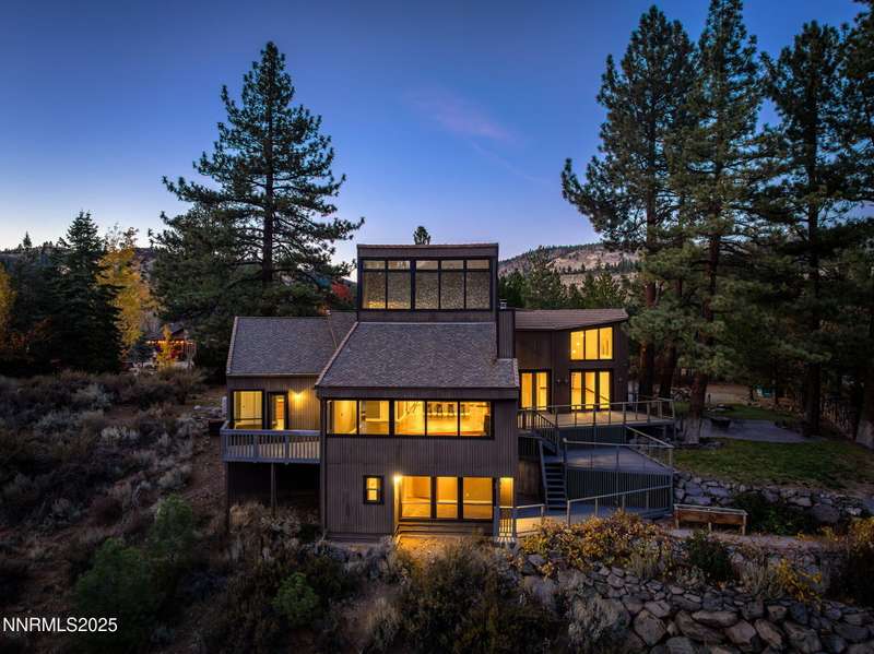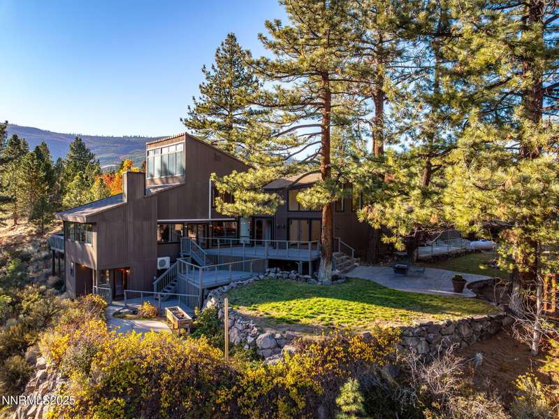 Stunning Contemporary Mountain Retreat set on 1.45 Acres! Nestled among the pines in beautiful Verdi, Nevada, this custom-built 4-bedroom home offers a perfect blend of luxury, comfort, and nature. Enjoy majestic valley views and seasonal Sunrise Creek just below, this property is a true serene retreat just minutes from Reno! Inside, the open floorplan showcases soaring ceilings and light-filled living spaces designed for both relaxation and entertaining. The chef's kitchen features custom cabinetry, massive dual islands, natural stone countertops, and a professional 6-burner range—an ideal setting for culinary creativity! With garage space for up to 6 cars, there is also plenty room for all your recreational vehicles and toys. There is a dog run and a detached utility garage too! Additional rooms provide flex space for a 5th bedroom, a gym, office, crafts, or hobbies! Outdoor living areas including multiple decks and a stone veranda invite you to unwind and enjoy the peaceful natural surroundings. Additional bonuses include- No HOA, Nevada tax structure, just a short drive to Lake Tahoe and ski resorts!
