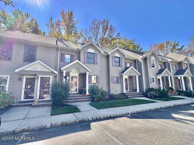 This Beautiful 2 bed 2.5 Bath Townhouse in Holmdel's Fox Chase has a Contemporary Feel with overlook to lower level with open layout*New Kitchen with Quartz Counter,Stainless Steel Appliances,Grey cabinets contrast the Tile Floor perfectly with a hexagon marble Backsplash*Spacious Family Rm with High ceiling,New Accent Wall with Box Molding,Vinyl Floor and the Large rectangular Window baths the room in sunlight*Sliders to Trex Deck facing the privacy of Trees*Upper Level has 2 Large Bedrooms-vinyl floors,recessed lights- each with it's own Bath*Master redone with custom tile,Dual sink quartz Vanity,Brass Fixtures*Plenty of Open Parking for Guests next to open grassy common area*Great Location between rt 35 and 36 and just minutes to GSP and Beaches