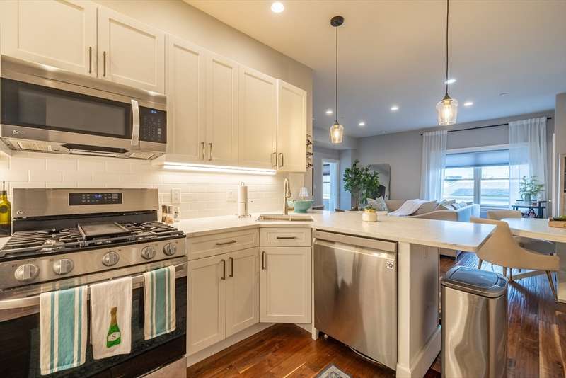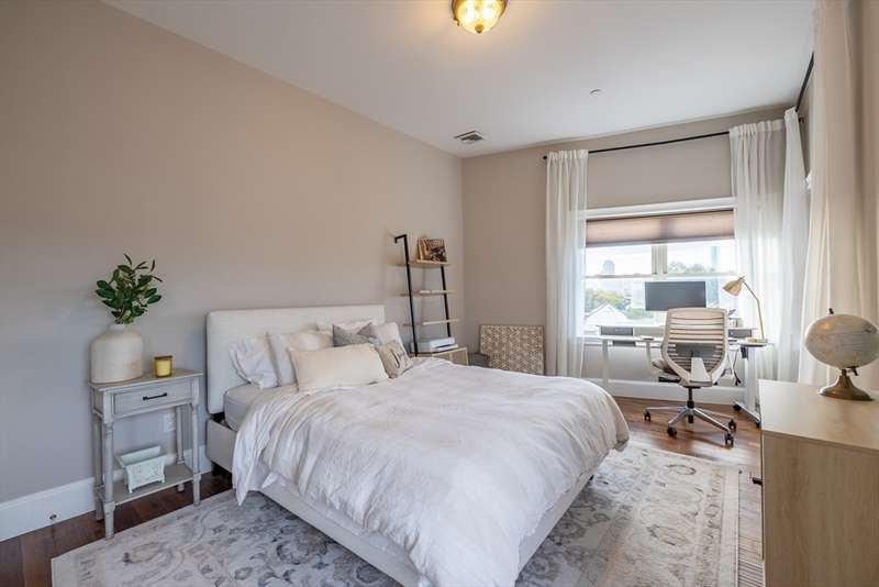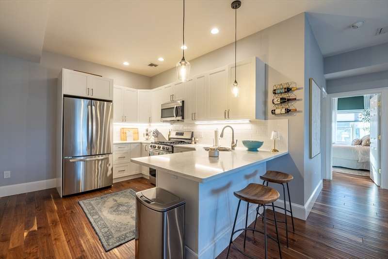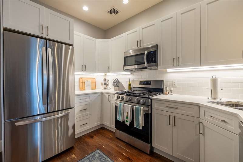 City skyline views from this newly renovated 2 Bed / 2 Bath Penthouse w/ parking! This beautiful top floor unit features a fantastic layout with gleaming hardwood floors throughout. Newer kitchen with stainless steel appliances, gas cooking, custom cabinetry, and quartz breakfast bar. Perfect for entertaining is the large living room with ample space for additional dining. City views from nearly all windows and tons of natural light. To top it all off this unit features recently renovated bathrooms, including one with a jacuzzi tub and the other with a double shower head, 1 spacious off street parking space, central AC, new high efficiency tankless hot water heater, and common area washer/dryer just outside of the unit. Common areas also recently renovated and one of the most spectacular roof decks you'll find, with 2 Weber natural gas grills! Located close to public transportation, some of the best restaurants and nightlife in the city, this unit checks ALL the boxes!