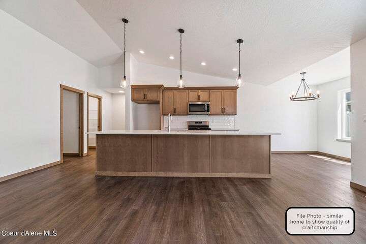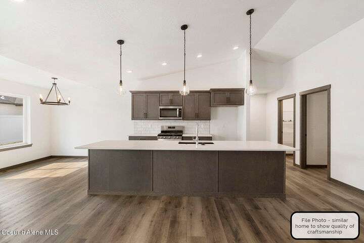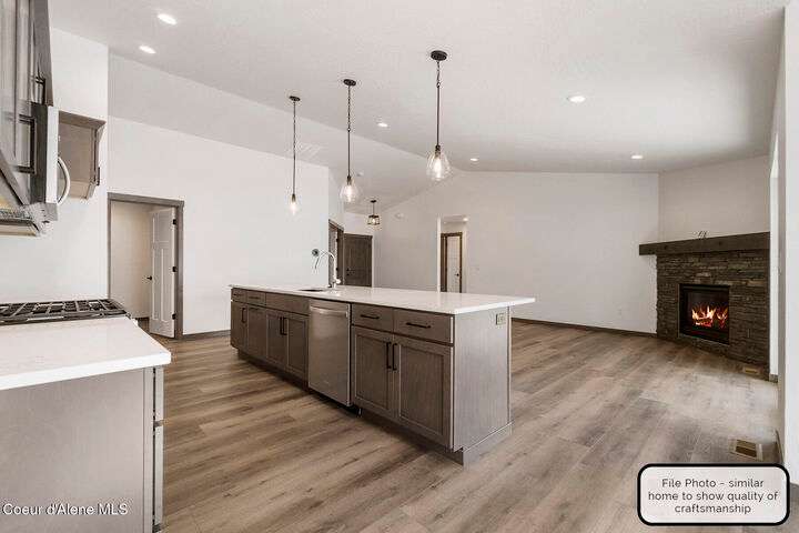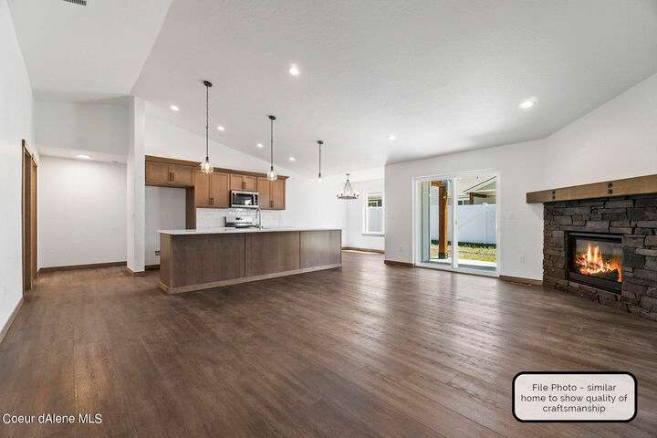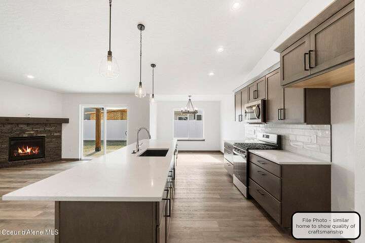 Under construction. Gas fireplace, 3 car garage, quartz countertops throughout, covered front and rear patio, vaulted ceilings, 95% gas furnace, Nest thermostat, tankless gas water heater, gas to rear patio, gas range, LVP flooring every where except bedrooms and closets, garage door opener, garage man door and front yard landscaping and sprinkler system. Additional lots and floor plans available!