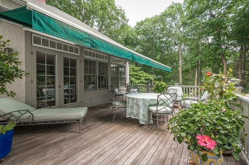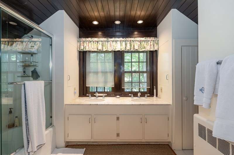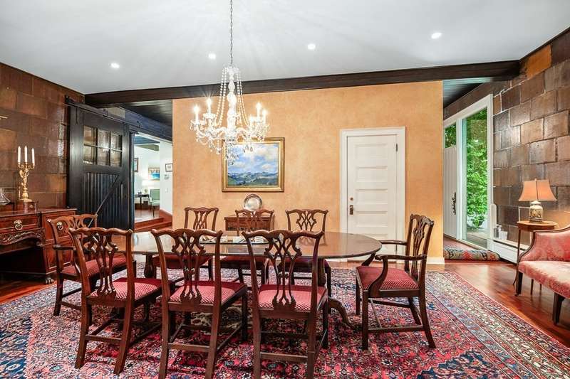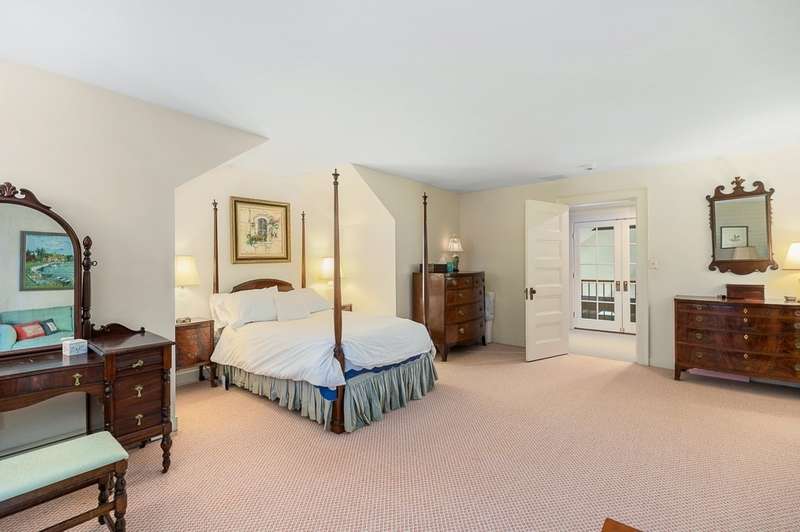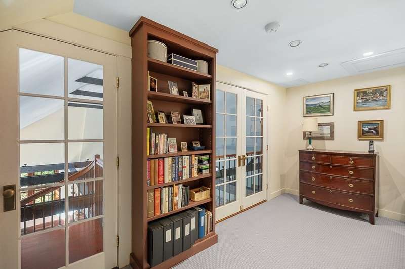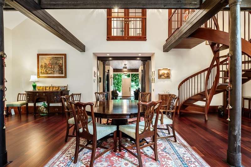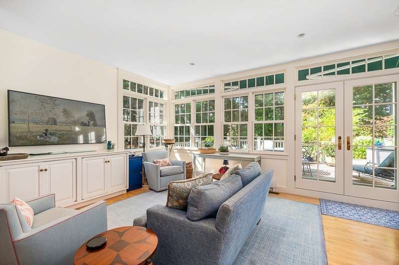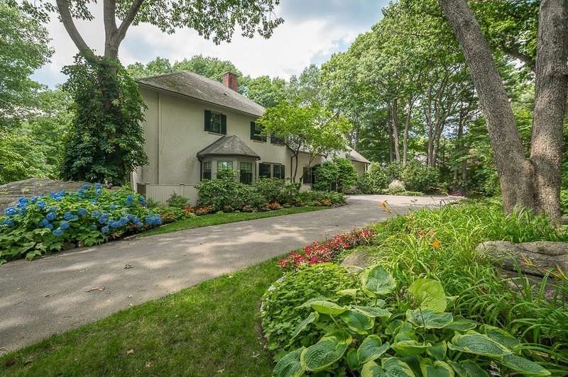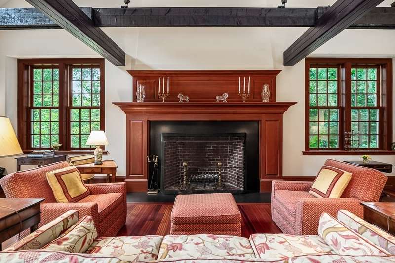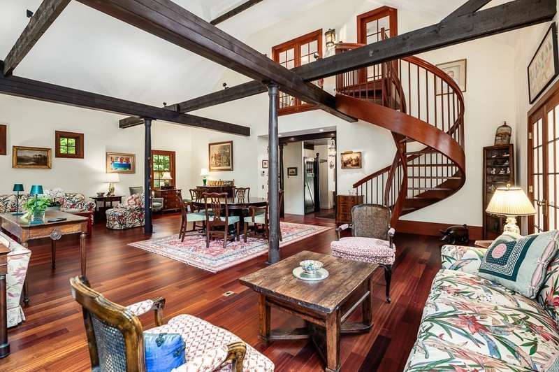 A true carriage house converted over time to a charming character-filled home nestled in lush gardens in a private enclave. The spectacular 2-story beamed great room has radiant heat, a grand fireplace and many gathering spots. A cozy fireplaced library, 3/4 bath and central entry hall with original stall doors hiding a wet bar and coat closets creates an amazing space. The formal spacious dining room flows into the sunny kitchen/family room with french doors to a deck with shade awning overlooking the gardens and meandering pathways. First floor bedroom with ensuite bathroom. Upstairs 2 quaint bedrooms share a renovated bath. The sitting room connects the skylight office area & a glass balcony space with spiral staircase access to the great room and leads to the primary with its carriage house feel of beadboard and ceiling nooks. Ensuite primary bathroom has an architectural plan for future upgrade. Nearby walking trails on over 160 acres of conservation land! A unique offering!