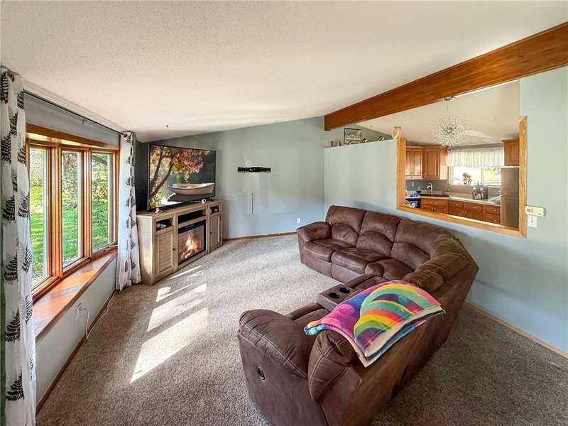 Welcome to New London, MN! Discover comfort and space in this charming 4-bedroom, 2-bath ranch-style home. Set on a beautifully maintained lot, the property includes a large detached garage and a welcoming deck—perfect for relaxing or entertaining—surrounded by mature trees and lush lawn for added privacy and charm. Inside, the kitchen boasts warm wood cabinetry paired with light countertops, creating a bright and inviting space. Sleek, modern appliances and generous natural light make this area both stylish and functional. The open flow from the kitchen into the dining area offers seamless access to the deck, ideal for gatherings or enjoying meals outdoors. A convenient passthrough to the living room enhances the home's open feel, making entertaining a breeze. Downstairs, the finished den provides a versatile space that’s perfect for a home office, creative studio, or cozy retreat.