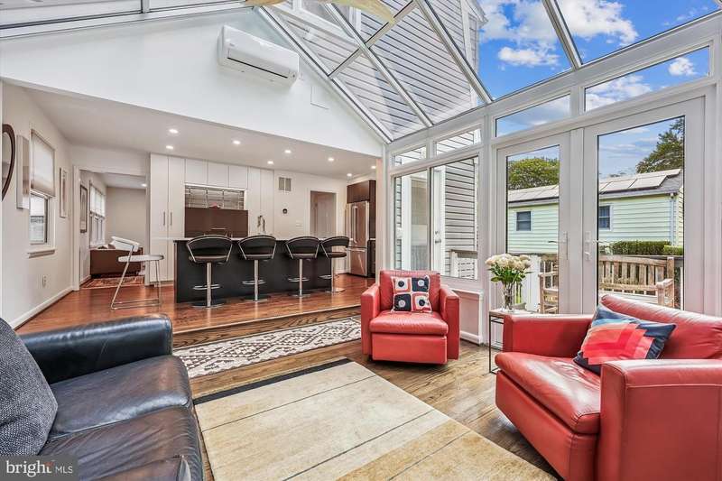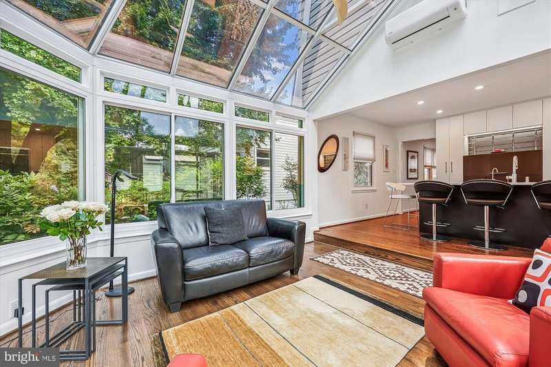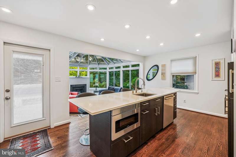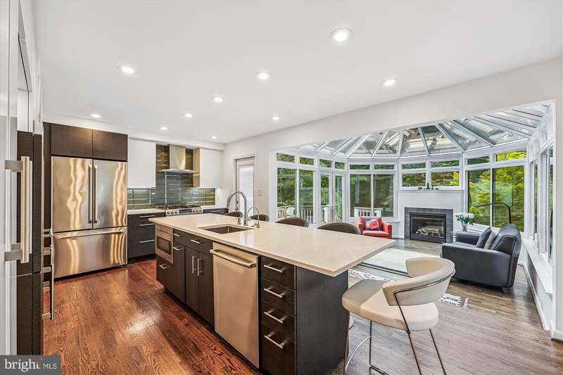 OPEN HOUSE CANCELLED THIS HOME IS GORGEOUS! Welcome to 3310 Glenway Drive, a completely renovated front-to-back Dutch Colonial on a picturesque quiet dead-end street backing to trees. The current owner has invested almost $200,000 in the addition, kitchen, bathrooms, and overall improvements-ensuring style, comfort, and peace of mind for years to come. This residence offers gleaming wood floors, sleek magazine-worthy bathrooms, a sensational custom chef's kitchen, an extraordinary solarium family room, and the security of a new roof. The beautifully landscaped yard, accented by Japanese Maples, evergreens, and stonework, leads to a charming covered front porch. Inside, the sun-drenched living room features recessed lighting, two closets, and rich wood flooring. Beyond the living room is an outstanding gourmet kitchen-an absolute culinary delight. Highlights include a huge center island/breakfast bar, beveled glass mirrored subway tile, custom cabinetry, a hinged hidden coffee station cabinet, quartz counters, a GE gas range with griddle and hood, a stainless-steel appliance suite, and access to the Trex deck. The kitchen flows seamlessly into the stunning solarium family room with glass walls and ceiling, a gas fireplace, ceiling fan, and French doors to the deck. Enhanced by a dedicated mini-split system, this remarkable space feels like the outdoors brought inside, offering year-round comfort. A renovated powder room with a floating vanity completes the main level. Upstairs are three bedrooms, all with wood floors and recessed lighting. The primary bedroom includes a wardrobe system, ceiling fan, walk-in closet with organizing system, and custom blinds. The landing offers a linen closet and access to a thoughtfully renovated bathroom with a rain showerhead plus handheld wand, two niches, ceramic tile walls, a bidet toilet seat, heat lamps, and a large medicine cabinet. One of the secondary bedrooms features a walk-in closet and a custom built-in home office with a wraparound desk. The lower level boasts a freshly painted recreation room with Bamboo flooring and recessed lighting, a bonus room with a full wall of storage shelving, and a laundry room with yard access. The laundry includes new LG washer and dryer units with pedestal storage drawers. This level also includes a renovated bathroom with a wall-mounted floating toilet, vessel sink, and shower with two niches. Additional highlights are a whole-house water filtration system and a UV air purifier system. Outside, enjoy a landscaped yard with stone accents, lush plantings, a circular patio, a deck, and a wooded backdrop. A driveway with EV charger provides convenience. Set just blocks from multiple parks and under half a mile to Oakland Terrace Elementary (home of the Spanish Immersion Program), Antique Row, the Wheaton Metro, and Westfield Mall-with dining, shopping, fitness, and theaters nearby-this home delivers the perfect mix of tranquility, convenience, and character in one of Kensington's most sought-after neighborhoods. Nearby parks include Kensington Orchids Toddler Park and Kensington Heights Park.
