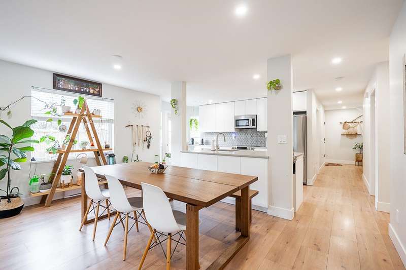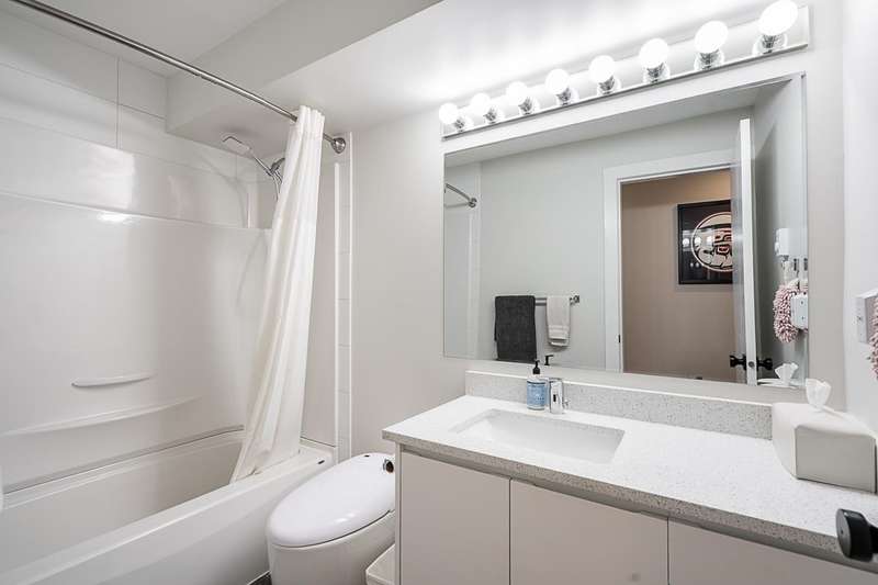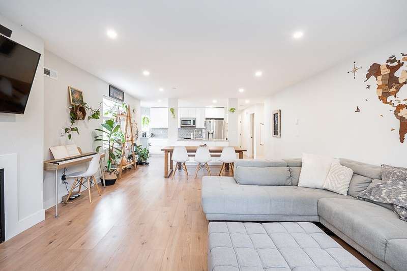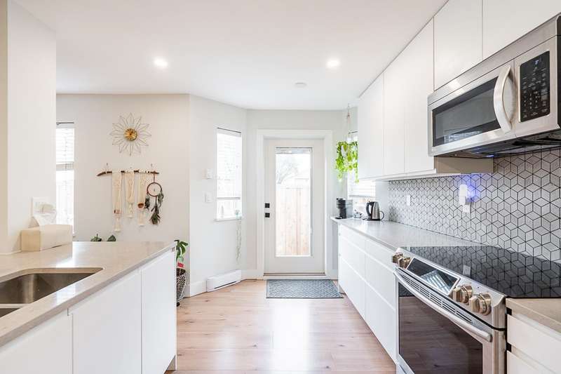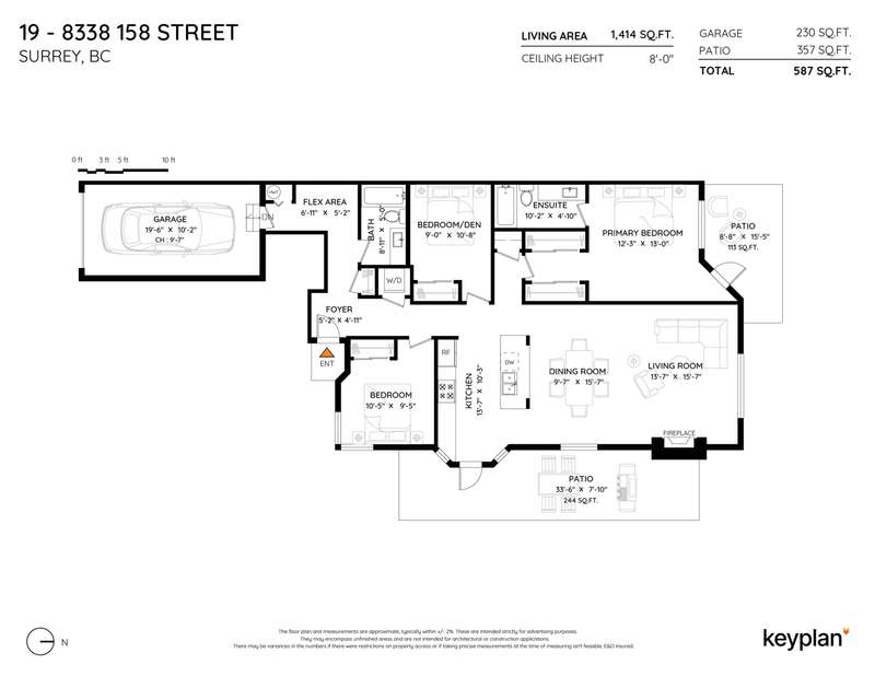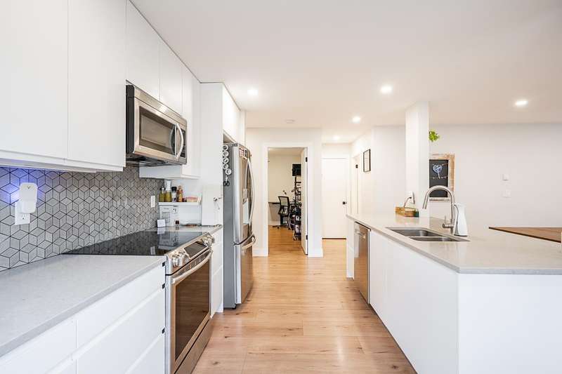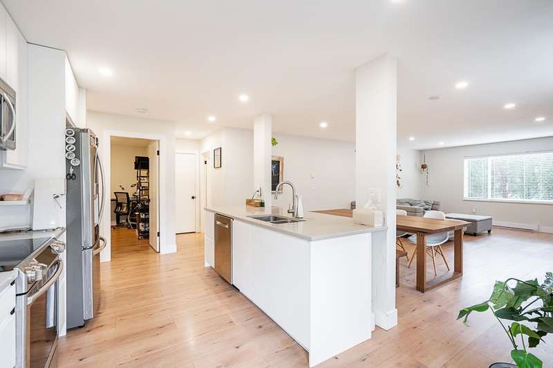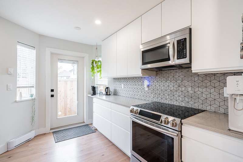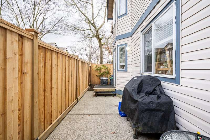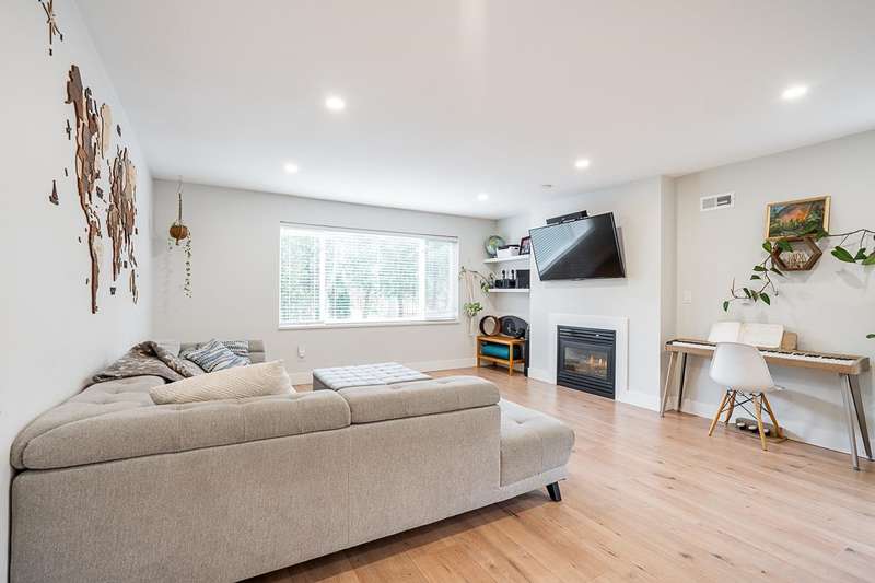 Renovated bright and spacious ground-level end unit townhouse in Fleetwood. Rancher style living at its best with this well-appointed 2 bedroom plus den (could be 3rd bedroom), 2 bathroom home. Features an open-concept great groom with recent updates throughout including new floors, kitchen cabinets with quartz counters and tile backsplash, paint, designer light fixtures, mouldings and stainless steel appliances. Lovely backyard with covered patio and BBQ area perfect for entertaining. Parking includes a single car garage, open parking and visitor parking. Do not miss the opportunity to live in a quiet area of Fleetwood, yet so close to all amenities and future Skytrain!