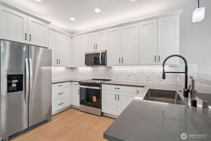 Stylish new construction by Arcadia Homes this 3-bed home blends modern design w/ everyday comfort. Oversized windows fill spaces w/ natural light. Open-concept layout. Wide-plank vinyl hardwoods on main. Sleek kitchen features white shaker cabs, quartz countertops, SS appliances, under-cab lighting, bar seating, & black hardware for a contemporary touch. Step out to a spacious patio overlooking a fully-fenced backyard—ideal for relaxing or entertaining (fences not yet installed). Powder bath on main. Upstairs vaulted Primary Suite offers WIC and 5-pc bath w/dual showers. Dedicated laundry rm w/storage cabinetry & an attached 2-car garage. Stay comfortable year-round w/A/C. Minutes to I-9, parks, schools & Costco.