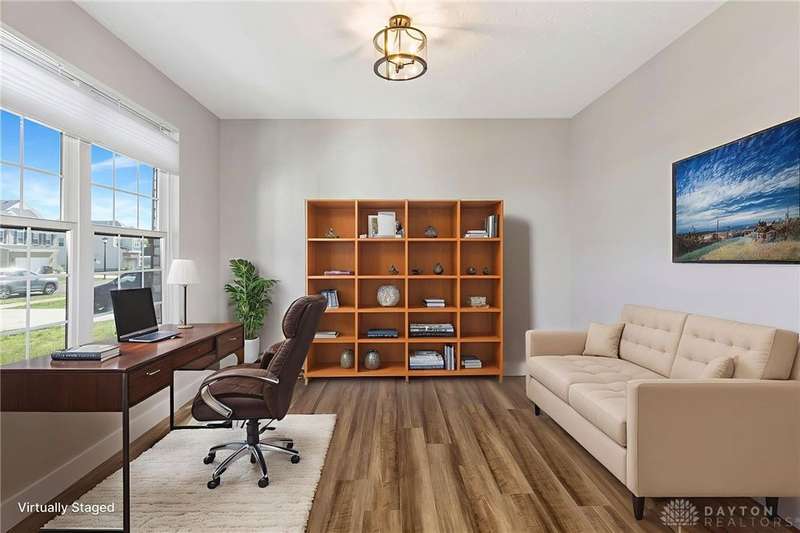 Built in 2024, this like new, modern home pairs upscale finishes with smart design and no HOA. Black windows, 9 ft ceilings, and an open concept great room fill the home with natural light. The chef's kitchen features a large island, gas stove, quartz counters, and designer lighting. The primary suite is a private retreat with a spa bath, double vanity, soaking tub, and a walk-in shower with seat. Enjoy a sunlit home office and convenient second floor laundry. The lower level has a bath rough-in for easy future finish. Quality extras include custom window treatments, a water softener, and an energy efficient furnace. Photos are virtually staged. *Home is part of a 100% Money Back Guarantee Program. Certain terms and restrictions apply.