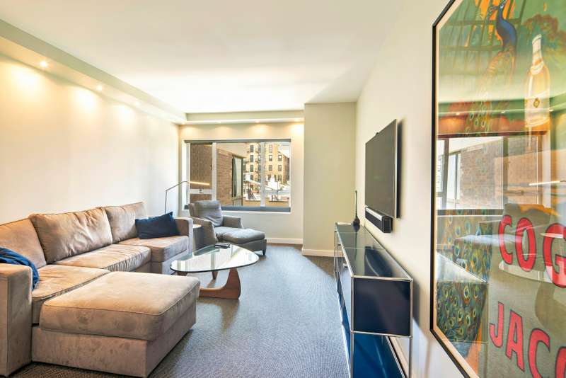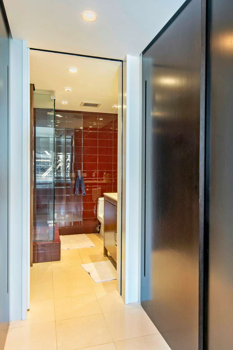 The corner master suite has a spa worthy bath which features a walk in shower and custom vanity. ; In addition there are abundant closets. ; The second bedroom has an enormous walk in closet, a renovated en-suite bath and sunny south views. There is a third bedroom/staff room/den and a bath with a Miele washer and dryer.