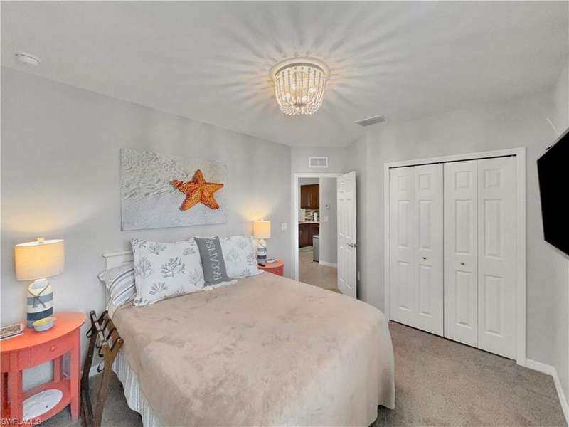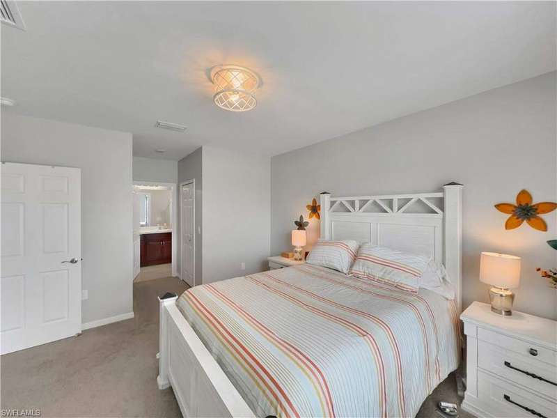 GREAT BUYING OPPORTUNITY! GORGEOUS LAKE VIEW VILLA WITH MANY VALUABLE UPGRADES, LOCATED IN THE BEAUTIFUL, GATED COMMUNITY OF MARBLEBROOK! Welcome to this beautiful Paisley floorplan by Express Homes, featuring 2 bedrooms + den, 2 full bathrooms and a 2-car attached garage. This exquisite villa embodies a harmonious blend of modern elegance and timeless charm, offering a lifestyle of comfort and sophistication. As you step into the home, you are greeted by an open-concept design that seamlessly integrates the spacious living area with the gourmet kitchen, creating a perfect space for both relaxation and entertaining. The kitchen is a chef's dream, featuring high-end appliances, sleek cabinetry, and a large center island/breakfast bar, perfect for hosting gatherings with family and friends. The master suite is a sanctuary of comfort and elegance, offering a spacious bedroom w/gorgeous lake view, a lavish en-suite bathroom with dual vanities and a walk-in shower, as well as two generously sized walk-in closets. The second bedroom, second bathroom and additional den w/French Doors provide ample space for guests or family members, ensuring everyone enjoys the utmost privacy and comfort. Volume ceilings contribute to the open and luxurious feeling of this exceptional home. A laundry room is located inside the residence, for your convenience. Washer + Dryer are included! Enjoy tranquil lake and nature views from either the covered and screened-in lanai or from the extended paver deck in the backyard. Your happy place for cozy outdoor relaxing is ready for you! Further Upgrades of this amazing home include a screened-in front entrance, a paver walkway extension all along the side of the house, from the front to the paver deck in the backyard, kitchen backsplash (on wall and island), upscale light fixtures + ceiling fans, epoxy garage flooring and more! FURNITURE COULD STAY, making this home MOVE-IN READY FOR YOU! This gem has it all! Marblebrook is a highly sought-after, pet-friendly, gated community w/LOW HOA FEES and NO CDD! Community amenities include a resort-style pool, a fitness room, and a kids playground w/swings and slides. NO FLOOD INSURANCE REQUIRED! Conveniently located, just a short drive to shopping + dining (5 mins) and to RSW International Airport (20 mins) , two golf courses (Ibis Landing and Majestic) close by, and Veterans Park with plenty of recreational options is right on the opposite side of the street from Marblebrook's main entrance!