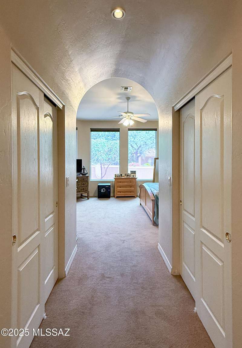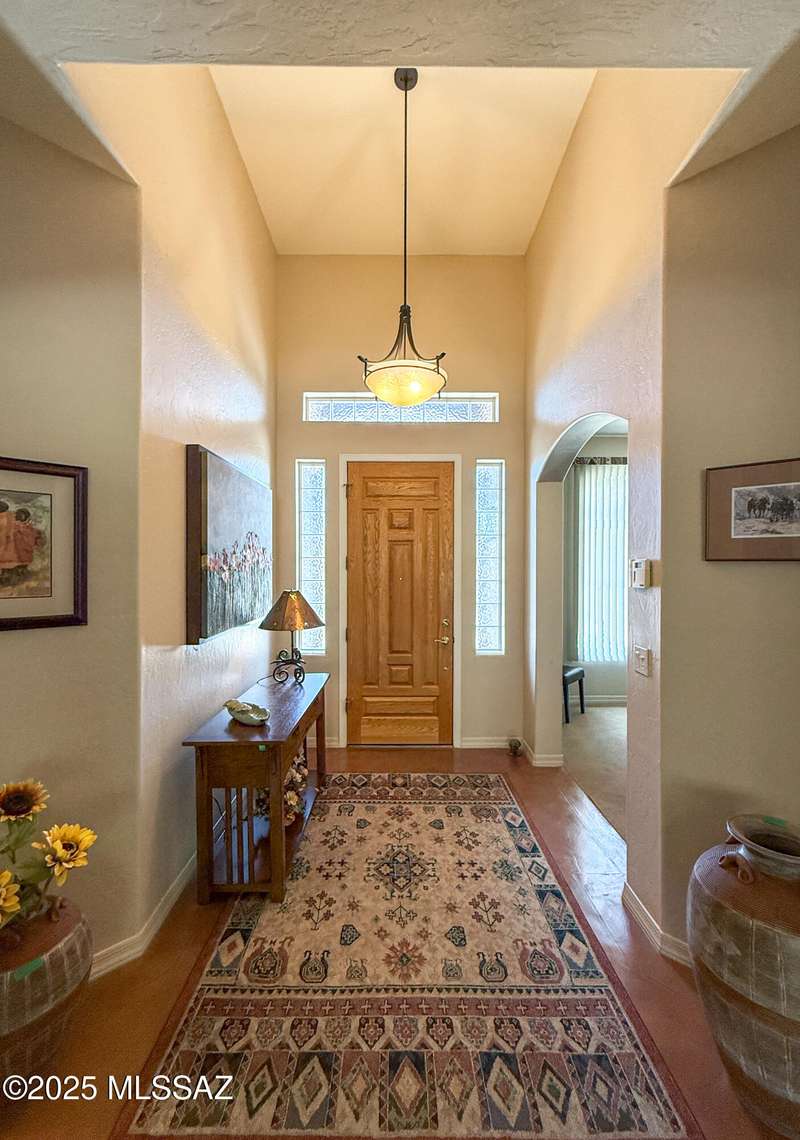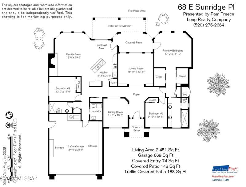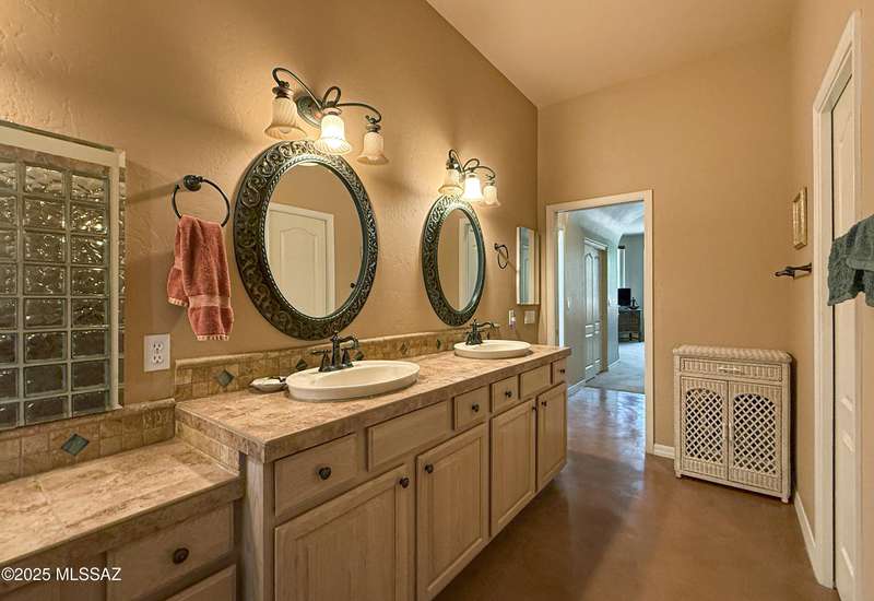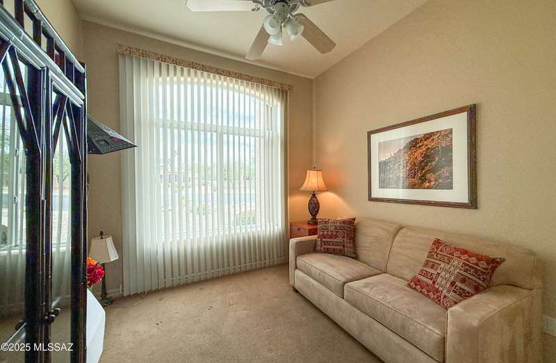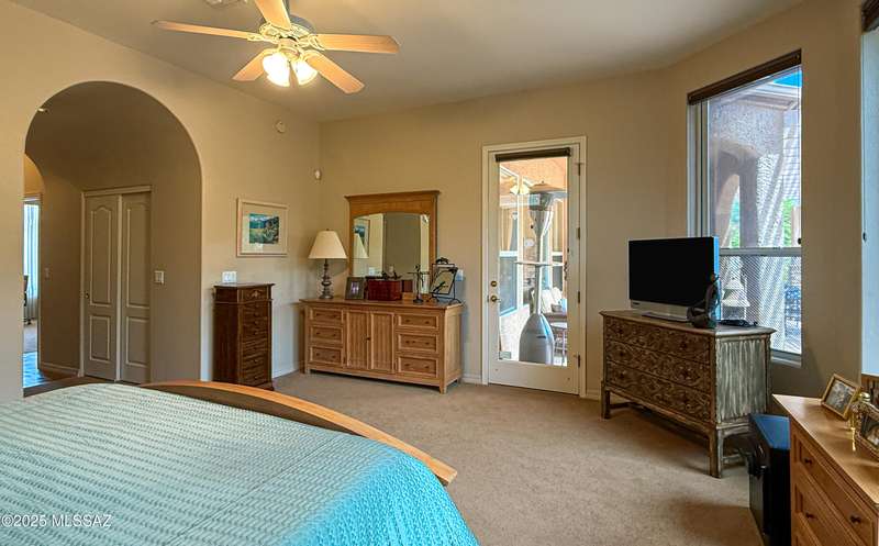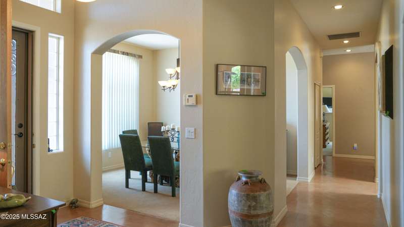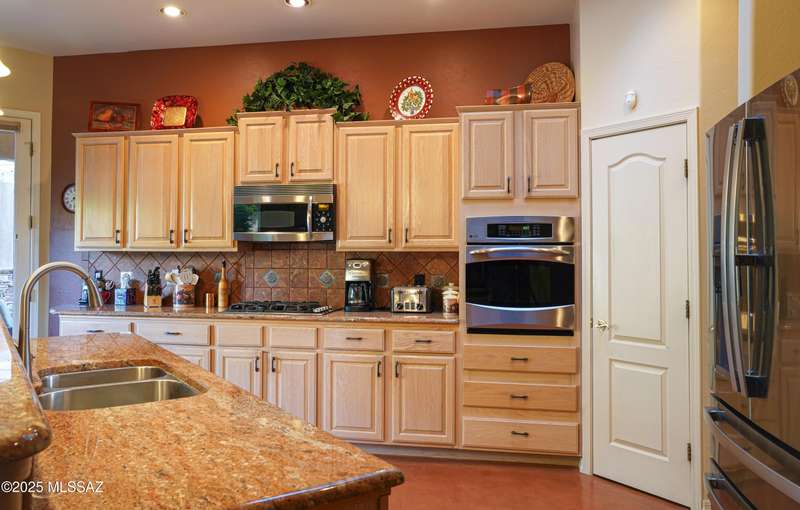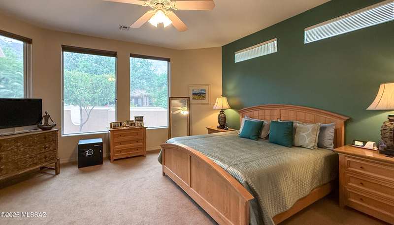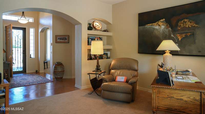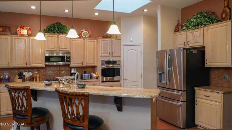 Nestled within the Oro Valley Country Club community and the gated Sunstone Estates, this A.F. Sterling-built home is ideally situated on a quiet cul-de-sac lot with fabulous views of Pusch Ridge. The thoughtful split floor plan features spacious living areas, a formal dining room, and a versatile formal living room. The family room showcases a striking stacked-stone gas fireplace with a rustic wood mantle, high ceilings, and panoramic windows that overlook the Catalina Mountains and backyard. The well-designed kitchen features granite counters, stainless steel appliances, including a gas range, a large island with pendant lighting, a breakfast nook, abundant cabinetry, & walk-in pantry. Step outside to a covered patio with a pergola roof and stone-accented columns. The paver