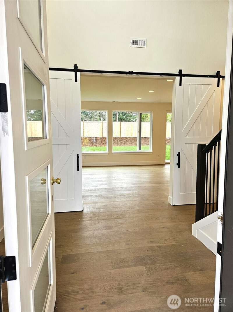 Builder paid 2/1 buydown with preferred Lender. Exceptionally built 5 bdrm home with a spacious bonus room on a large lot. Has a fully finished 3 car garage A bed/flex room on the main floor w the bathroom opposite. The primary suite has a custom double shower upstairs. A welcoming open entry with barn doors for separation of the family room. Rift quarter sawn, custom, kitchen cabinetry graces the main living space finished with quartz counters and 36 induction range. Under counter lighting. Outside expanded living with a covered patio. The large Bonus/rec room is located upstairs, let your imagination run wild. This home has A/C, air cleaner on furnace, car charger and is energy efficient. All amenities close by. Come see for yourself.