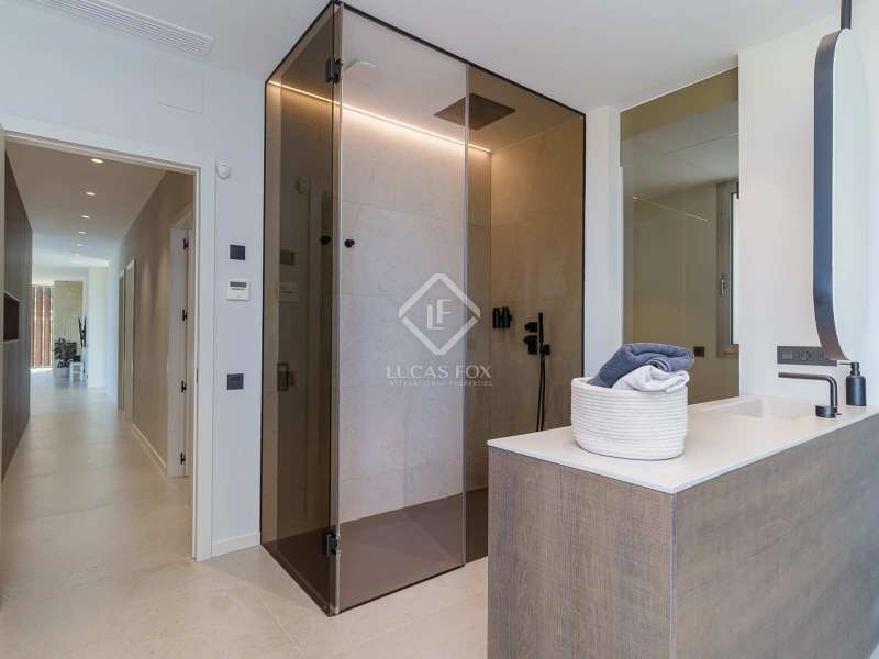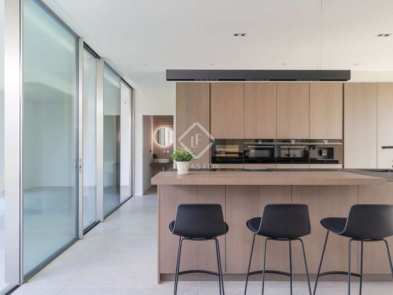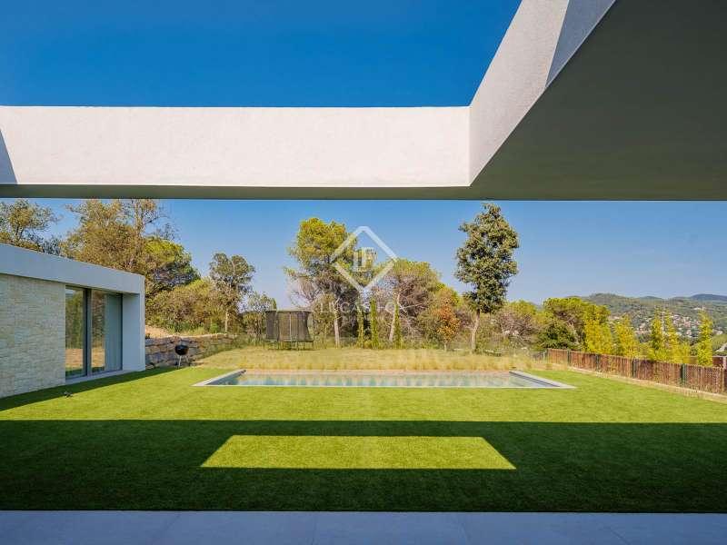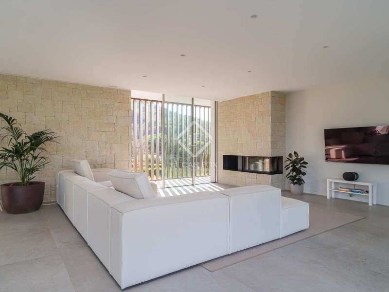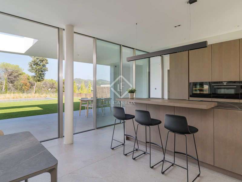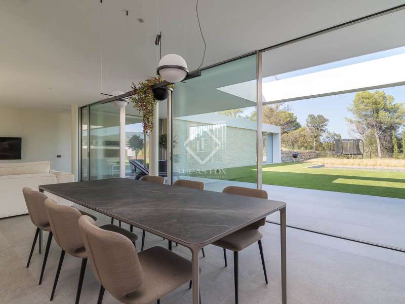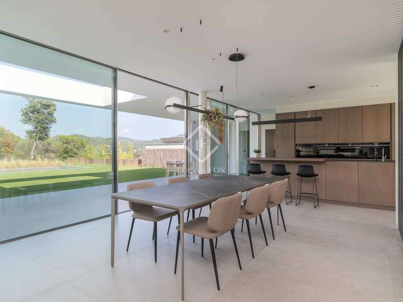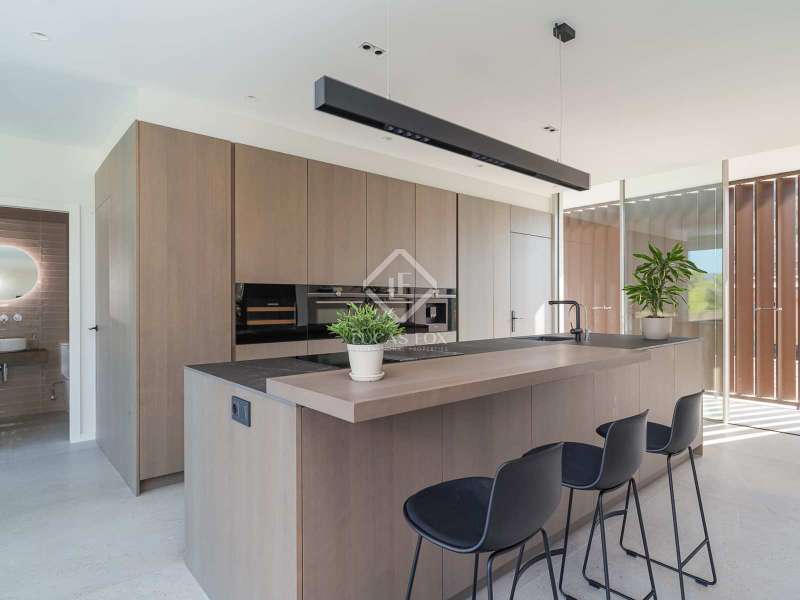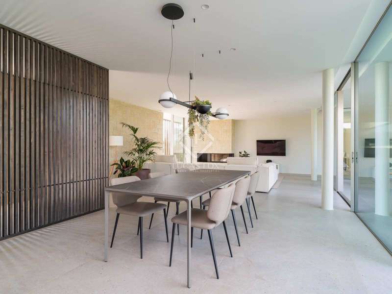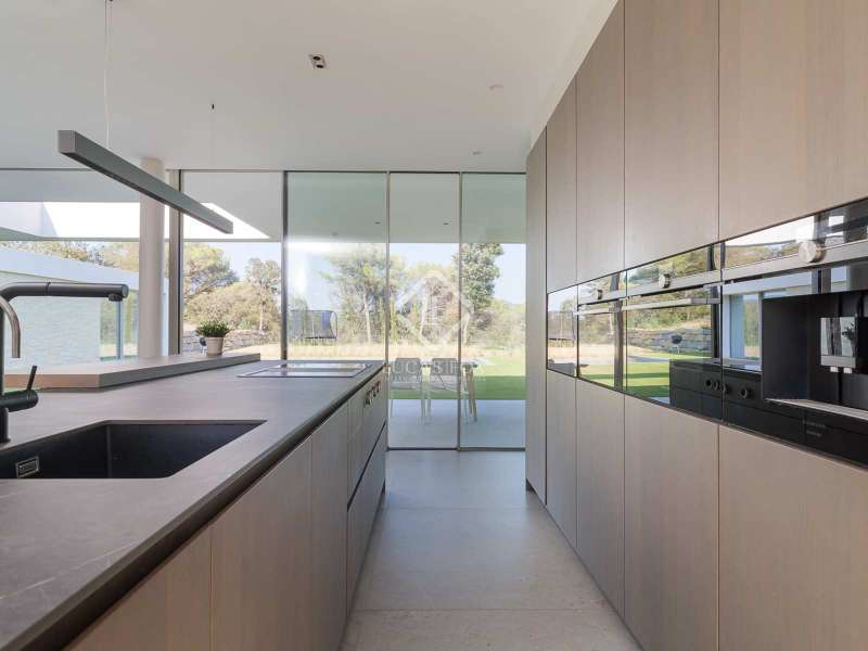Elegant Villa with Golf Course and Mountain Views in a Prestigious Location This stunning contemporary villa, meticulously designed with the finest materials and modern technology, offers an unparalleled living experience in a highly sought-after location. Boasting breathtaking views of the surrounding golf course and mountains, this exquisite home combines sophisticated style with luxurious comfort, making it the perfect retreat for discerning buyers. Ground Floor Upon entering the villa, you are greeted by an expansive entrance hall that seamlessly flows into the spacious living and dining area. Bathed in natural light, this open-plan space features a sleek, modern fireplace and large windows that frame the stunning views, creating an inviting atmosphere for relaxing and entertaining. The state-of-the-art open-plan kitchen, fully equipped with high-end appliances, offers a perfect blend of functionality and style. Adjacent to the kitchen, you’ll find a convenient laundry room, ideal for keeping household items out of sight. The ground floor also includes a guest bathroom and an ideally-situated office, perfect for working from home. The villa has two generous bedrooms with a shared bathroom, providing ample space for family or guests. The master suite is a sanctuary of luxury, featuring an en-suite bathroom and direct access to the beautifully landscaped garden and pool area. Step outside onto the covered porch, where you can enjoy al fresco dining or relax by the pool, surrounded by a lush garden. The villa is equipped with a barbecue area, ideal for hosting summer gatherings. Underground Floor The underground floor is designed with practicality in mind, offering a spacious garage with room for three cars. Additional storage space is available in the storage room, while the technical room houses the villa’s cutting-edge home automation system, ensuring that every aspect of your home is controlled with ease. Features This exceptional property is equipped with air conditioning, heating and double glazing, ensuring year-round comfort. The villa also includes an advanced alarm system for added security. Equipped with a gym, this home is perfectly suited for those who value both fitness and relaxation. The villa’s location is second to none, offering close proximity to international schools and essential amenities, making it an ideal choice for families. Whether you’re enjoying the serene golf views from your garden or taking in the mountain vistas, this villa offers a truly luxurious lifestyle in one of the most prestigious areas. Discover the epitome of modern living in this exceptional villa, where every detail has been thoughtfully crafted to create a home of unparalleled elegance and comfort.