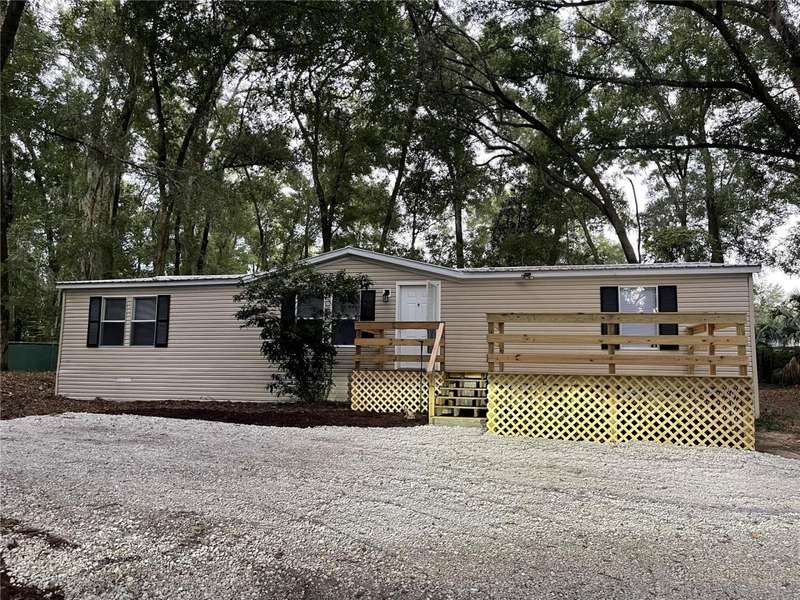Updated bargain with a $5,000 BUYER INCENTIVE! Take a look at this renovated 4 bedroom, 2 bath 1512sf manufactured home in Alachua. Be the first to enjoy the brand new kitchen cabinets, island, brand new stainless steel refrigerator, range, microwave and dishwasher. Kitchen island with butcher block counter top and sitting space for some stools. Flowing throughout the home are new luxury vinyl plank flooring and tile flooring in the bathroom. Both bathrooms have new sinks, vanities and showers. Including a new soaking tub in the primary bath for some relaxation. Primary bedroom and two guest bedrooms have walk-in closets. Inside laundry room with barn door and walk-in pantry. New LED light fixtures and fans throughout. For added peace of mind there is a metal roof, recent HVAC and new water heater. $5,000 buyer closing cost incentive for an acceptable offer by 10/31/2025. Principal and interest payments as low as $1,330.37 per month! Some 100% financing ($0 downpayment) options available for qualified buyers.