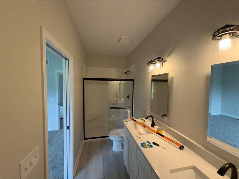 New 3-4 bedroom home in final construction phase located in The Hills of Greystone. Low maintenance exterior, covered patio. Great east end location, close to North Shoppes, Interstate and Oak Grove Elementary. The open floor plan boasts tall ceilings, beautiful island kitchen with custom cabinetry, quartz tops and stainless appliances including refrigerator. The tastefully finished lower level offers a flex room that can be either a 4th bedroom or family room with full bath and laundry. 2 car garage includes opener and handy keypad entry. High efficiency gas furnace plus heat pump. Take a tour and check out all the quality features this home offers. Mid-late August completion date. Taxes listed are on lot only.