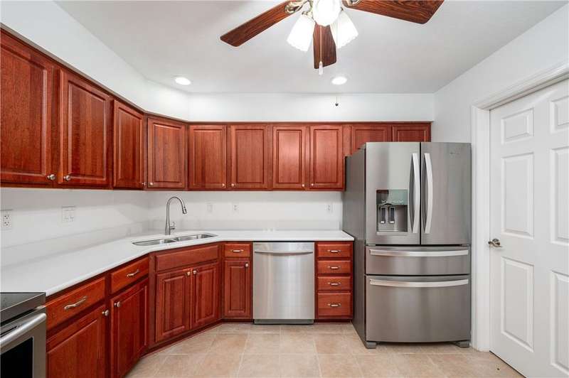 Lovely 4 Bedroom Glenmoor Farms Patio Home. A great walkable community w Pool & Clubhouse. First floor Spacious Master Bedroom features a Walk in closet with built ins & ensuite bath w New Step in Shower & Granite topped vanity w dual sinks. Second first floor bedroom has partial bath w granite topped vanity. Living/Dining Room w Wall to Wall carpet & Ceramic Tile. Spacious 3rd and 4th Bedrooms on the upper level, w New Full Bath and Shower enclosure & granite top vanity. Wall to wall carpet & ceramic tile throughout. Newly updated Kitchen with skylight, features quartz counter tops, new sink and fixtures and an Eat In Kitchen Island with additional cabinetry. New Whirlpool refrigerator, Electric Range w convection Oven, Microwave oven, Dishwasher, & Disposal. First Floor laundry w Maytag washer & dryer. Newer HVAC. Roof recently installed. 2 Car garage w multiple wall cabinets. Driveway recently refinished. Living Room carpet will be replaced. New Paint throughout. Close to shopping.