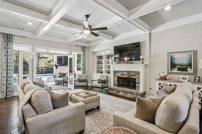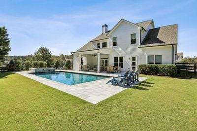Set on two manicured acres in the prestigious Birmingham Estates community, this striking residence captures refined Southern living with modern flair. Featuring four bedrooms and three-and-a-half baths, the home blends effortless everyday comfort with luxury outdoor living. From the welcoming front porch to the sparkling sport pool and hot tub surrounded by marble decking, every space is designed for connection, relaxation, and entertaining in style. The open-concept floor plan showcases gleaming hardwood floors, abundant natural light, and thoughtful architectural details throughout. The primary suite on the main level provides a peaceful retreat with a spa-inspired bath and generous walk-in closet. The heart of the home centers around the warm fireside great room and gourmet kitchen ideal for entertaining or everyday livingwith an oversized island, custom cabinetry, and a casual dining area overlooking the backyard oasis. Upstairs, youll find spacious secondary bedrooms and an expansive recreation room, ideal for movie nights, gaming, or guest accommodations. STORAGE IS ABUNDANT throughout, including a three-car garage, an accessible 12' x 14' temperature-controlled storage room above the garage, and well-organized closets. The covered patio with fireplace and TV makes entertaining effortless year-round, while the manicured lawn offers plenty of space for play and outdoor gatherings. Situated in one of Cherokee Countys most desirable neighborhoodsknown for its large estate lots, scenic setting, and charming mail pavilionthis home combines privacy, style, and convenience, just minutes from Milton, Alpharetta, and Crabapple.