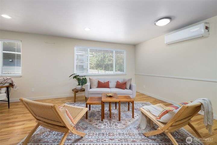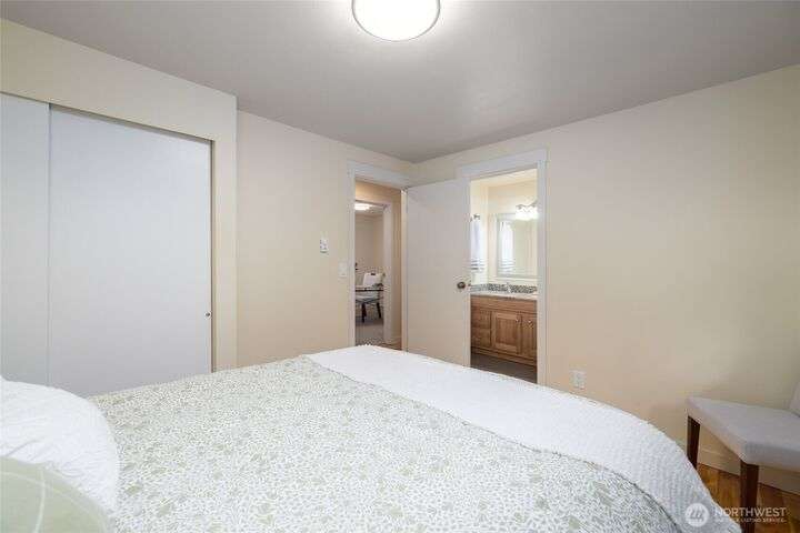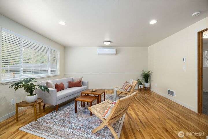 Downtown La Conner living—single-level style and solar smarts. Impeccably cared for and ideally located, this single-level La Conner home is just a short stroll to downtown shops, dining, and the waterfront. Warm hickory hardwood floors throughout lead to a kitchen dressed in sleek quartz, while the full bath offers a quartz double vanity, and classic ceramic tile. Year-round comfort comes easy with a mini-split system, air conditioning, and energy-saving solar panels. The fully fenced yard is perfect for pets, gardening, or simply relaxing outdoors in solitude. Whether you’re right-sizing or starting fresh, this home combines efficiency, style, and small-town charm in a setting that’s hard to beat.