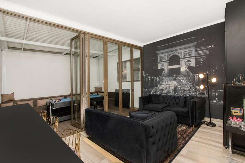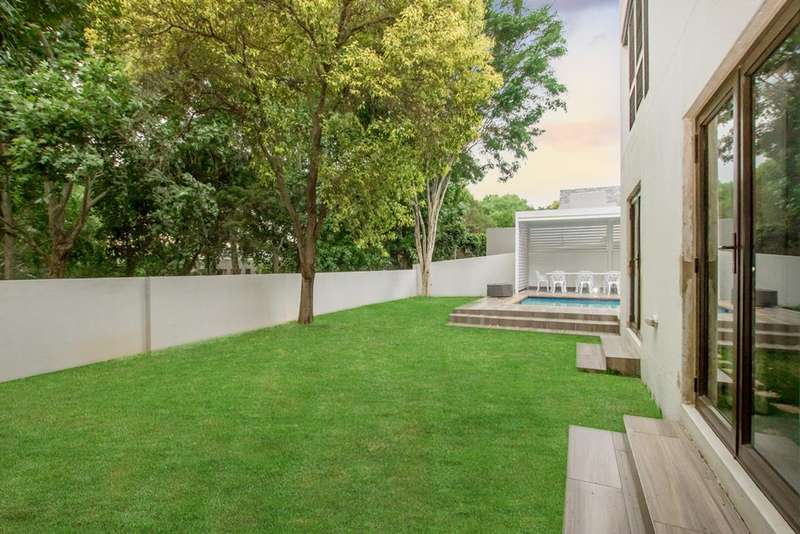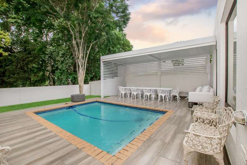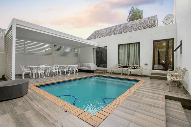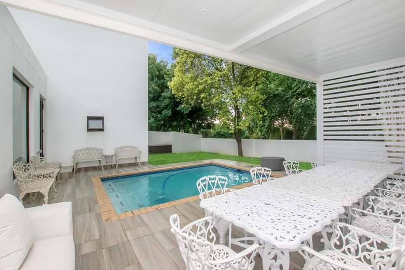 This inviting family home offers a well-balanced blend of comfort, space, and functionality, designed for easy living and relaxed entertaining. The entrance leads to a guest cloakroom and flows into a formal lounge where a fireplace and high ceilings create an elegant focal point. Adjacent is a tiled dining room that connects seamlessly to the expansive entertainment zone. This area is cleverly divided into indoor and outdoor sections with retractable doors, while the exterior deck features built-in bench seating?Çöideal for hosting gatherings throughout the year. A separate gaming room, also boasting high ceilings, extends the entertainment flow and opens onto a covered patio overlooking a compact garden and pool. The kitchen is fitted with granite countertops, a Miele stove and oven, a pantry, and a scullery with space for three undercounter appliances. It leads directly to a private courtyard. A comfortable family lounge/TV room completes the ground-floor living areas. The bedroom wing on this level includes two tiled bedrooms?Çöone with direct access to the garden?Çöalong with a full bathroom and a linen cupboard for added convenience. Upstairs, a smaller third bedroom with a skylight offers a bright, flexible space. The main bedroom is generous in scale, featuring a Juliet balcony, extensive cupboard space, and a bathroom designed with a separate toilet for added practicality. The property further includes a compact outdoor gym area and staff accommodation, ensuring both lifestyle and convenience are well catered for.