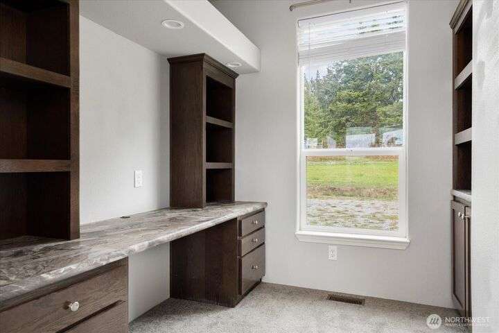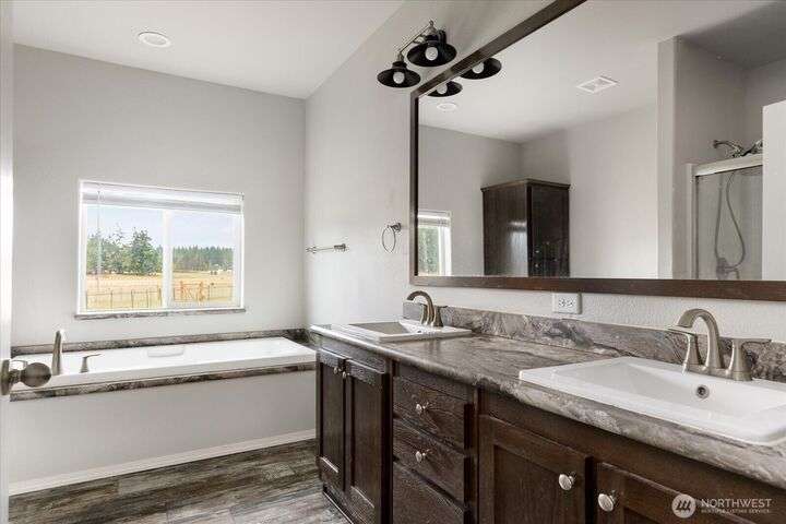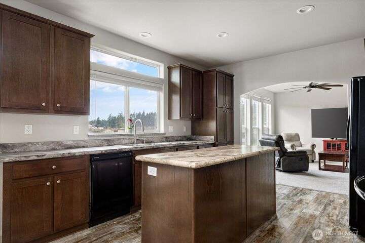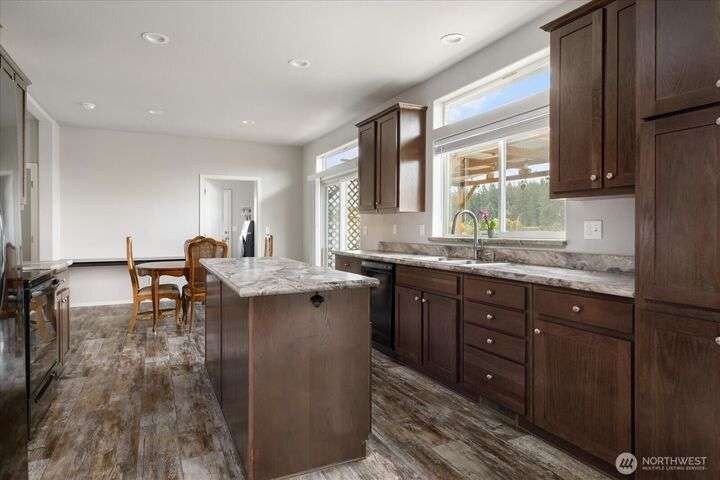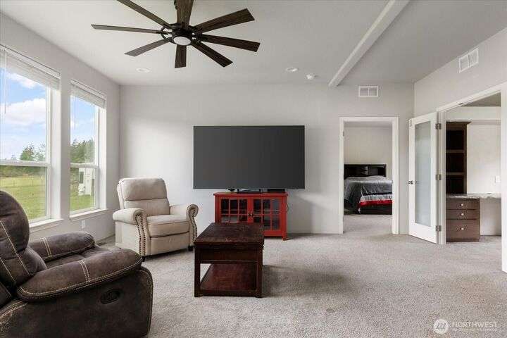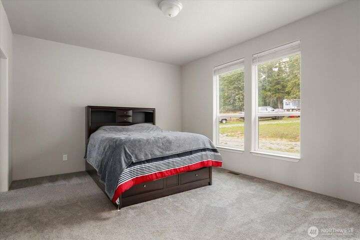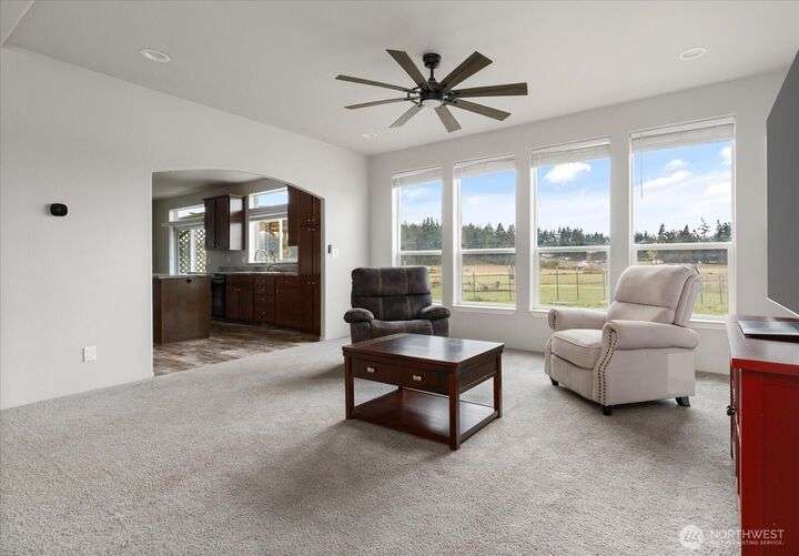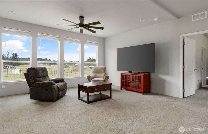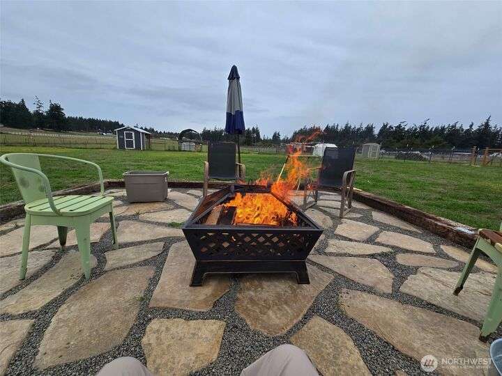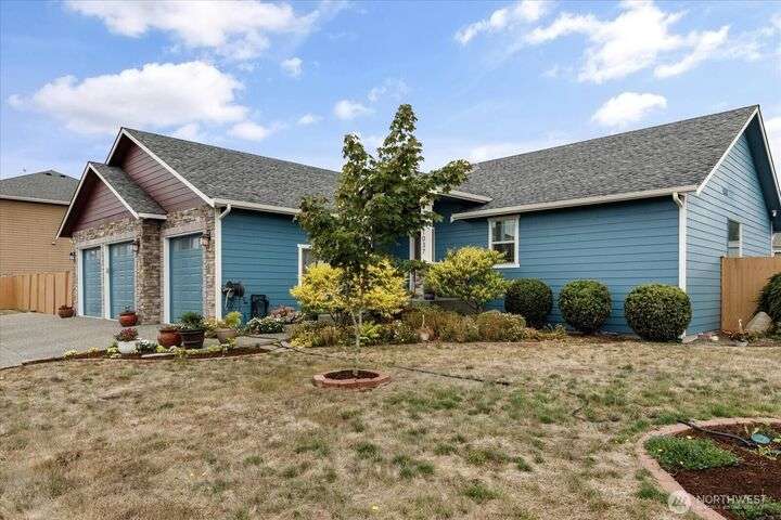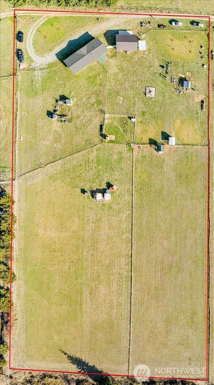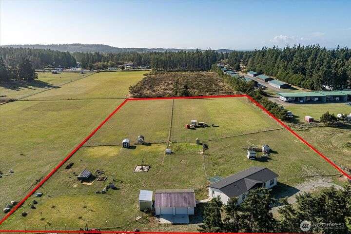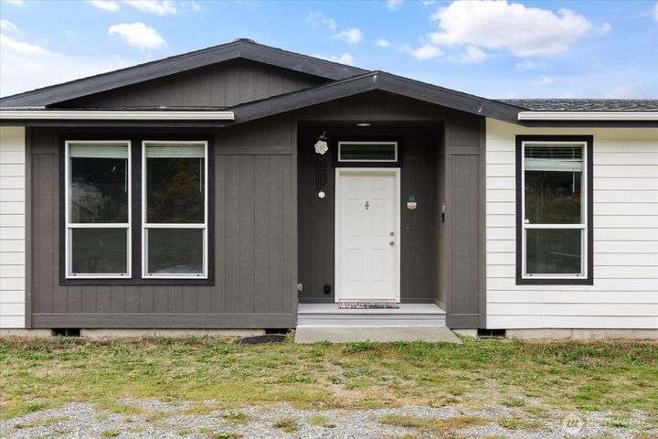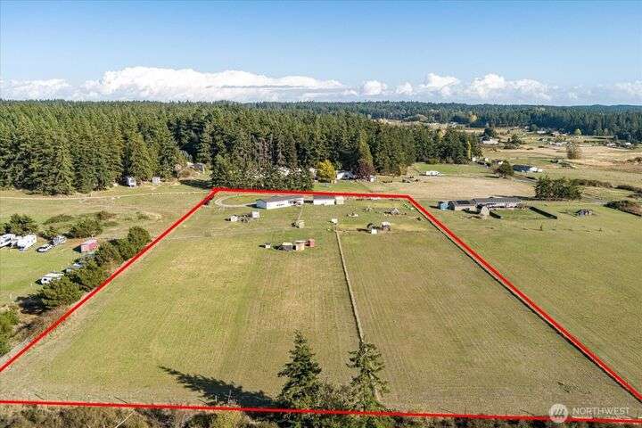 Bring your animals! This HOBBY FARM is fully fenced & cross fenced. It's fully equipped w/chicken coop, dog run w/insulated shelter, goat/sheep barn, water troughs, & 2 Tuff Sheds for feed or equipment storage. Get plants started early in the greenhouse w/raised beds, plus fruit trees for canning or pies. 2022 manufactured home offers modern living w/spacious kitchen featuring lg island, split-bedroom floorplan for privacy, & generous primary suite. Detached 2-car garage provides space for vehicles or workshop, & Graceland shed offers more room for hobbies/storage. Enjoy summer evening sunsets by the firepit on its charming brick patio. Includes private well & whole-home water filtration system. Country living near town & NAS Whidbey.