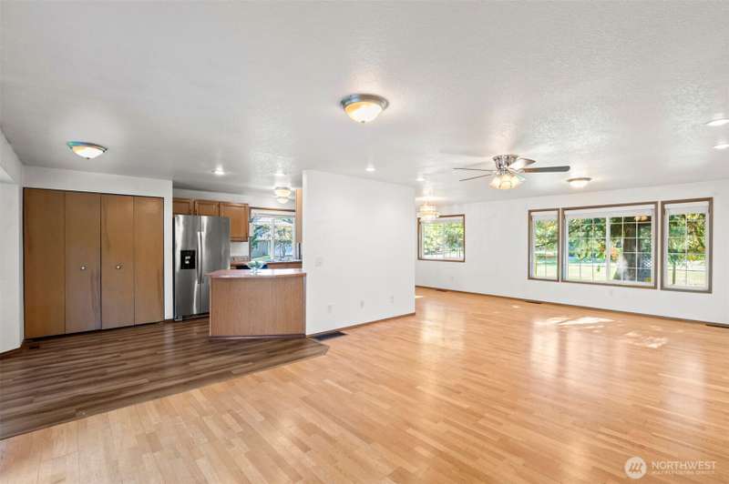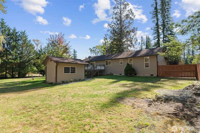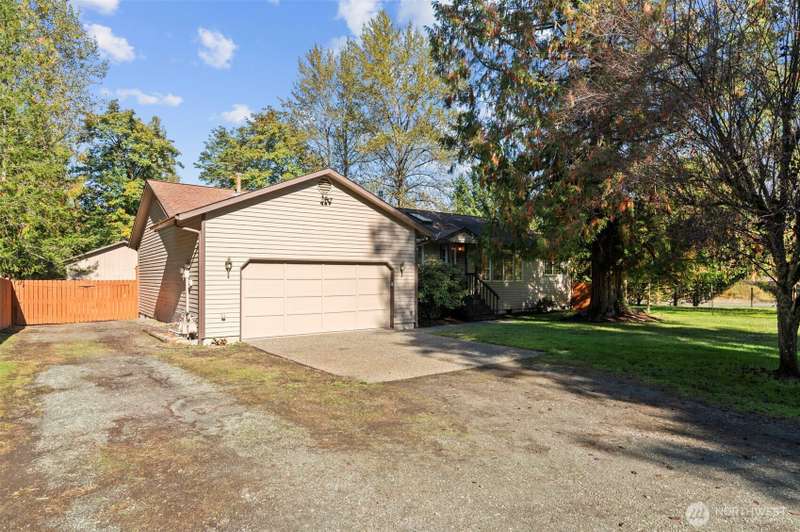 The gem you’ve been waiting for! This beautifully maintained 3-bed, 1.75-bath rambler sits on a private, level 1.10-acre lot, offering the perfect blend of comfort and functionality. Features include lifetime vinyl windows, central A/C, hardwood floors, whole-house generator and central vac system. Enjoy the outdoors year-round with a private gazebo ready for your hot tub, fully fenced, masterfully landscaped yard, sprinkler system, garden area, storage shed, and a new drain field. The true highlight is the impressive 1,000+ sq. ft. detached 3-bay shop—ideal for your RV, boat, or custom projects. This home truly checks all boxes! Located minutes from Hwy 2, this estate balances peaceful seclusion and accessibility. A must-see—Welcome home!