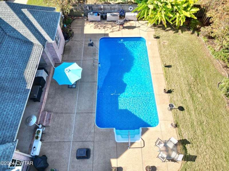 This home was originally built as a custom home with a circle drive. It features 3 bedrooms and 2 Bathrooms on the Main level and 1 bedroom with a full bath and a bonus on the upper level. The bonus could be used as a fifth bedroom. The home has a large living room a hearth room off the kitchen and a large dining room. With over 3,300 square feet of living space, this home has plenty of room to entertain. The master suite has an amazing walk-in shower. The backyard has a beautiful in-ground pool and a large covered porch