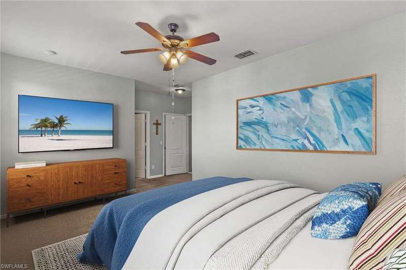 Welcome to your sunlit sanctuary in the highly desirable Laguna Lakes community! This exquisitely updated two-story home offers an unparalleled combination of comfort, style, and modern living. Boasting 4 spacious bedrooms and 3.5 bathrooms, this home provides plenty of room for both relaxation and meaningful connection. Whether you're entertaining family or simply enjoying quiet moments, every inch of this residence is designed to enhance your lifestyle. As you step inside, you'll be greeted by a bright, open-concept floor plan that allows natural light to pour in from every angle. The expansive living spaces are highlighted by sleek, easy-to-maintain tile floors throughout, creating an inviting atmosphere that flows seamlessly from room to room. The heart of the home is the modern kitchen, complete with beautiful granite countertops, abundant cabinetry, and high-end finishes. This space is ideal for preparing family meals, hosting friends, or enjoying an intimate dinner in a setting that exudes both sophistication and warmth. The home is further enhanced by a brand-new roof, offering lasting durability and peace of mind. Additionally, the whole-home water filtration system ensures clean, purified water throughout, adding both convenience and value. No detail has been overlooked, with numerous updates including a newly enclosed front lanai, a re-screened back lanai, brand-new toilets, and new shut-off valves. The home also features stylish plantation shutters throughout, providing an elegant and timeless look. In the kitchen, you'll find a new faucet and dimmer light switches, reflecting the modern updates that are integrated throughout the entire home. The expansive lanai offers the perfect outdoor retreat, where you can unwind or entertain in the tranquil Florida setting. Whether you're hosting a weekend barbecue or simply enjoying your morning coffee, the lanai serves as a seamless extension of the home's living space. The Laguna Lakes community provides a host of outstanding amenities, including a sparkling community pool, pickleball courts for friendly competition, and a scenic fishing pier that offers serene views-ideal for enjoying the Florida sunshine. In addition to these wonderful amenities, this home's location places you just a short drive from Fort Myers Beach and Sanibel, providing easy access to world-renowned beaches, dining, and shopping. The vibrant Florida lifestyle is right at your doorstep, offering you the perfect blend of relaxation, recreation, and convenience. Don't miss your chance to experience this exceptional home and all it has to offer. Schedule your private showing today and make this vibrant, sun-filled lifestyle yours!