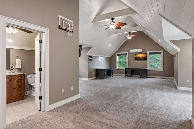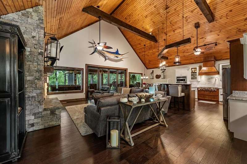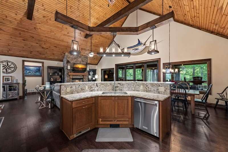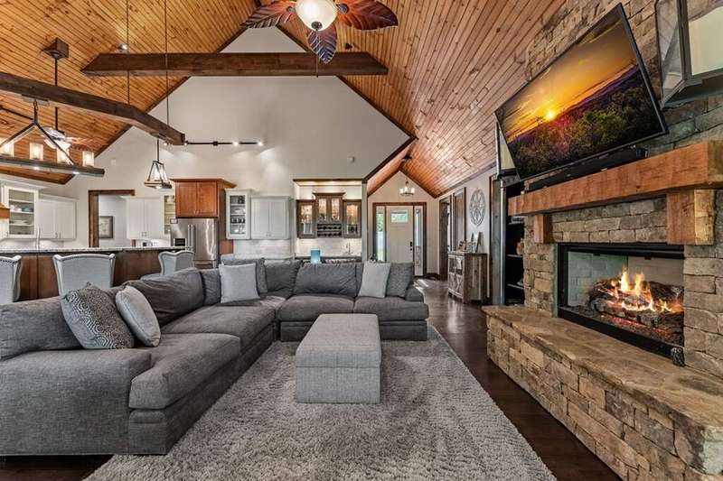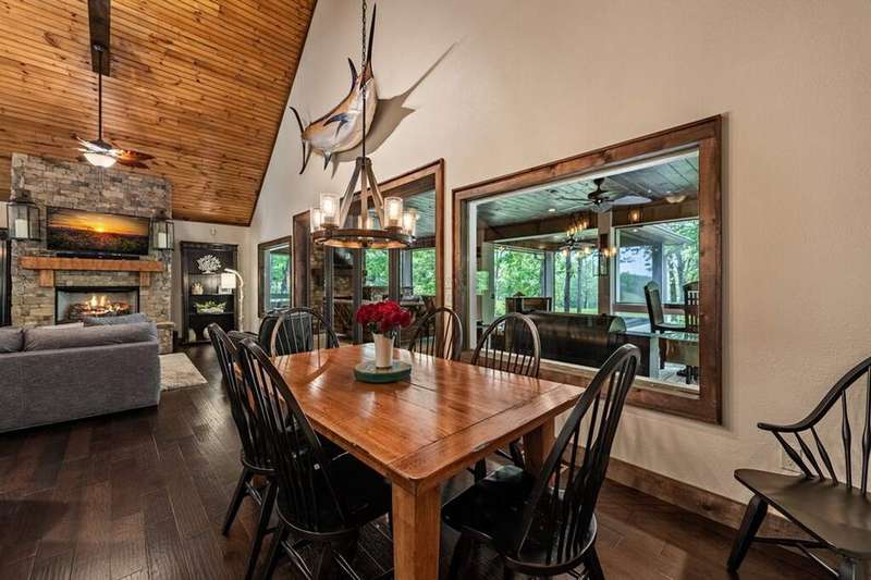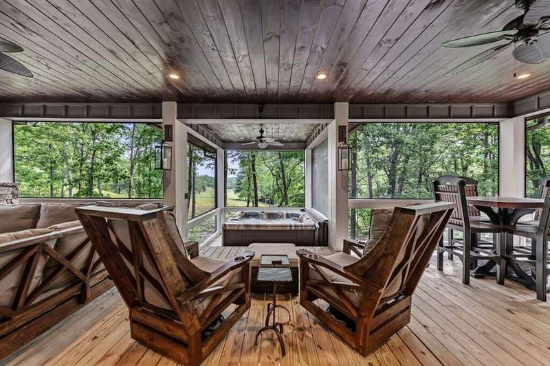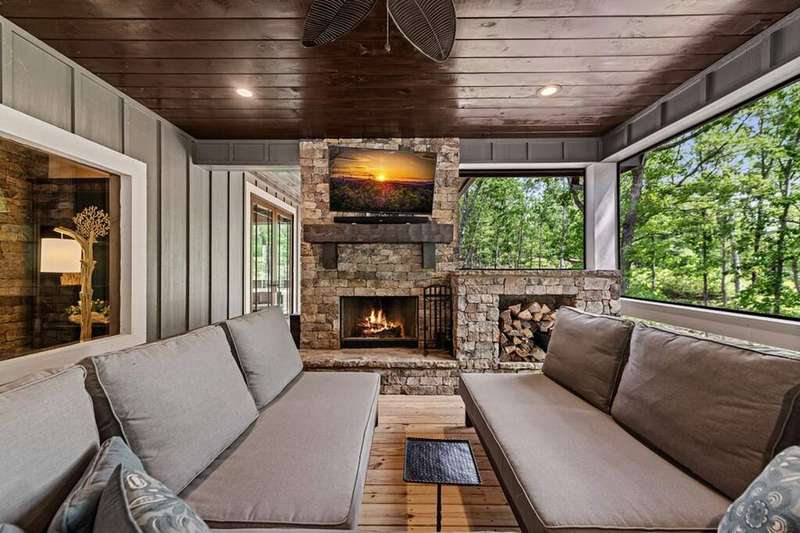 Welcome to 1533 Old Toccoa Loop, a luxurious mountain retreat nestled within the prestigious Old Toccoa Farm, award-nominated 18-hour golf course and fly fishing community. This exceptional 4-bedroom, 4.5-bathroom home offers unparalleled craftsmanship and resort-style living and is designed for both relaxation and entertainment, this residence seamlessly blends rustic elegance with modern amenities. The spacious primary suite located on the main level features a cozy fireplace and direct access to the screened-in porch, creating a serene sanctuary. A chef's dream, the kitchen boasts a large island, walk-in pantry, and top-of-the-line appliances, perfect for culinary enthusiasts. The expansive great room showcases a stunning stacked stone fireplace and vaulted ceilings, providing a grand space for gatherings. Enjoy year-round outdoor living with a screened-in porch featuring a fireplace and hot tub deck, ideal for relaxing or entertaining. A dedicated office space on the main level offers a quiet area for work or study. Stay active with a fully equipped private gym, ensuring convenience and privacy. Ample storage and parking are provided with a spacious three-car garage. Situated on the award-winning Old Toccoa Farm golf course, residents enjoy breathtaking views and easy access to the Toccoa River with over 4,000 feet of the Toccoa River for fishing and recreation. Other amenities include The Tavern, a gathering place for residents and members to enjoy award winning culinary, golf pro-shop and walking trails throughout the development. Upcoming amenities include pickleball, tennis, and a riverfront pavilion, all slated to commence this year!