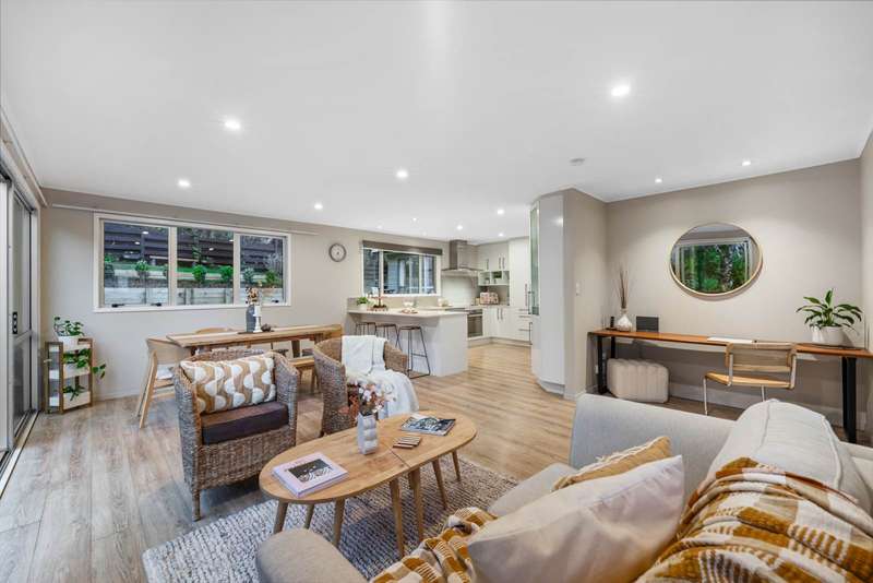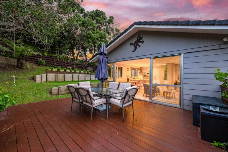 Looking for the perfect family home that ticks all the boxes? This generously proportioned five bedroom, three lounge residence offers incredible flexibility, comfort, and lifestyle for families of all sizes. The home features five well appointed bedrooms, three spacious lounges, and three bathrooms. A double internal access garage offers secure parking, plus room for the gym, or makes the perfect games room for fun times with family and friends. Set across two levels, the downstairs area is ideal for teenagers seeking their own space or for those running a business or working from home. The options are endless. There is potential to create an east master wing. The wall between Bedrooms 2 and 4 has been designed to be removable, allowing the two rooms to be combined into one spacious master bedroom. Upstairs the kitchen flows effortlessly into the dining and lounge areas, then out to a sunny deck and outdoor space that is perfect for entertaining or relaxing. The garden is a true highlight, surrounded by lush green bush where you can take in the peace and quiet, listen to the Tui's or endless bird songs, or watch your kids enjoy the large play areas, on the tramp or the tree swing. There is also great potential to add a pool and take full advantage of this exceptional outdoor space. Ideally located in a family friendly neighbourhood, you are just a short walk to Long Bay Primary and College. Long Bay Regional Park and Beach are also within walking distance, and both Torbay and Long Bay shops are just minutes away. Whether you are upsizing, working from home, or seeking a lifestyle upgrade close to nature and excellent schools, this home is a must see. Auction: 8-12 The Promenade, Takapuna on Wednesday 19 November 2025 at 9:30AM (unless sold prior)