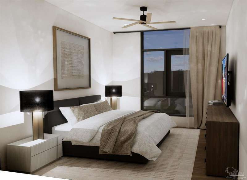 Downtown Pensacola's historic East Garden District is entering a new era of luxury urban living with Tristan Residences, an upscale five-story condominium inspired by 16th-century explorer Trist�¡n de Luna y Arellano. Just across the urban plaza from the new Hotel Tristan, this landmark development blends timeless architecture with modern sophistication and offers residents exclusive access to hotel-style amenities, including housekeeping, valet, room service, and preferred pricing at the hotel restaurant and rooftop bar. Each residence features 10-foot ceilings, solid-core interior doors, wide plank engineered hardwood floors, and designer light fixtures. Floor-to-ceiling windows and terrace doors flood the open living space with natural light, leading to a private terrace. The gourmet kitchen boasts Shaker-style soft-close cabinetry, quartz slab countertops with full-height backsplash, undercabinet lighting, and high-end appliances-including a French door refrigerator, radiant electric range, convection microwave, and SmartSense range hood. The large island with seating creates the perfect balance of form and function.The primary suite includes a walk-in closet with custom built-ins and blackout roller shades, while the spa-inspired bath offers a quartz double vanity, custom wood cabinetry, designer lighting and mirrors, and a walk-in shower. Additional conveniences include smart thermostats, high-speed data wiring, dimmable LED lighting, and secure key-fob access.Community amenities elevate daily living with a resident lounge connected to a gourmet coffee shop/bakery, meeting and dining flex space, two-station dog washroom, on-site storage units, reserved parking, and mail and package room. Surrounded by a pedestrian-friendly plaza with fountains, green spaces, and locally inspired dining, Tristan Residences brings together the best of downtown Pensacola