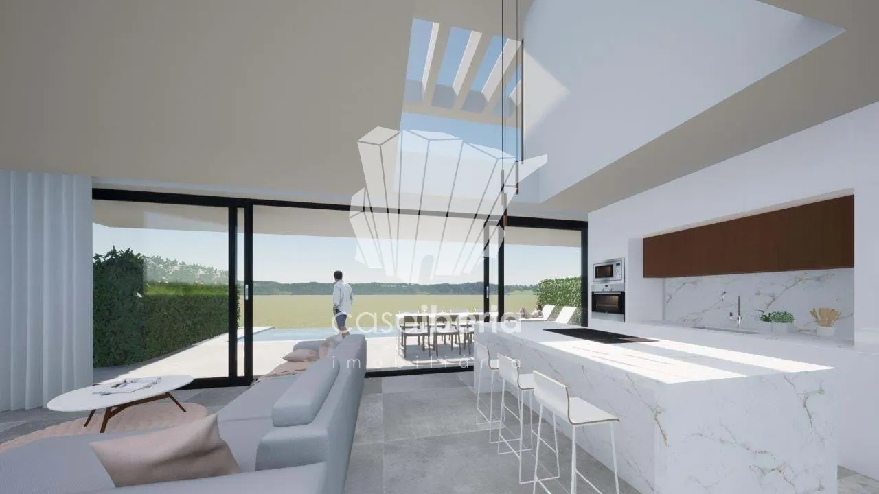 The ground floor consists of open space kitchen to the dining room and living room with access to an uncovered outdoor patio, pantry, a bedroom en suite and service bathroom, outside there is a swimming pool in water mirror and covered parking.