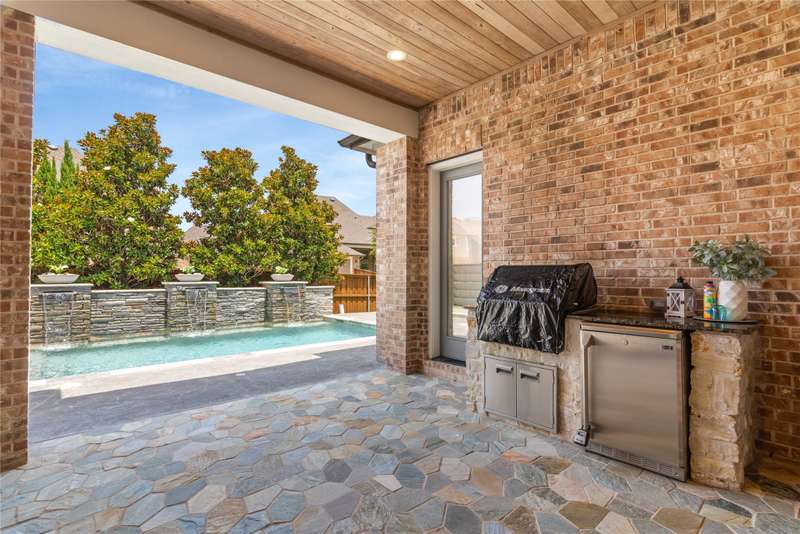 Hamilton Hills updated former model home features a .39 acre lot, pool, game, media, 4 car tandem garage. You'll love the impressive drive up appeal, elevated lot, exterior cast stone accents & lavish landscaping. 21 foot ceilings, designer wall finishes, 3 fireplaces, extensive hardwoods, plantations, updated fixtures, quality stain grade built-ins. Relax at the end of the day or enjoy your morning coffee in the tasting nook off the kitchen with dual beverage chillers and double French door access to the 13x7 front patio. Superb Quartz kitchen features soft close cabinets with glass front accents, a grand island w 6 seat bar, GE Monogram appliances including a commercial 6 burner gas range & vent hood, double convection ovens, pot filler, vegetable sink, walk-in pantry & Monogram built in fridge. Exceptional luxury defines the spacious primary suite with hardwoods, 14ft ceiling, sitting area & patio access. Primary bath features 12ft ceiling, 7x5 rain head shower for two, claw foot elongated tub & custom closet w built in chests. Upstairs: stylish game room with tiled wall complete with pool table, media w screen & Sonos system, built in desk workstations, 3 bedrooms, 2 baths. Entertain pool side on the 30x16 flagstone covered patio with fireplace, living & dining areas, granite top grill & beverage bar. Mud bench at garage entry & a 14x7 utility with loads of cabinet, counter & freezer space. Epoxy 4 car garage is a tandem or 2 cars deep in each bay. Zoned for the best of the best in Top Allen ISD. 5mins to Watters Creek shops, dining & golf at both the Courses at Watters Creek (public) and Twin Creeks Golf Club (private). Exceptional home. Agent lives nearby and can show the property on short notice.