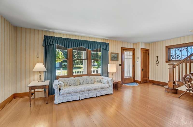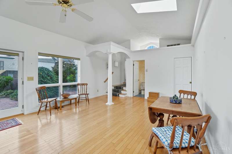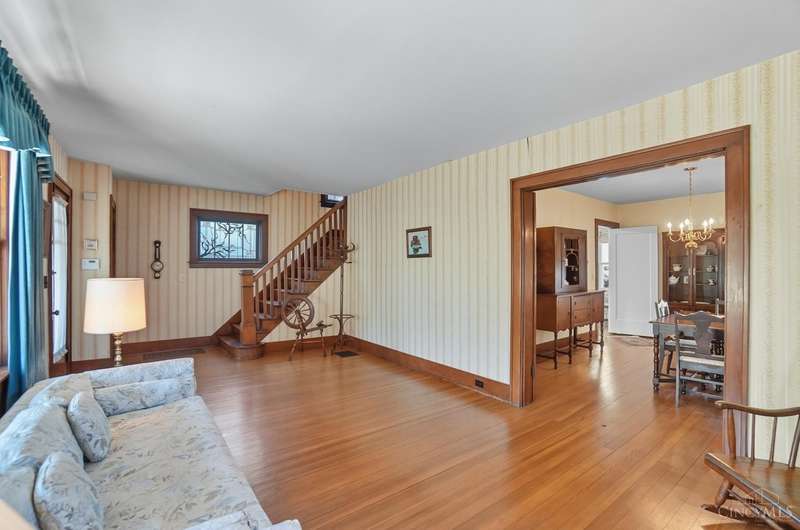 Charming 3 bedroom, 3 bath home with thoughtful updates and original character in the heart of Harrison! Classic covered front porch - complete with swing. This inviting home features original hardwood floors and doors that express timeless charm. Eat-in kitchen offers wood cabinets & large pantry. The stunning family room boasts soaring ceilings with an abundance of natural light, a cozy gas fireplace and full bath. Lower level provides a full bath and additional flexibility for storage or recreation. Separate HVAC system. Walkout access to fenced private patio - your own backyard oasis. Detached garage includes a loft!
