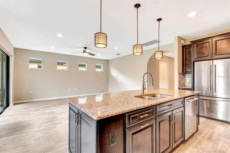 One or more photo(s) has been virtually staged. Amazing opportunity to own a well maintained, thoughtfully upgraded Summerwood Model in the sought-after 55+ Del Webb community of Lakewood Ranch! The Summerwood model has a bright, spacious open layout with an atmosphere perfect for entertaining. The home boasts 1,879 sq. ft. of beautifully designed living space, featuring 2 bedrooms, 2 full bathrooms, plus a den/flex space perfect for an office or third bedroom. The 2 car garage has a bonus tandem space which could be a great spot for a golf cart or extra storage! The ownerâ??s suite is a private sanctuary, featuring a spa-like ensuite with dual vanities, private water closet, spacious shower, and a generous walk-in closet. The well-appointed kitchen is a chefâ??s dream, equipped with upgraded KitchenAid appliances, including a natural gas cooktop with custom hood, oven, refrigerator, and microwave. Elegant granite countertops, a stylish backsplash, upgraded cabinetry, pendant lighting, oversized center island with end cap storage cabinets, and pantry provide everything a culinary enthusiast could want. Designed for easy Florida living, the home features a screened lanai, wood look plank tile throughout, abundant storage, full house water softener, and wifi enabled rolldown shades for shade and privacy. Del Webb Lakewood Ranch features world-class amenities, including 6 tennis courts, 8 pickleball courts, 4 bocce ball courts, a state-of-the-art fitness center, group classes, and a resort-style pool with lap pool. There is also and on-site restaurant and bar, and a variety of clubs and social activities overseen by a full-time Lifestyle Director. With the HOA managing lawn maintenance, irrigation, fertilization, and light pruning, youâ??ll enjoy a low-maintenance lifestyle giving you more time to explore all the activities and amenities that Del Webb has to offer. This beautifully maintained home is move-in ready and wonâ??t last long!