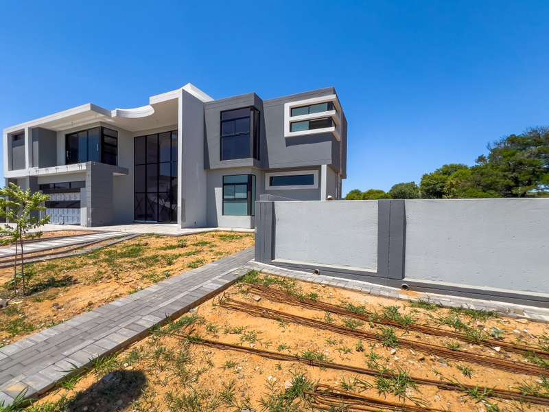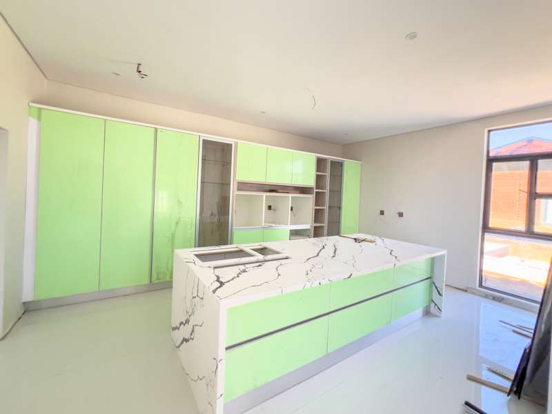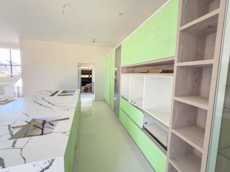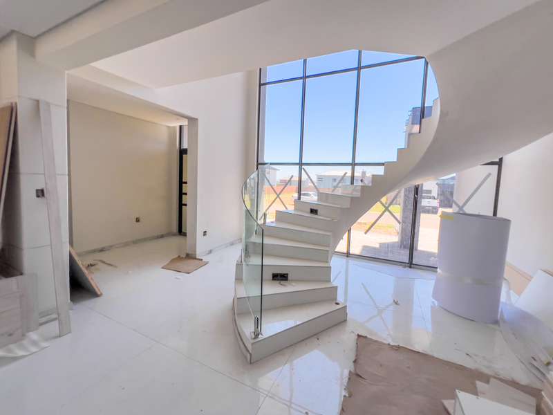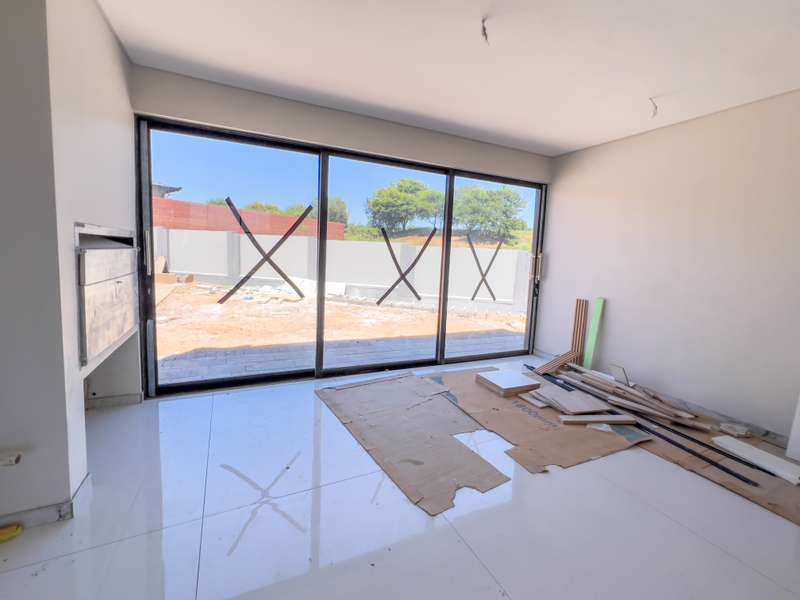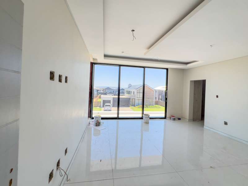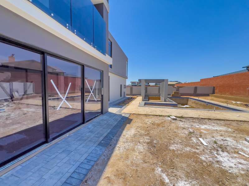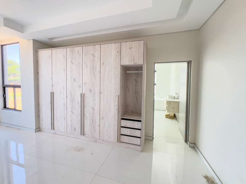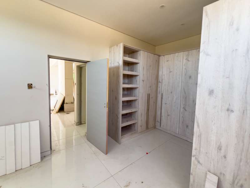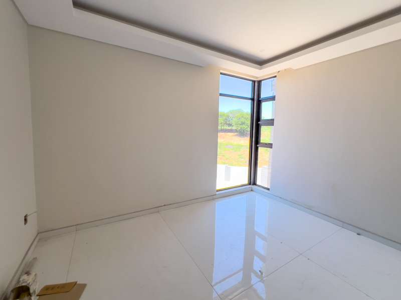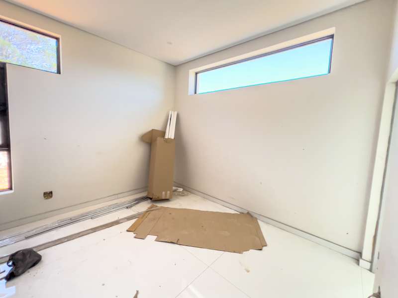 This exquisite newly built home offers contemporary living at its finest, with expansive spaces, high-end finishes, and thoughtful design throughout. Lower Level Features: A grand double-volume entrance hall with a striking spiral staircase. An ultra-modern kitchen equipped with a separate scullery, laundry area, walk-in pantry, and an island breakfast nook – perfect for family gatherings. Open-plan dining and formal lounge areas seamlessly flowing into a spacious family lounge. A private study ideal for remote work or personal projects. A guest toilet for added convenience. The fifth/guest bedroom with a full en-suite bathroom and sliding doors leading to the garden. Covered patio with a built-in braai, perfect for entertaining, opening up to the beautifully landscaped garden. Upper Level Features: A spacious pajama lounge with sliding doors opening to a balcony. Four luxurious bedrooms, each with en-suite bathrooms (three full, one with a shower). Two balconies providing tranquil views. The master suite features a private dressing room, a luxurious en-suite bathroom, and sliding doors opening to a private balcony. Outdoor Features: A sparkling pool and a cozy boma area, perfect for relaxing or entertaining. Domestic accommodation for added convenience. Three automated garages (double and single) with ample additional parking space. Solar geyser for energy efficiency. Additional Information: Transfer duties are included, ensuring a seamless purchase process.
