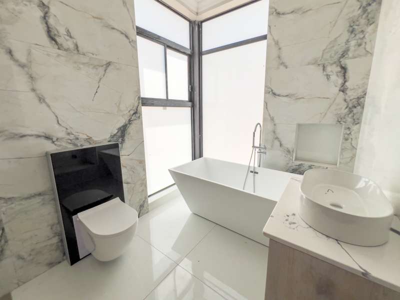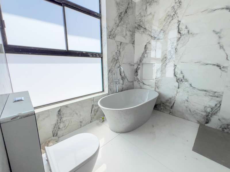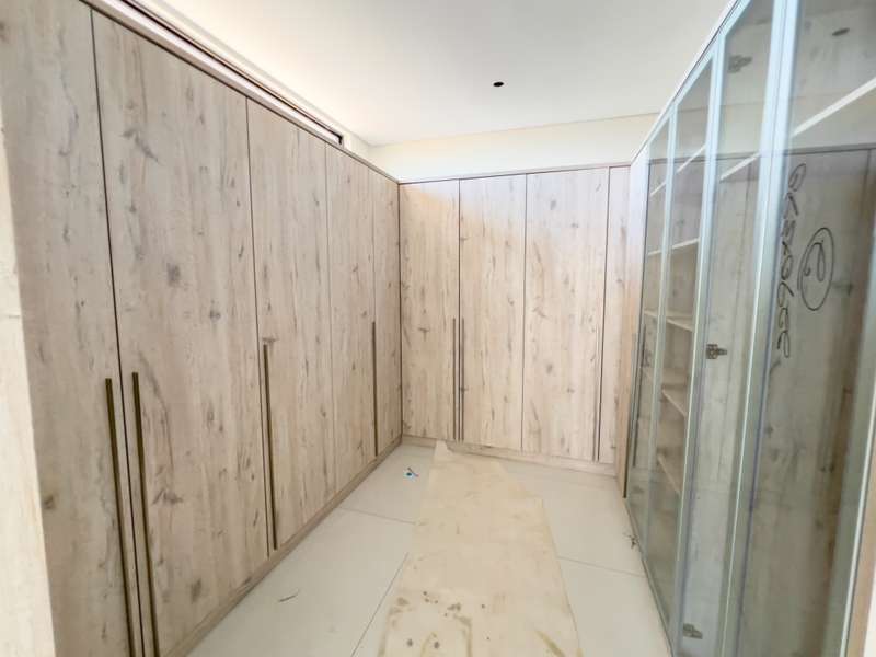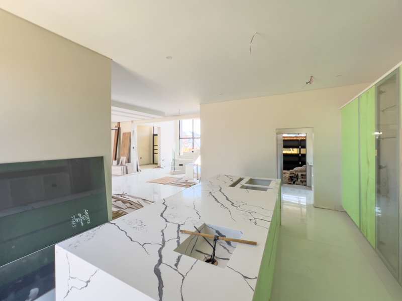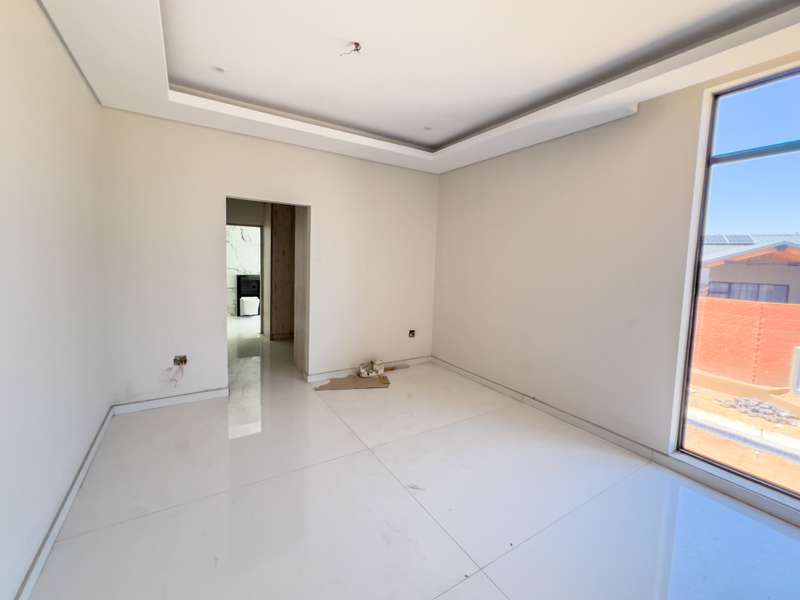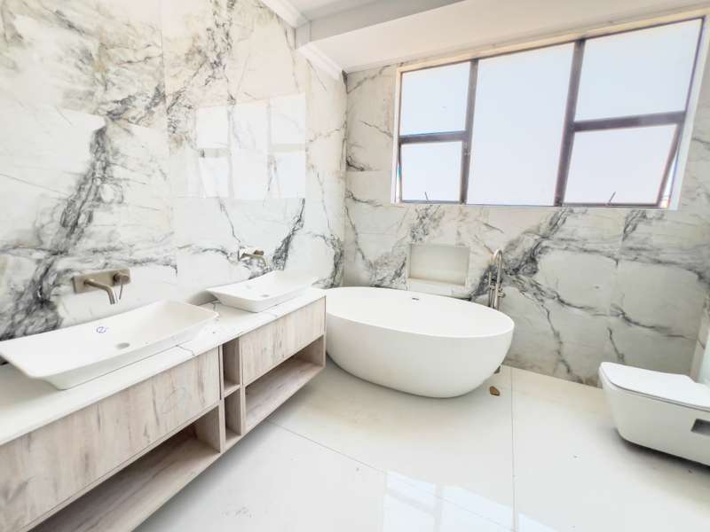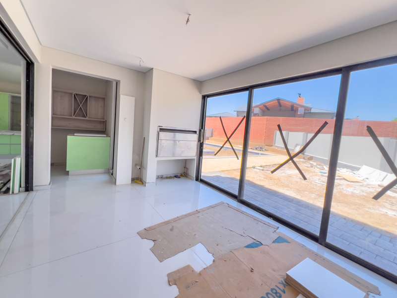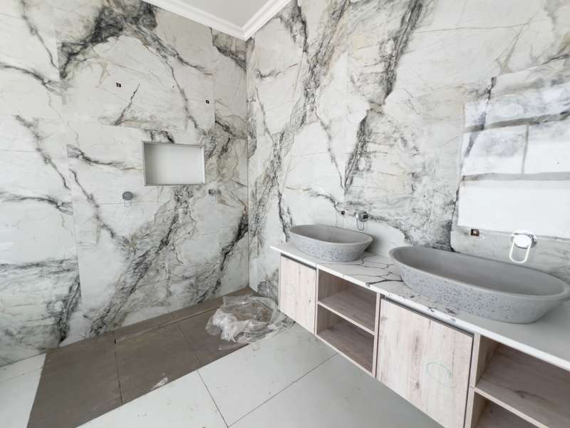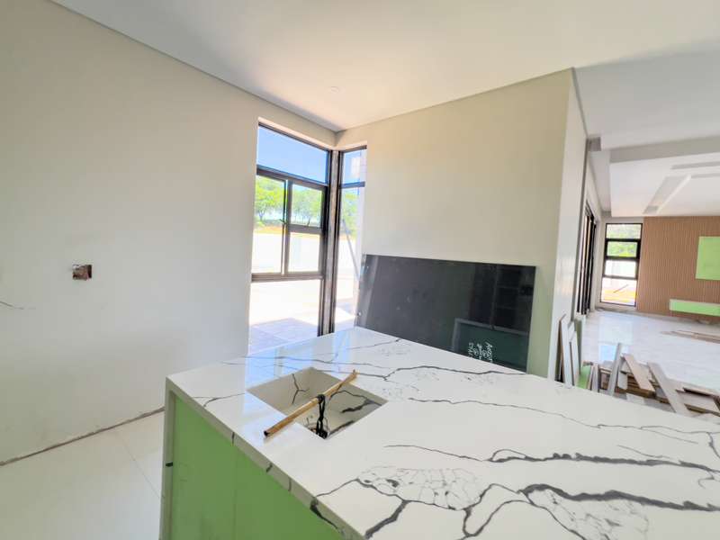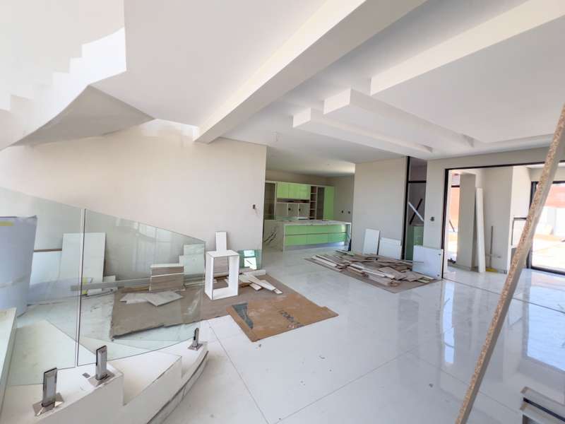 This exquisite newly built home offers contemporary living at its finest, with expansive spaces, high-end finishes, and thoughtful design throughout. Lower Level Features: A grand double-volume entrance hall with a striking spiral staircase. An ultra-modern kitchen equipped with a separate scullery, laundry area, walk-in pantry, and an island breakfast nook – perfect for family gatherings. Open-plan dining and formal lounge areas seamlessly flowing into a spacious family lounge. A private study ideal for remote work or personal projects. A guest toilet for added convenience. The fifth/guest bedroom with a full en-suite bathroom and sliding doors leading to the garden. Covered patio with a built-in braai, perfect for entertaining, opening up to the beautifully landscaped garden. Upper Level Features: A spacious pajama lounge with sliding doors opening to a balcony. Four luxurious bedrooms, each with en-suite bathrooms (three full, one with a shower). Two balconies providing tranquil views. The master suite features a private dressing room, a luxurious en-suite bathroom, and sliding doors opening to a private balcony. Outdoor Features: A sparkling pool and a cozy boma area, perfect for relaxing or entertaining. Domestic accommodation for added convenience. Three automated garages (double and single) with ample additional parking space. Solar geyser for energy efficiency. Additional Information: Transfer duties are included, ensuring a seamless purchase process.