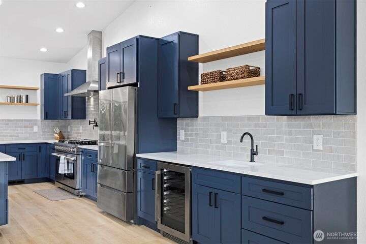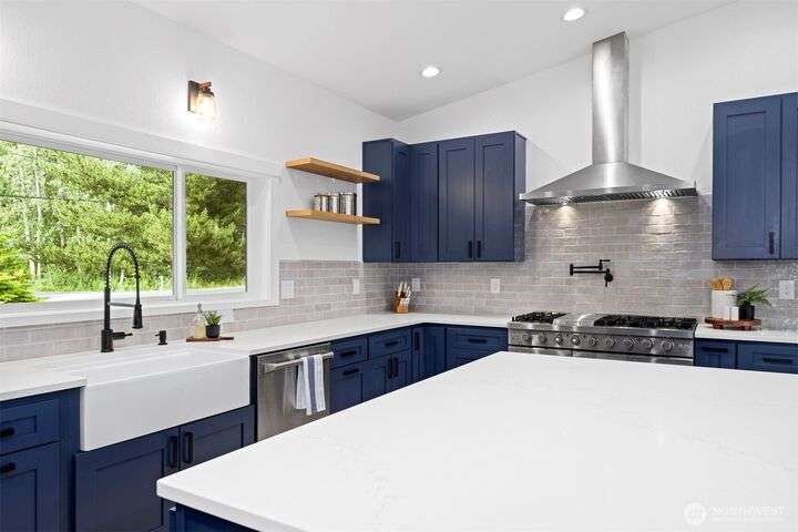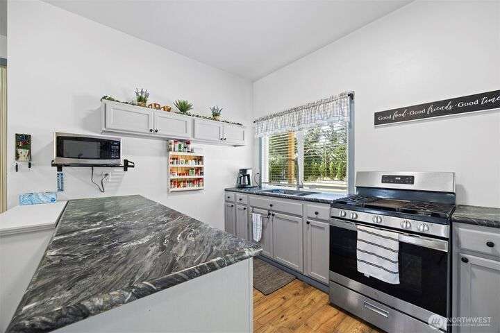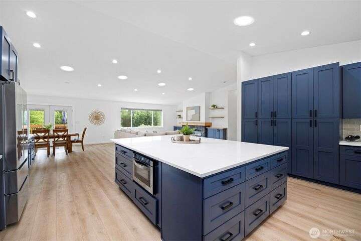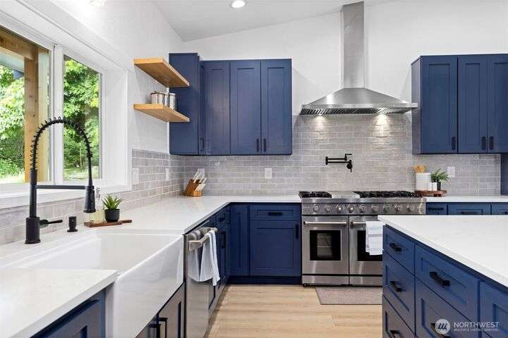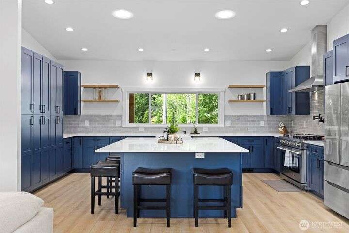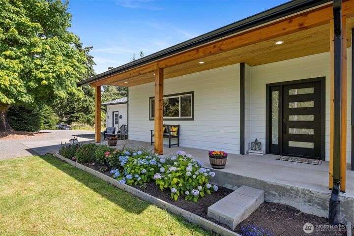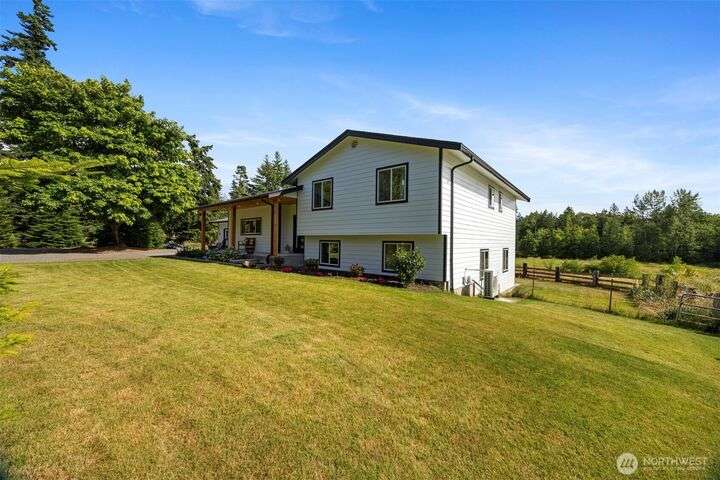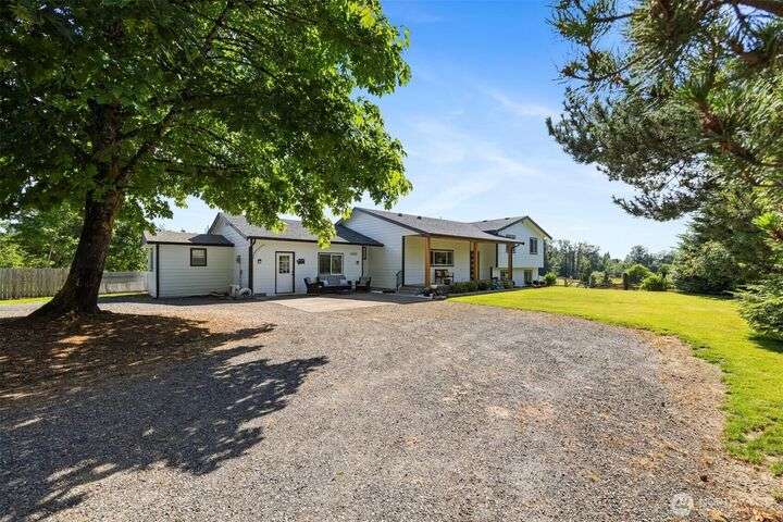 Remodeled throughout, this gorgeous home combines fresh finishes, flexible spaces & nearly 5 acres of usable land. Brand new kitchen anchors the main level w/quartz counters, farmhouse sink, 6-burner range/double ovens, endless cabinets & wet bar. It flows seamlessly into the vaulted dining & living areas w/French doors to the back deck. Spacious primary suite overlooks the yard, while the additional 2 bedrooms enjoy their own refreshed bath. A spacious lower rec room is perfect for movie nights. Former garage is now a full ADU w/kitchen, bath & laundry, perfect for rental income or multi-gen living. Garden, roam, or bring your animals, there’s room for it all! New: roof, HVAC + more. The best value minutes from Bellingham.