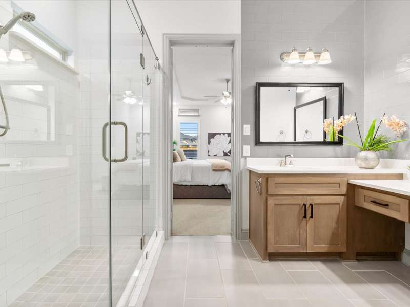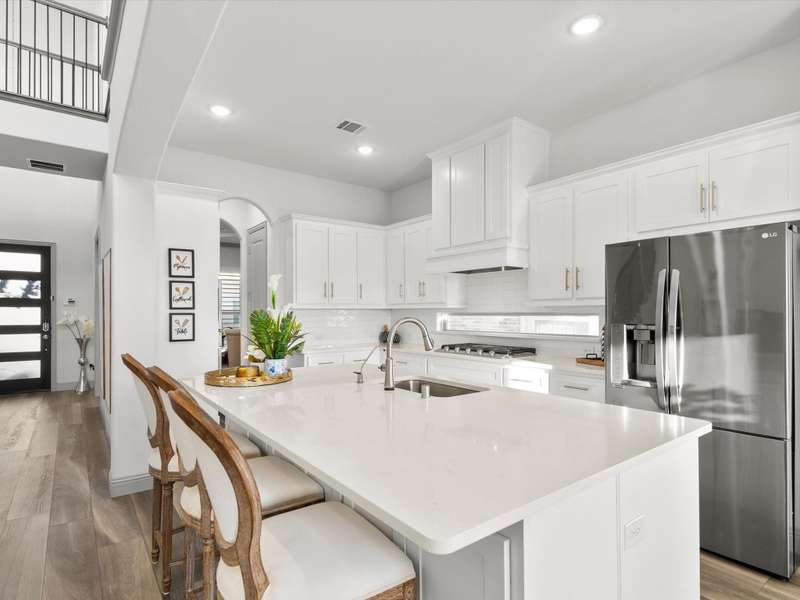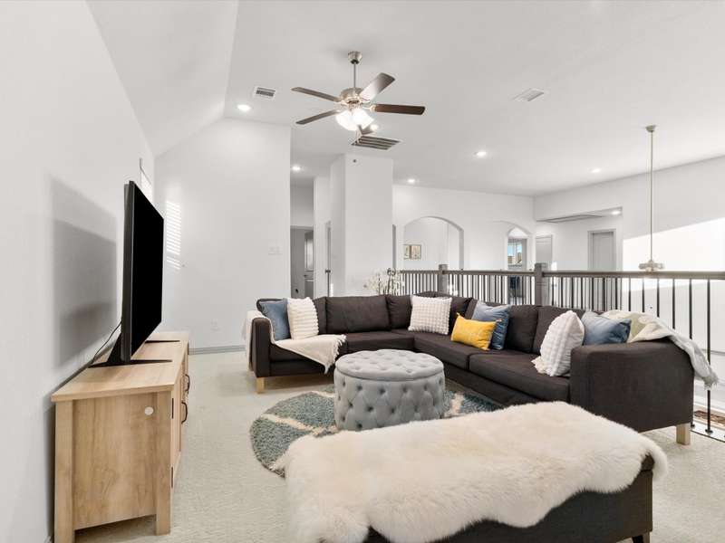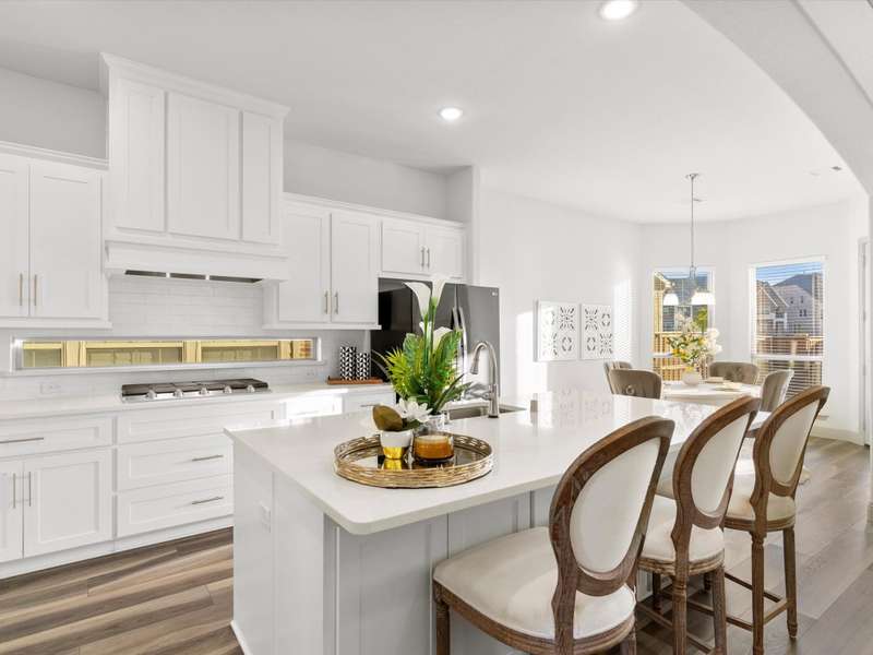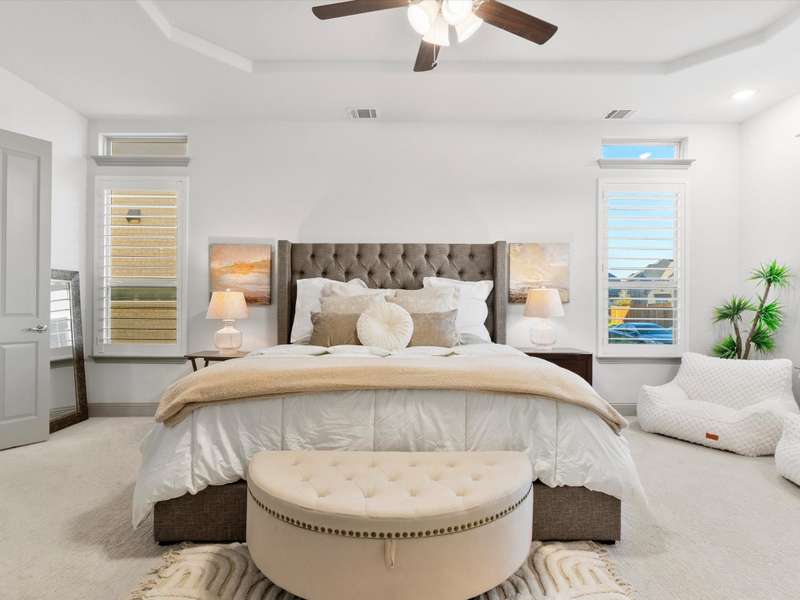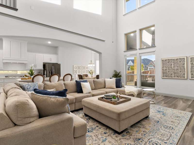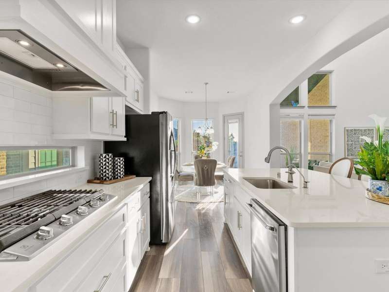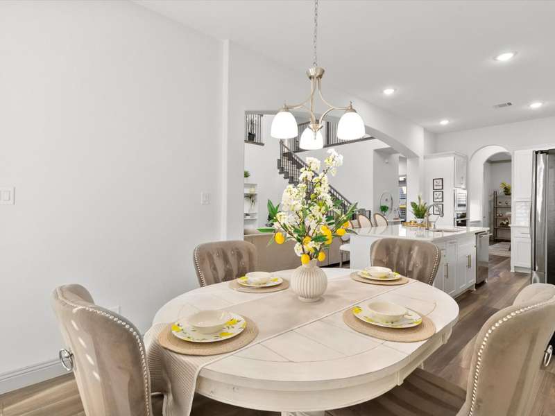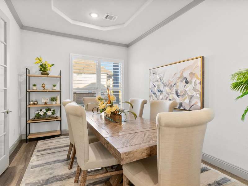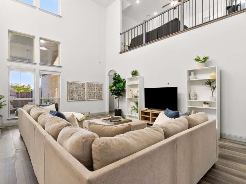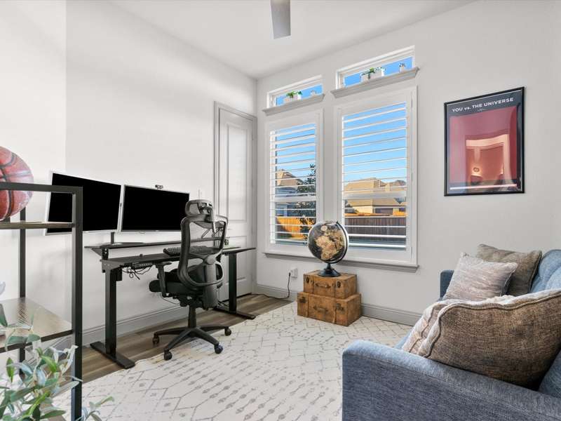 Northeast-facing breathtaking estate-style First Texas home with upgrades galore! Priced to sell, an incredible value for this neighborhood! Located in the highly sought-after Mercer Crossing community. A true designer dream gem with impressive curb appeal that checks every box! The main-floor features the primary suite, a second bedroom or office, and an additional bath. Head upstairs to find four spacious bedrooms along with a cozy yet generously sized theater style game room perfect for the kids hang out or family movie night! The upstairs layout also provides an ideal setup for guests or multigenerational living. Imagine entertaining in this stunningly designed chef style kitchen featuring custom cabinetry, premium Electrolux stainless steel appliances, 5 burner gas cooktop, an oversized center island, upscale quartz countertops, elegant subway tile backsplash, and a stunning wood vent hood, a sophisticated kitchen upgrade. Your grand living room showcases an open layout and soaring ceilings that adds to this homes elevated ambience. Unwind in your spacious primary bedroom with a separate sitting area and a spa-like ensuite featuring dual vanities, upgraded oversized shower with designer tile, and an expansive walk-in closet! Additional upgrades include: Savant Home Automation System, Raised stone landscaping pavers, 5-inch plantation shutters, covered patio with ceiling fan and exterior lighting, water softener, reverse osmosis system, upgraded Electrolux appliances, French doors, floor to ceiling laundry cabinetry, added attic door and subfloor above garage, epoxy garage flooring, tankless water heater, and so much more!! Get with agent for full list of upgrades. This vibrant master-planned community offers an amenity center, multiple pools, a gym, dog parks, playgrounds, lakes, and extensive walking trails. The location is unbeatableoffering easy access to 635, 35, the George Bush Turnpike, both airports, and countless shopping and dining options.