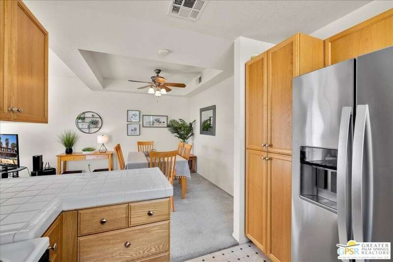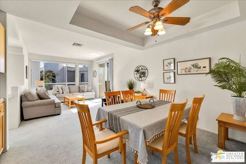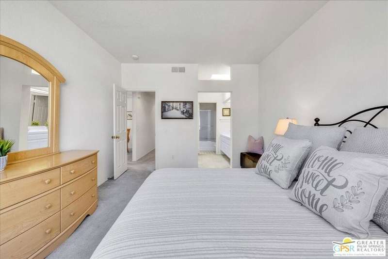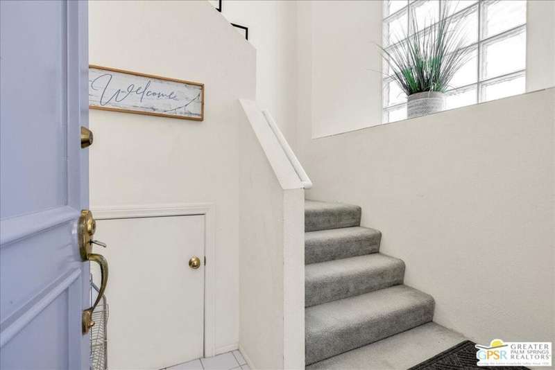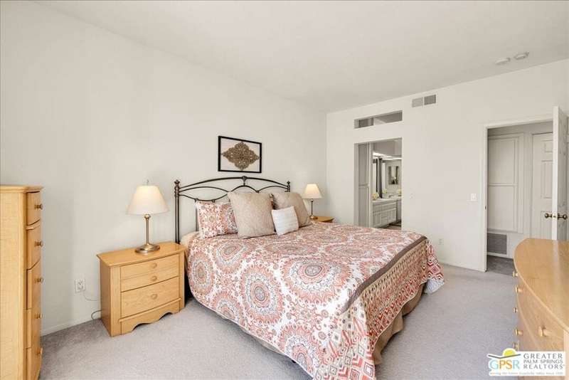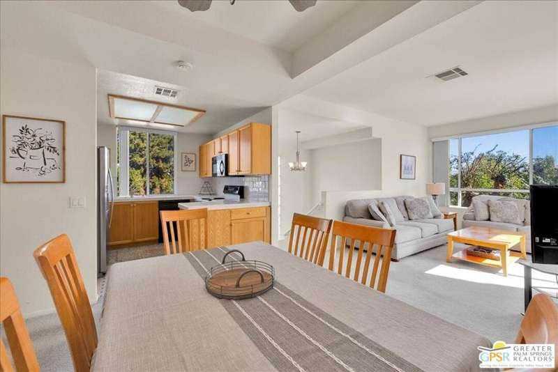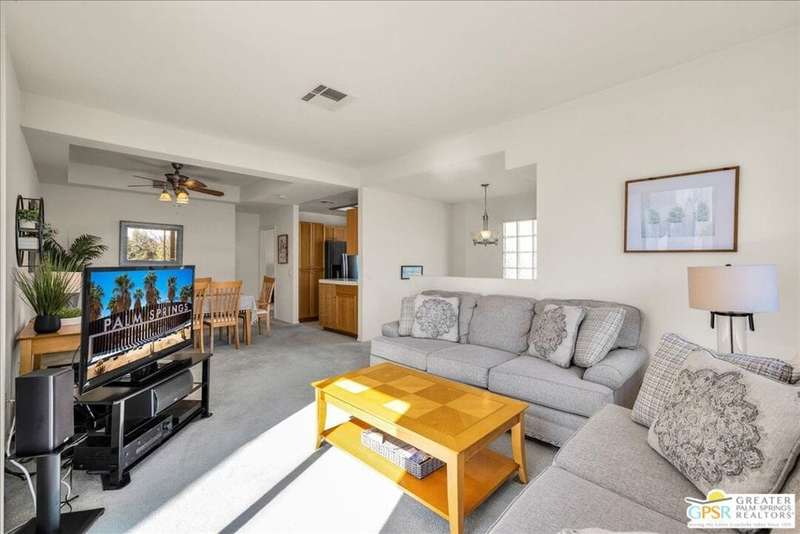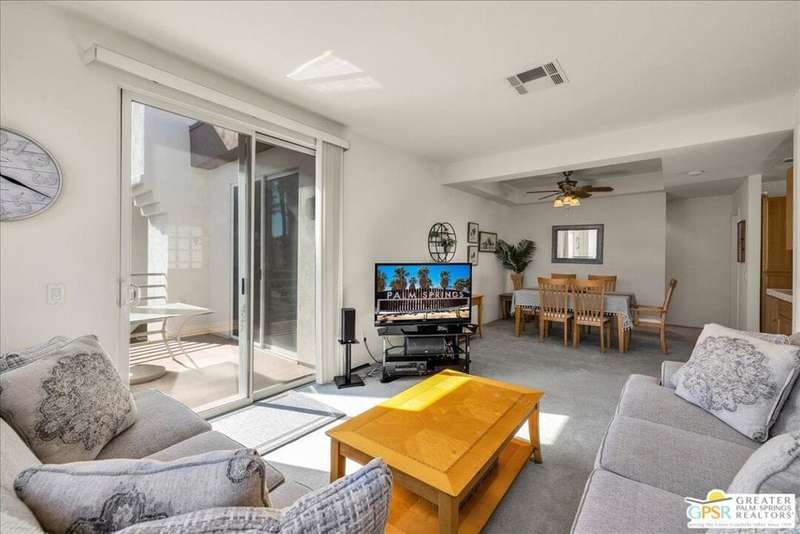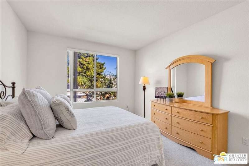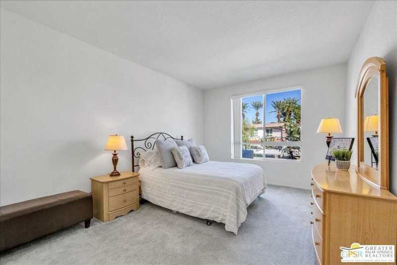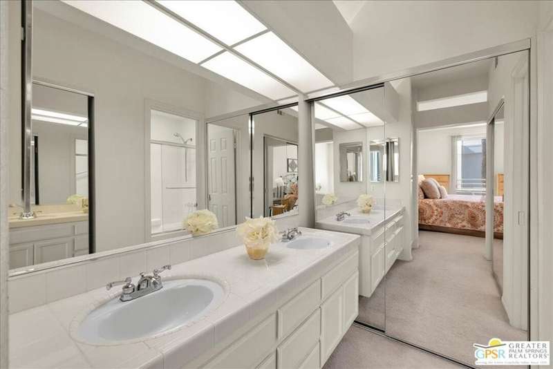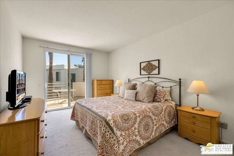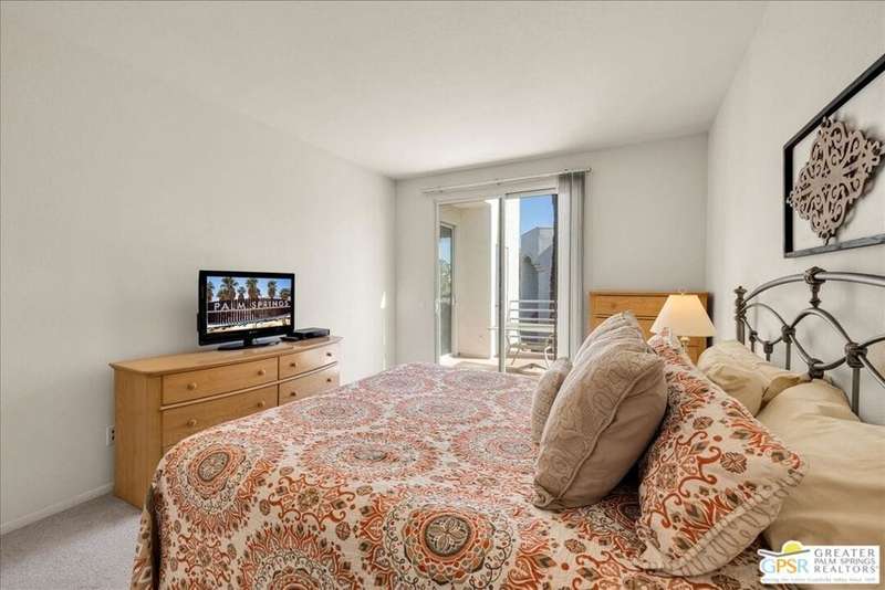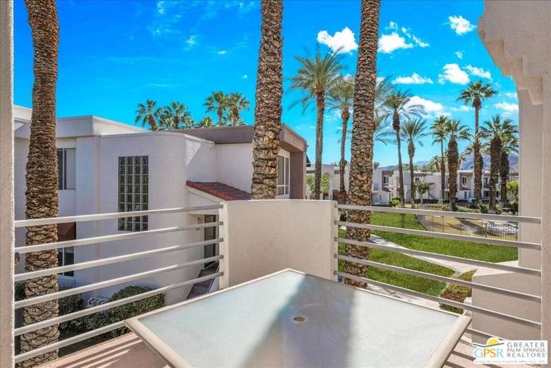 Discover the ultimate Palm Springs lifestyle in this spacious, turnkey furnished 2-bedroom, 2-bath upper-level condo the largest floor plan in the highly sought-after La Palme community in Central Palm Springs! This light-filled residence features high ceilings and two primary suites, each with its own en-suite bath and dual vanities a highly desirable setup for guests or shared living. The well-designed kitchen offers generous cabinet space and opens seamlessly to the dining area, ideal for entertaining. From the living room or one of the bedrooms, step out onto the expansive balcony to take in breathtaking mountain views and the serenity of lush landscaped surroundings. Additional highlights include in-unit laundry and an assigned covered parking space for convenience. La Palme is a beautifully maintained, smoke-free community offering resort-style amenities 6 sparkling pools, 6 spas, 3 tennis courts, and peaceful walking paths. HOA fees include water, trash, basic cable with HBO, WiFi, roof maintenance, and access to two electric car charging stations providing exceptional value and ease of ownership. Ideally located in the heart of Palm Springs, just minutes from downtown shops and restaurants, the Convention Center, Spa Casino, and the airport. Competitively priced and well maintained, this inviting condo offers everything you need whether as a full-time residence, seasonal retreat, or investment property. Plus, the acclaimed Sec-he Spa, ranked the #2 best day spa in California and featuring Agua Caliente hot mineral springs, is just a few blocks away, the perfect place to relax and rejuvenate in true Palm Springs style.