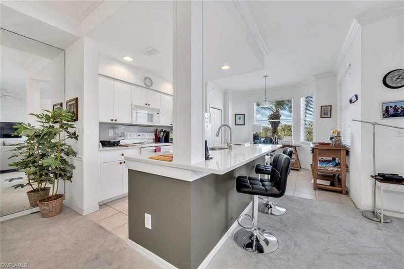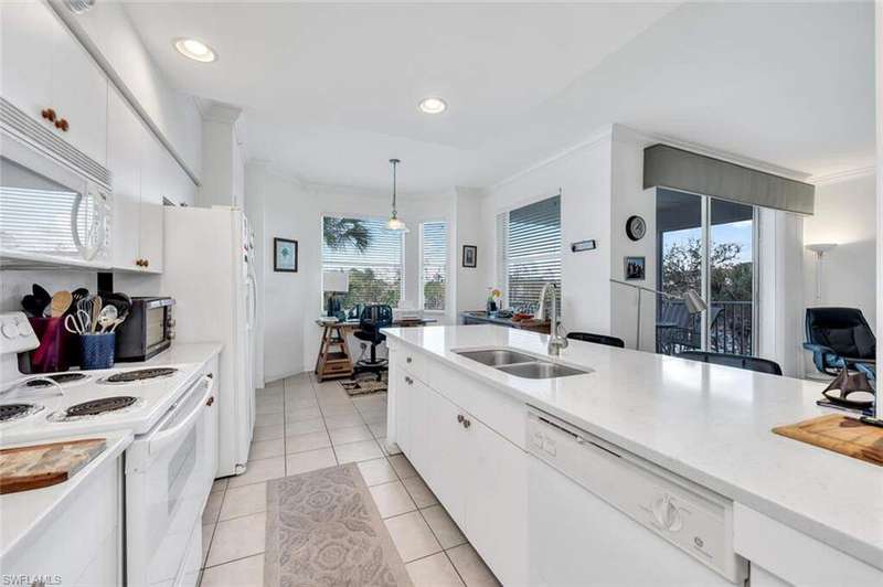Beautiful condo and beautiful community. Condo is turnkey and move in ready. Amazing views of lake, 6th green, and preserve. Beautiful quartz countertops in kitchen and a very open floor plan with lots of light. Condo building equipped with an elevator, assigned parking, and an assigned storage room. Newly built state of the art fitness center, and expanded pool with a Tiki hut for casual dining. Formal dining room, grill room with a bar and a spacious lanai for outdoor dining with fantastic golf course views. Championship 18 hole bundled golf course, with a driving range, putting and chipping greens. Also Tennis courts, pickle ball courts, and bocce ball area, amenities for everyone. Excellent location, six miles to downtown 5th avenue and 7 miles to Naples pristine beaches.