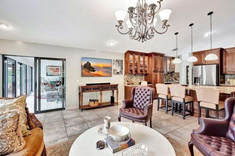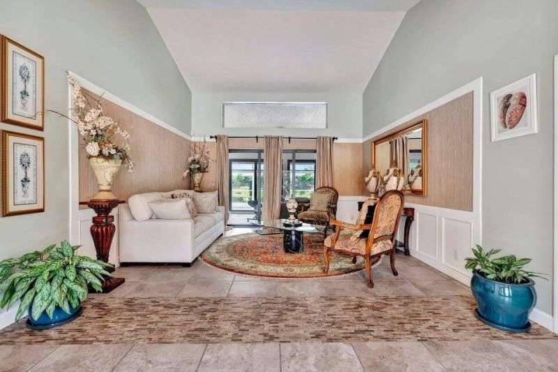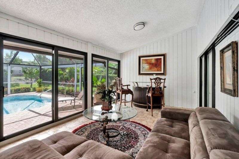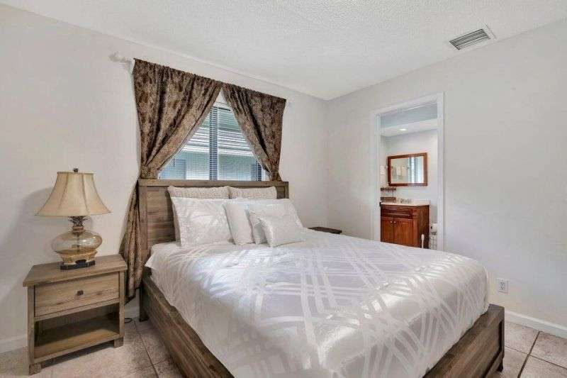 Escape to Palm Beach Gardens in this luxurious, private, one-level pool home located in the exclusive gated community of Preston at PGA National. This spacious pool home features 3 bedrooms, each with its own en-suite bath, including a primary suite with a king bed, a remodeled spa-like bathroom with a soaking tub, and a walk-in shower. The guest suites are thoughtfully appointed with a queen bed and twin beds. Perfect for a getaway, the home offers a formal living room, a family room with a cozy fireplace, and a fully equipped kitchen with a dining table for eight. All-tile floors, impact windows, and access to one side of the garage enhance convenience and comfort. Relax in the enclosed screened patio area or soak up the sun by the pool .3 month min. All funds due in advance . Make offer